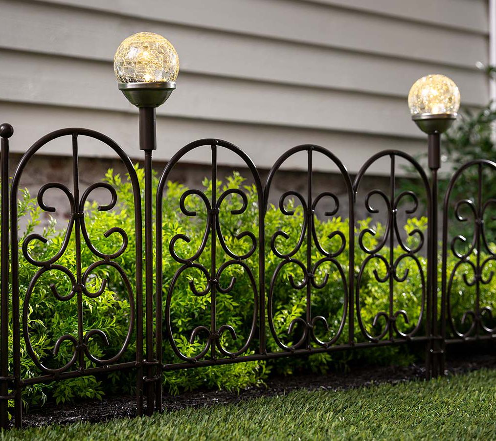 With a beautifully intricate design and solar-lighted finials to cast a soft glow after dark, this Montebello decorative garden edging is perfect for adding definition to a walkway, flowerbed, or patio. From Evergreen Enterprises.