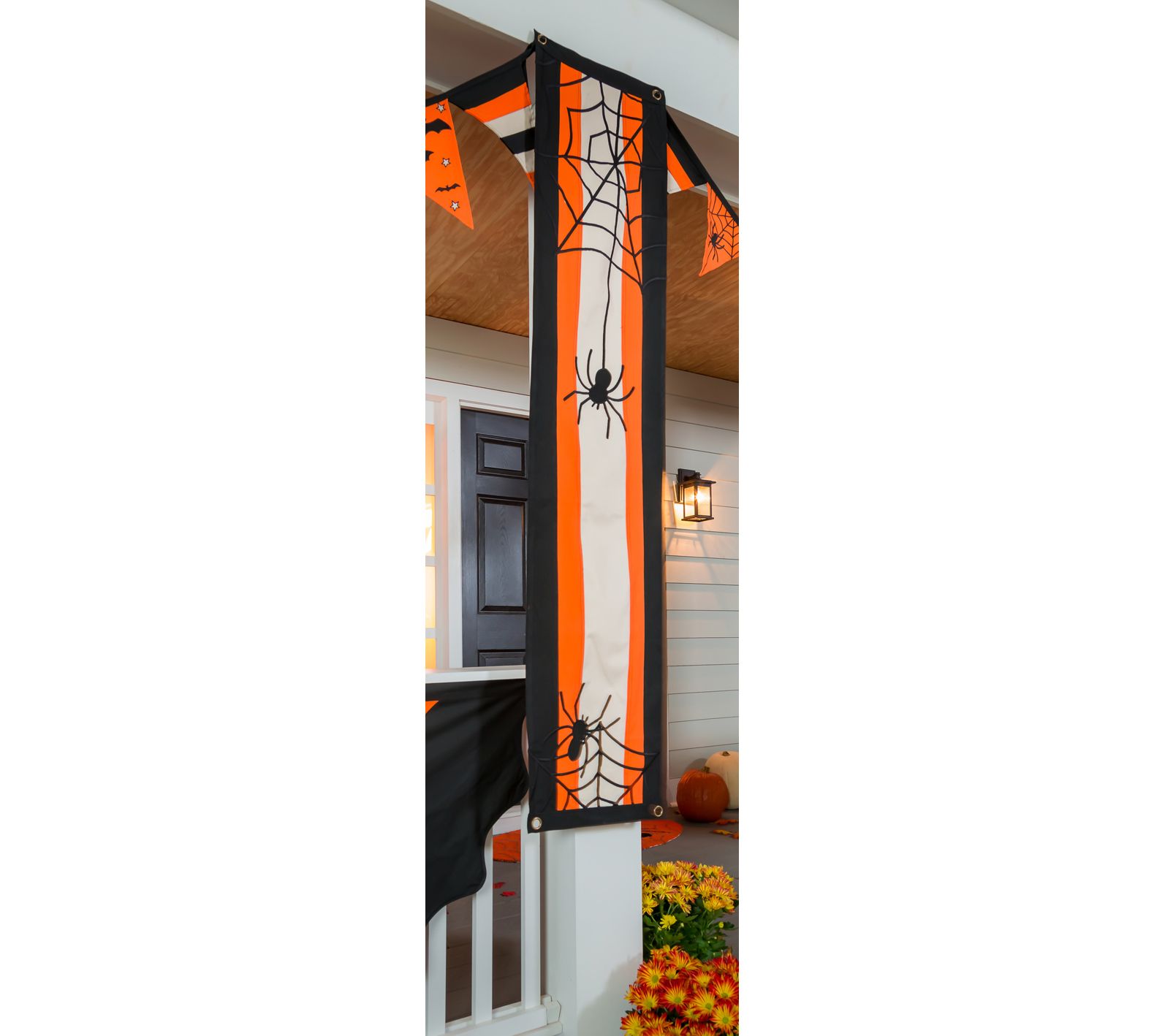It's easy to add spooky spirit to your home when you have this fun bunting that features classic Halloween colors and spiders in their webs. From Evergreen Enterprises.