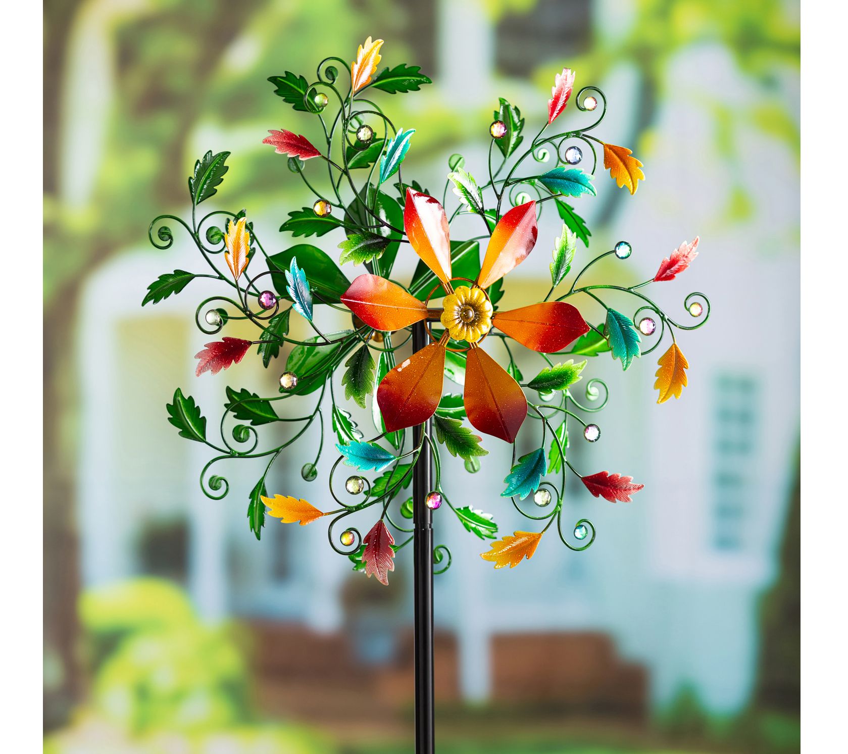 Bring bright, lively color and swirling leaves to your yard or garden with this beautiful wind spinner. From Evergreen.