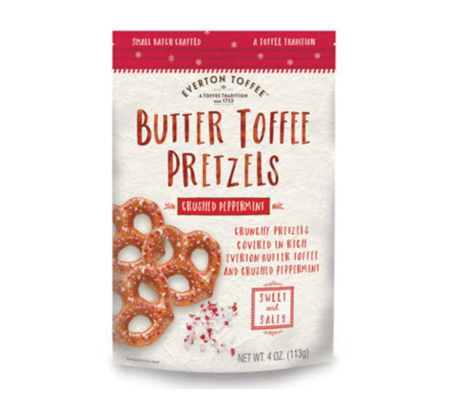 Scrumptious pretzels covered in sweet, decadent butter toffee and crushed peppermint? Um, yes, please -- we'll have another! From Everton Toffee.