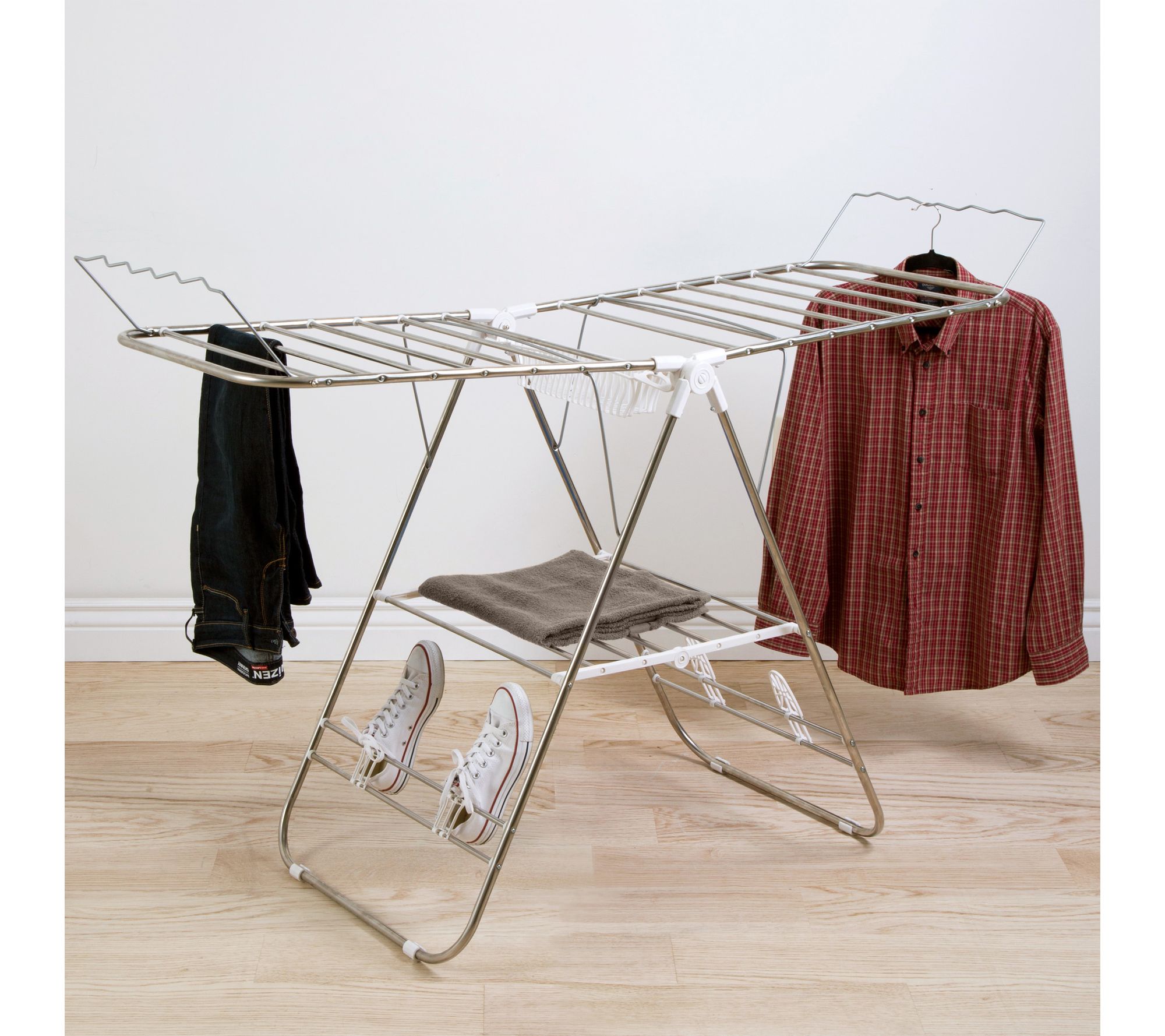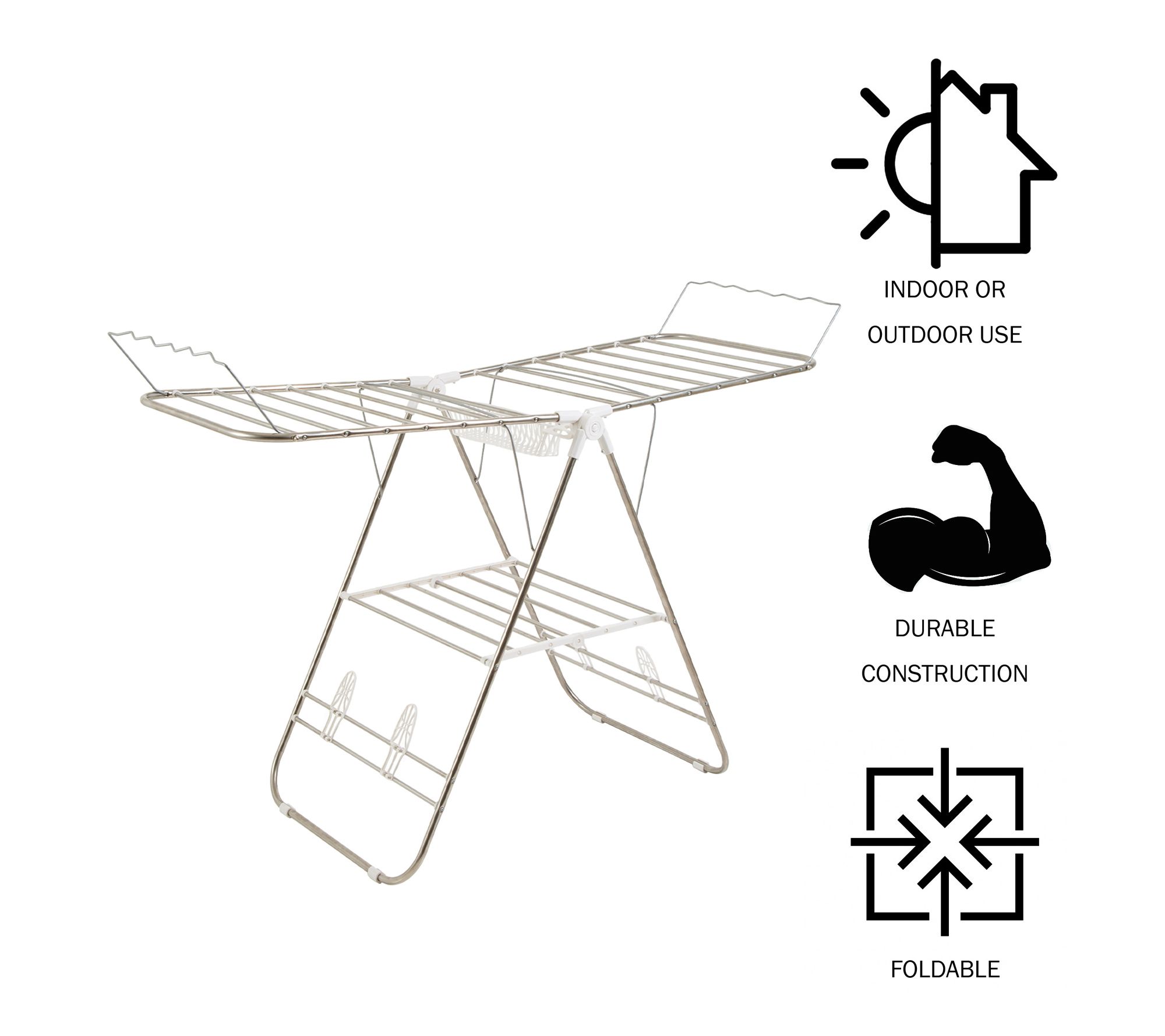 • Can be used outdoors to air-dry items in good weather, or indoors as an alternative to the dryer
