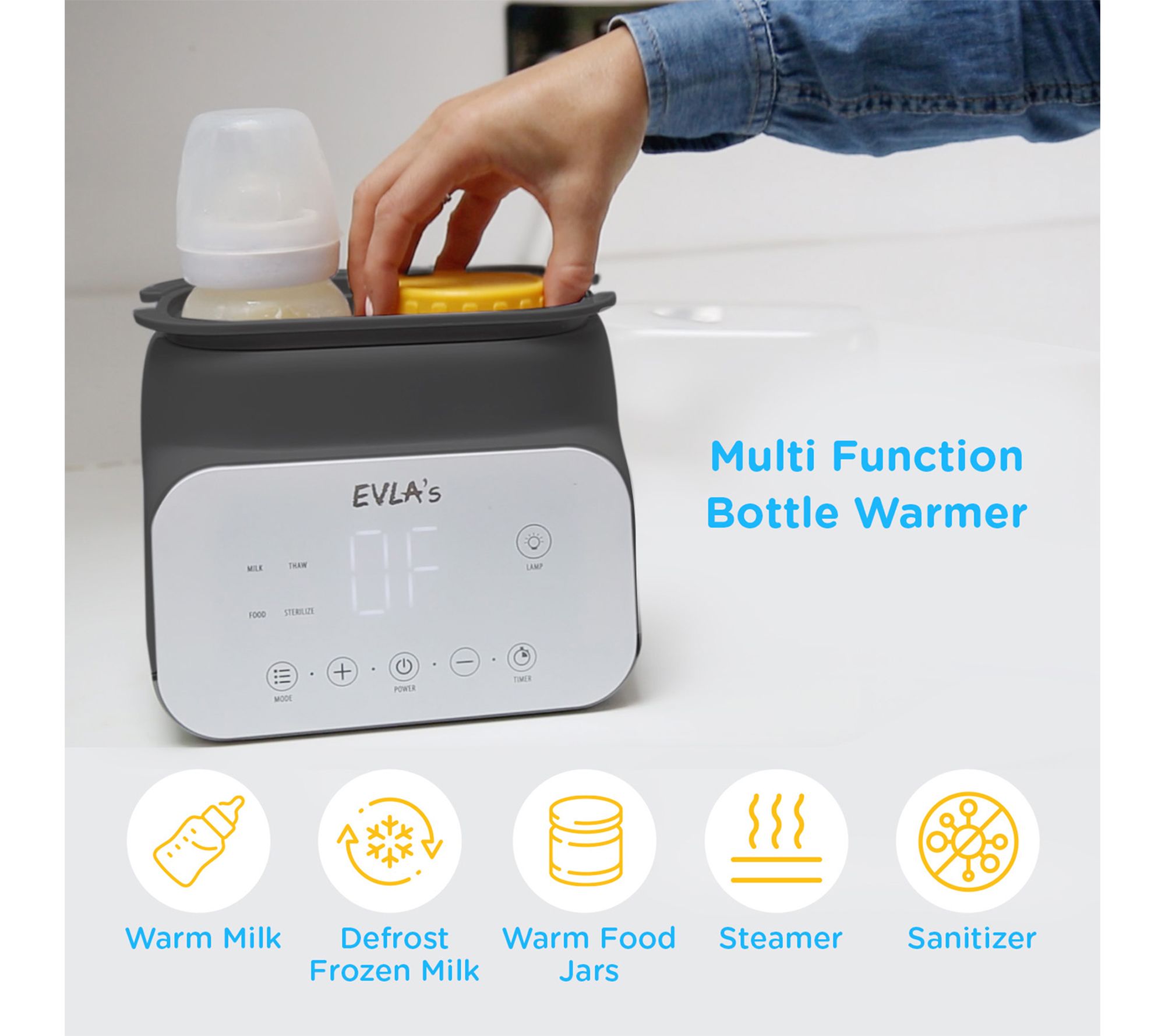 Warm bottles and food pouches to just the right temperature -- even during late-night feedings -- with this double bottle warmer. Accommodating two bottles at once, it gently heats formula, breastmilk, or baby food while also offering a sanitizer feature to help keep feeding essentials clean and ready whenever you need them. From EVLA's.