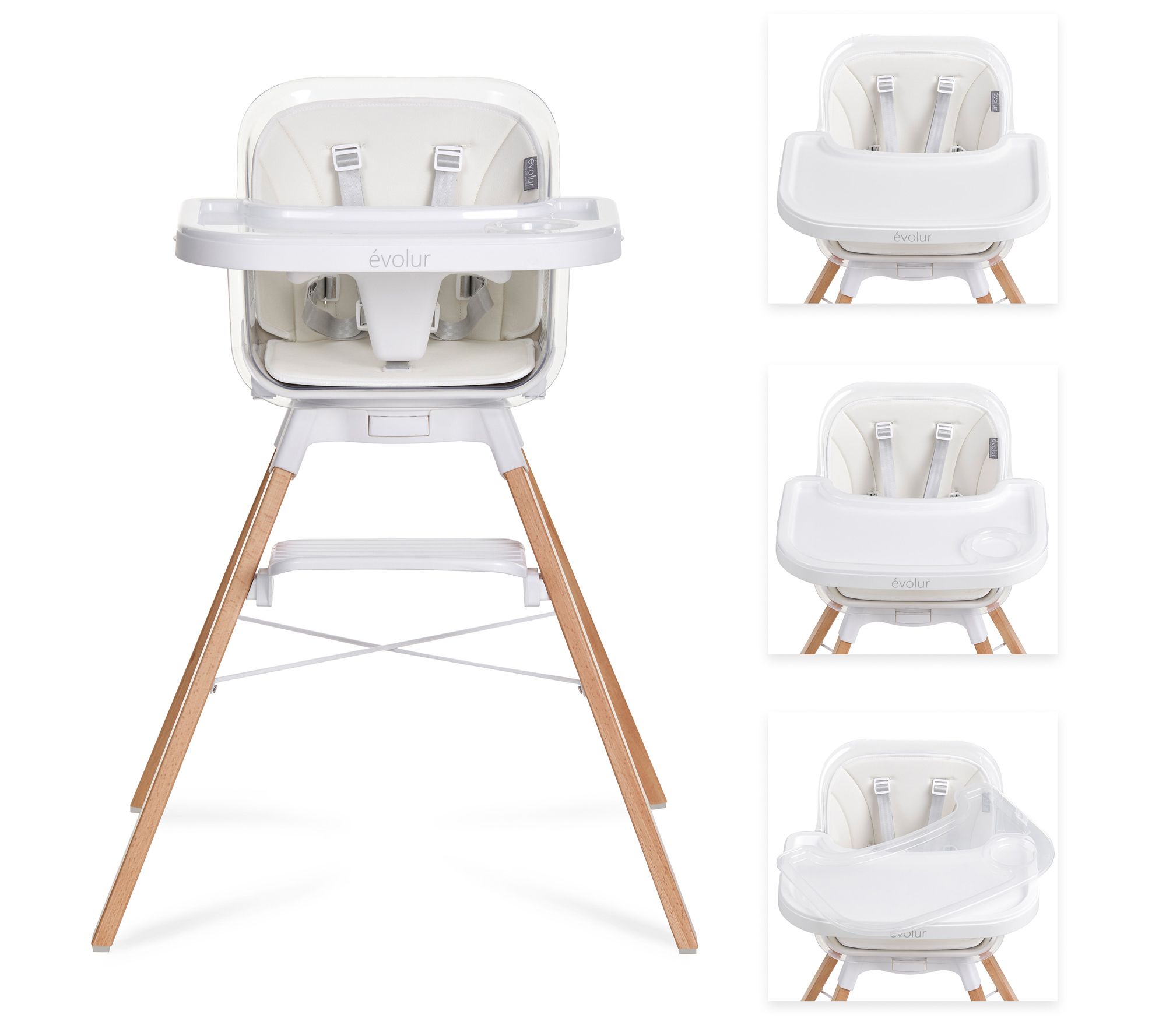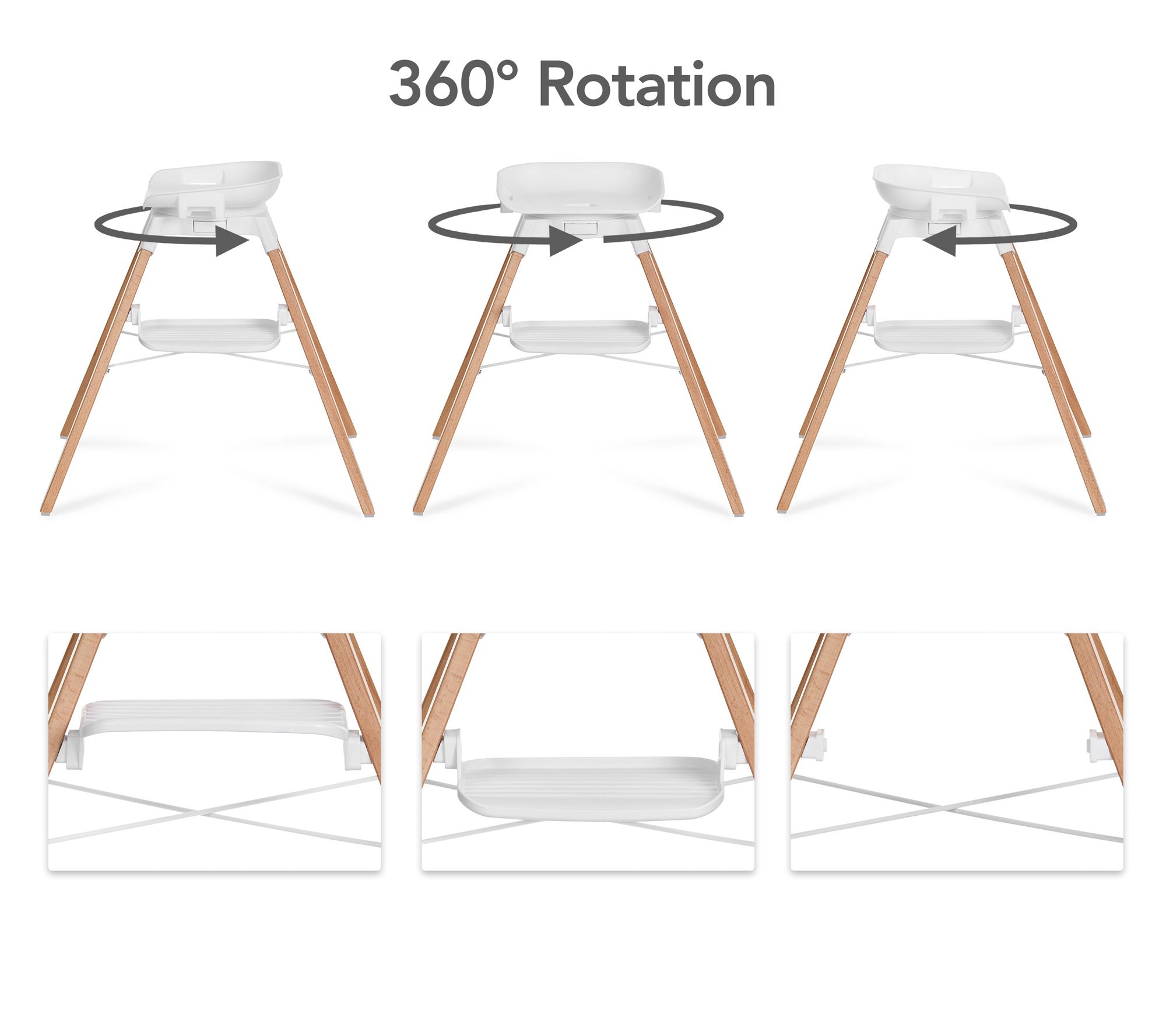 Make mealtime a breeze with the Evolur Bloom highchair. Its 360-degree rotating seat and adjustable tray allow your child to enjoy meals from any angle with ease. The dishwasher-safe tray insert and non-slide beechwood legs ensure stability and easy cleanup. From Evolur.