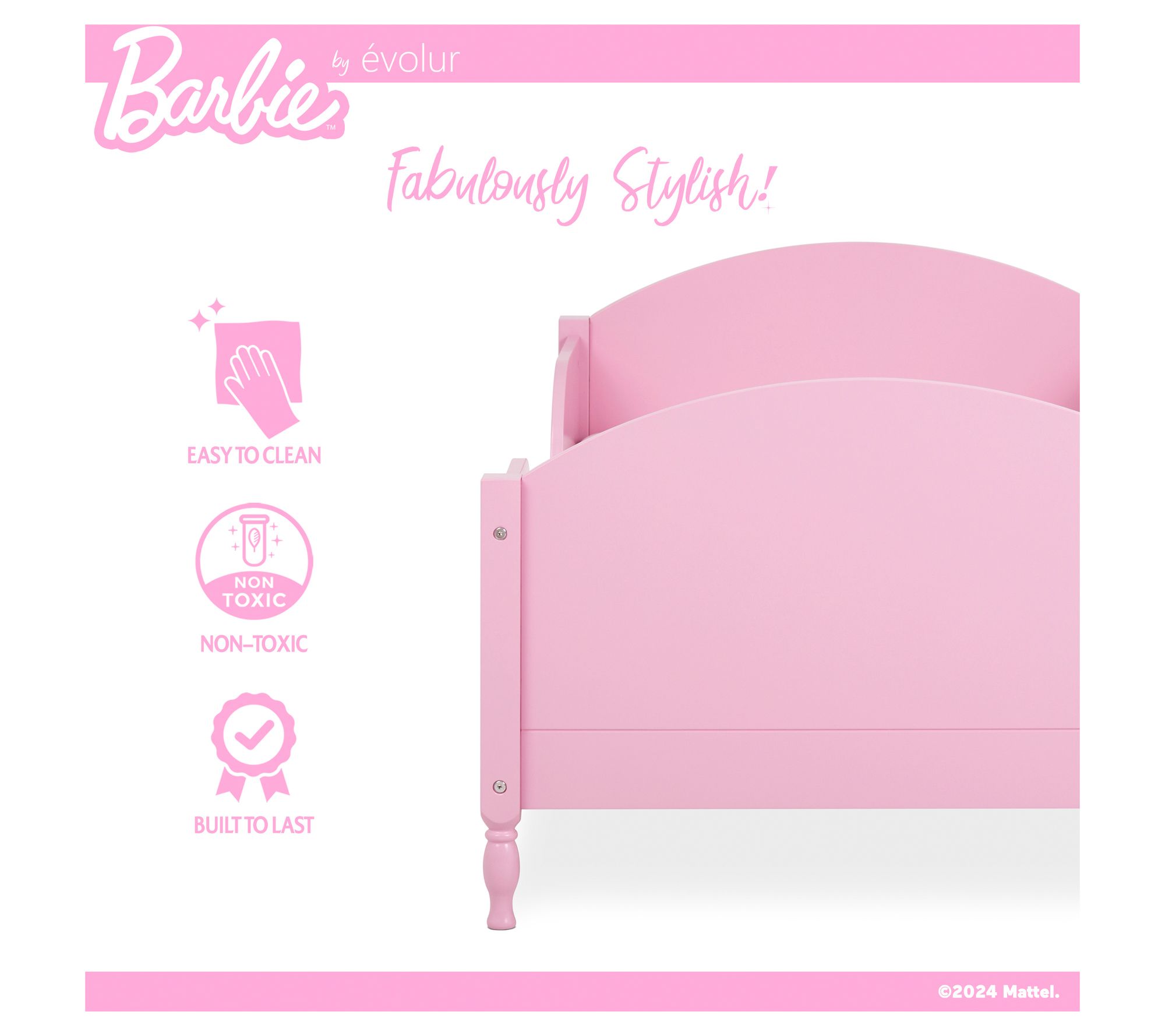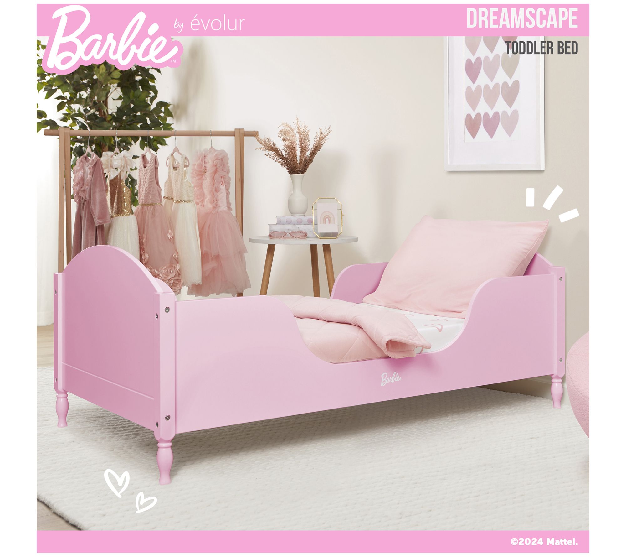 A significant milestone awaits as your child transitions to their very own big kid bed with the Evolur Barbie Dreamscape toddler bed. This charming and elegant bed captures the essence of Barbie’s signature style, adding a touch of sparkle to any bedroom decor. From Evolur.