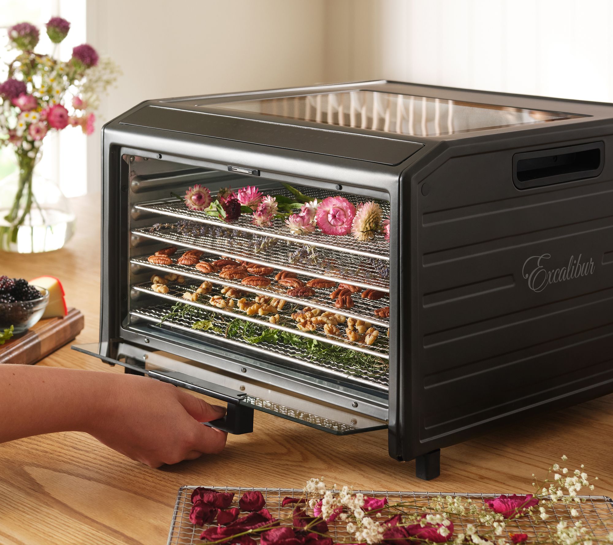 Preserve fresh foods and create healthy snacks with this digital dehydrator delivering consistently precise results thanks to two highly adjustable drying phases. From Excalibur.