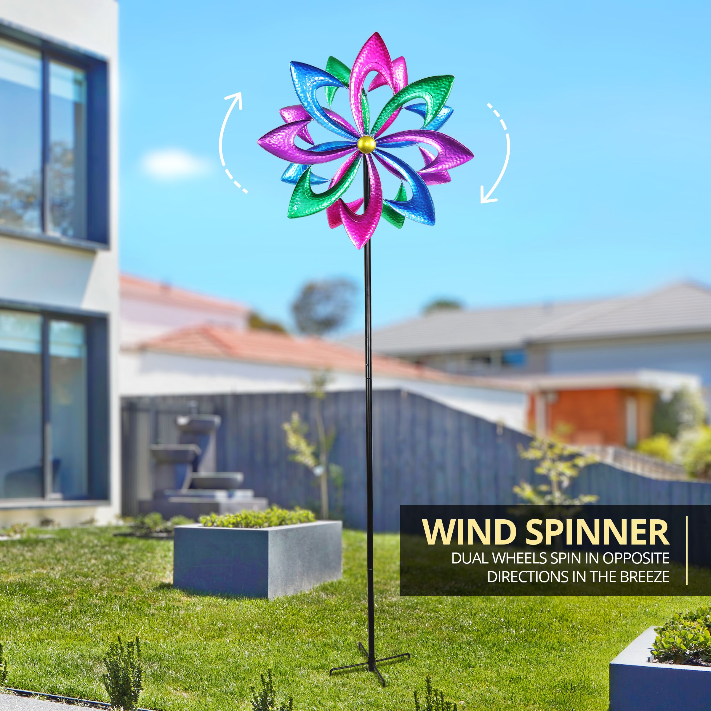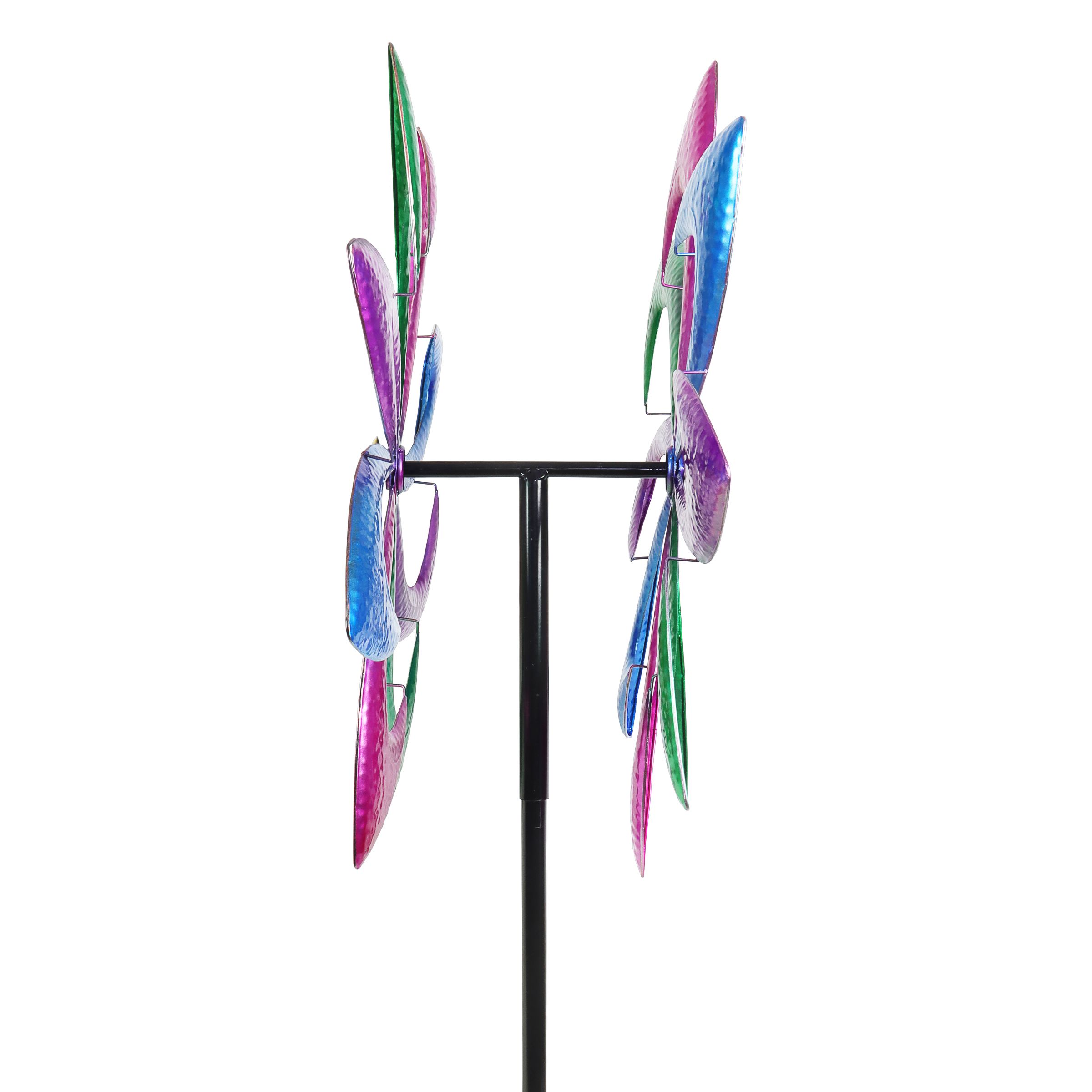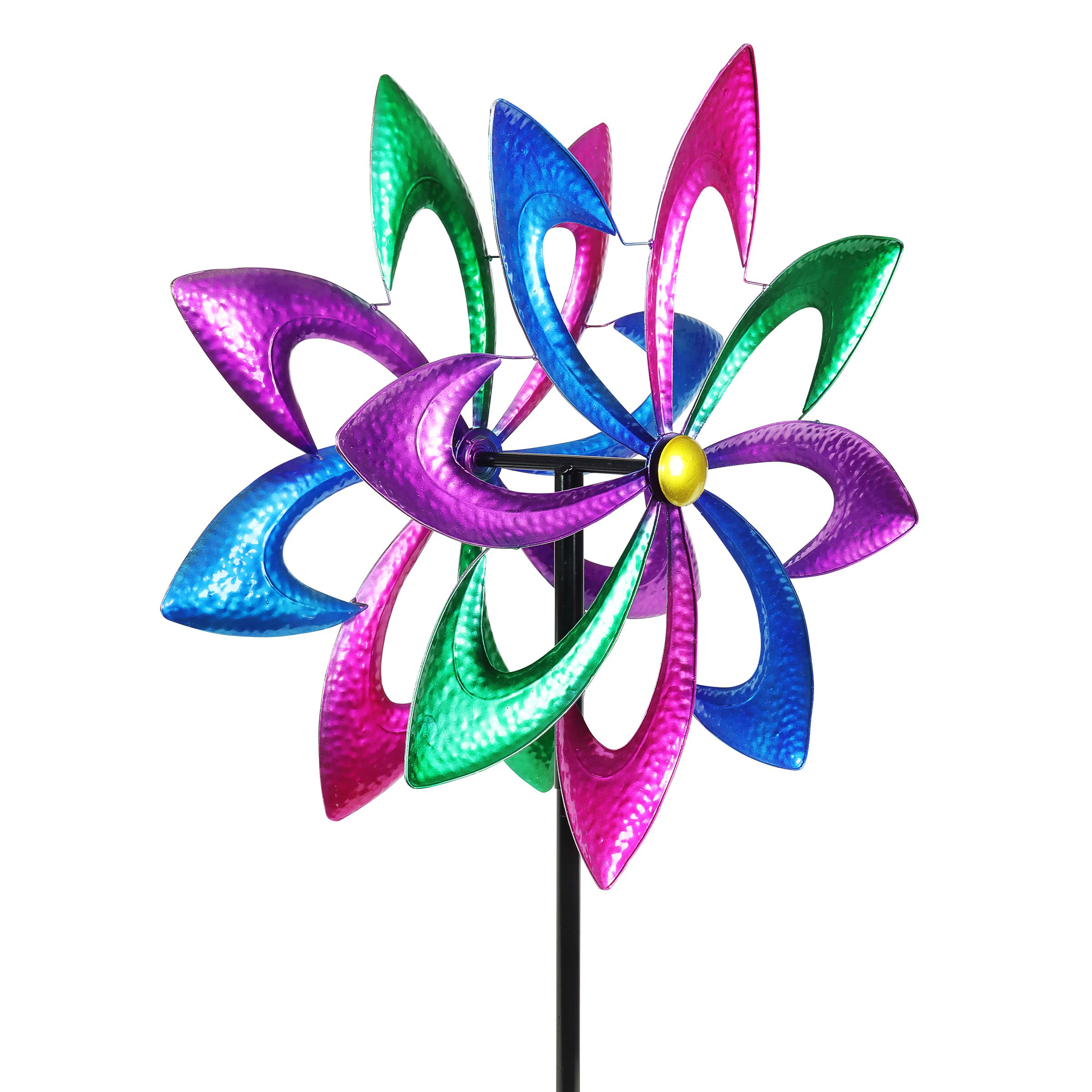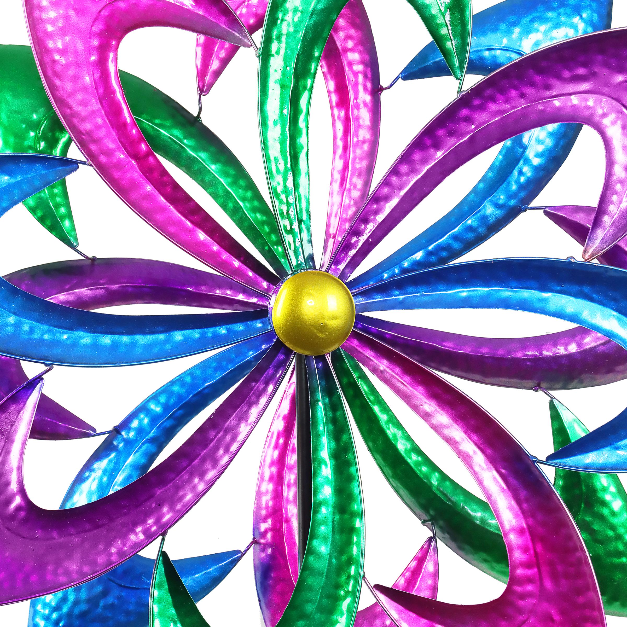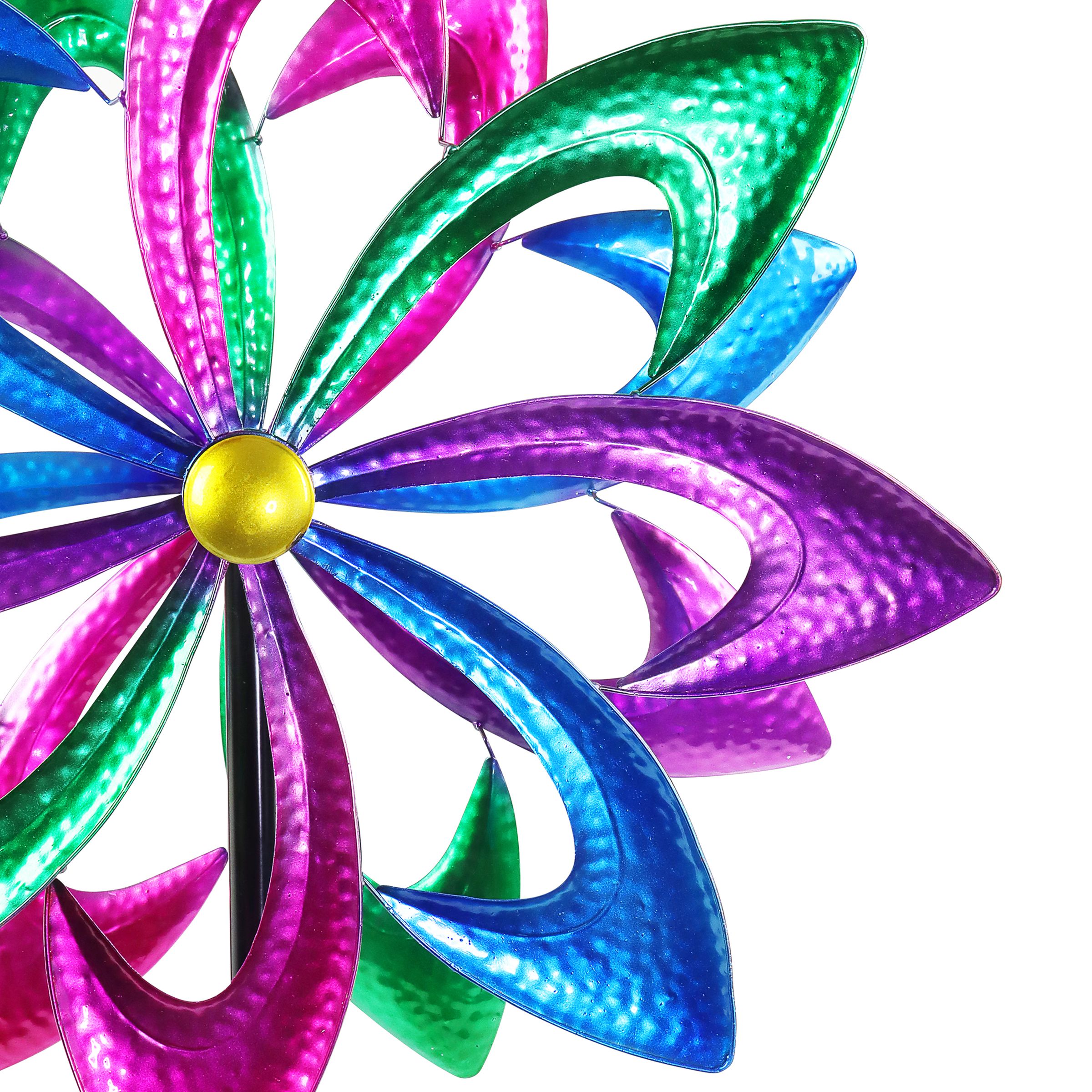 Get ready to be dazzled when the wind catches this colorful spinner stake! Feature this gorgeous wind spinner in your garden and watch it come alive and spin in two directions with a gentle breeze. From Exhart.