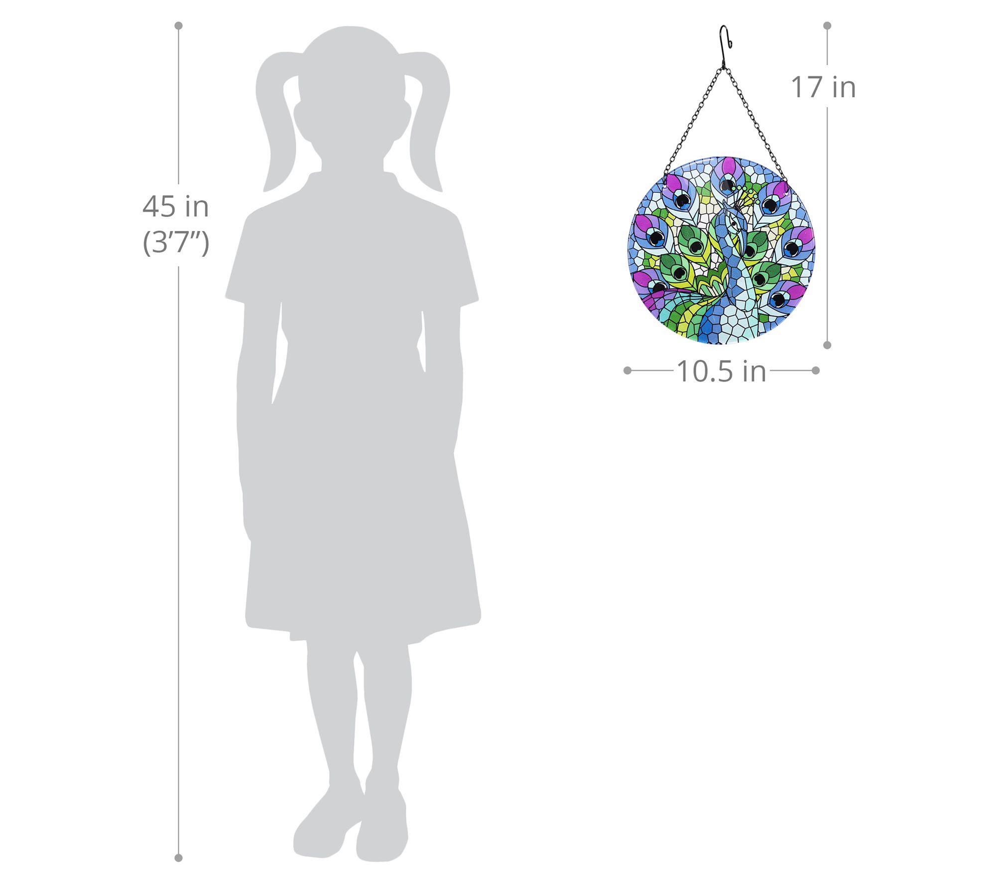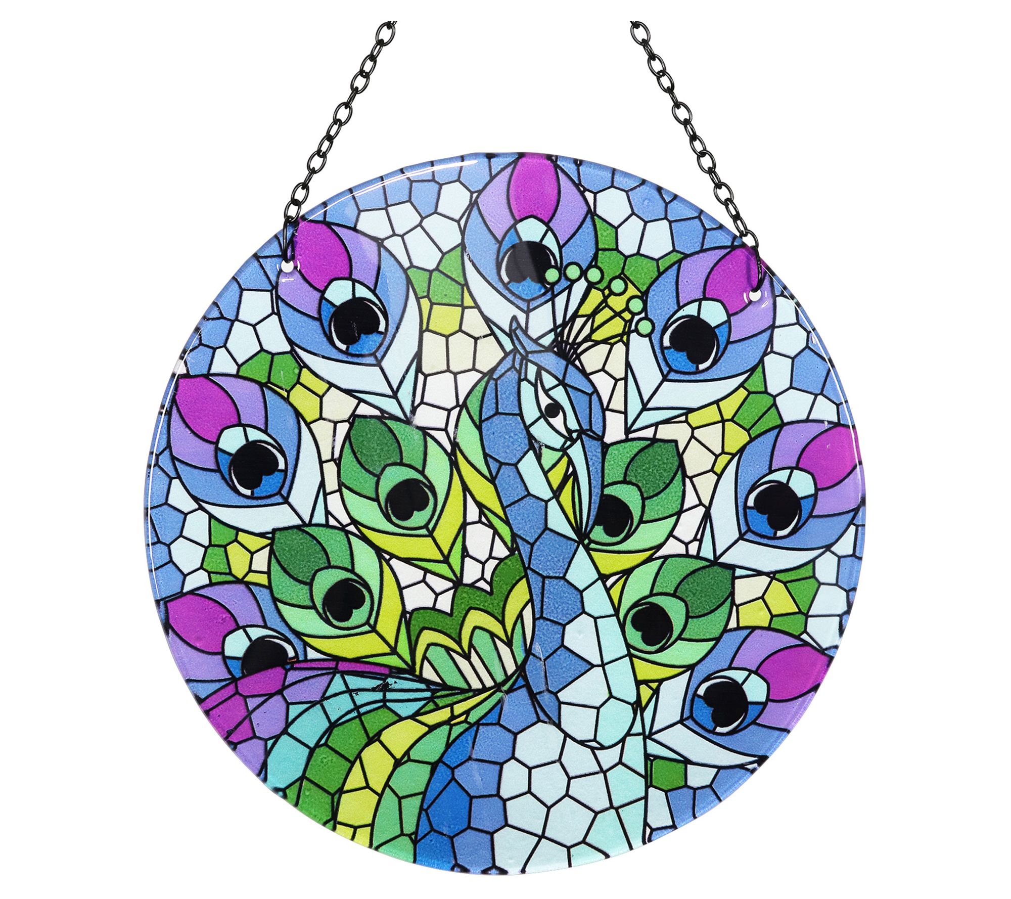 Hang this stunning Mosaic Peacock Suncatcher and instantly be dazzled by the bright and beautiful design. From Exhart.