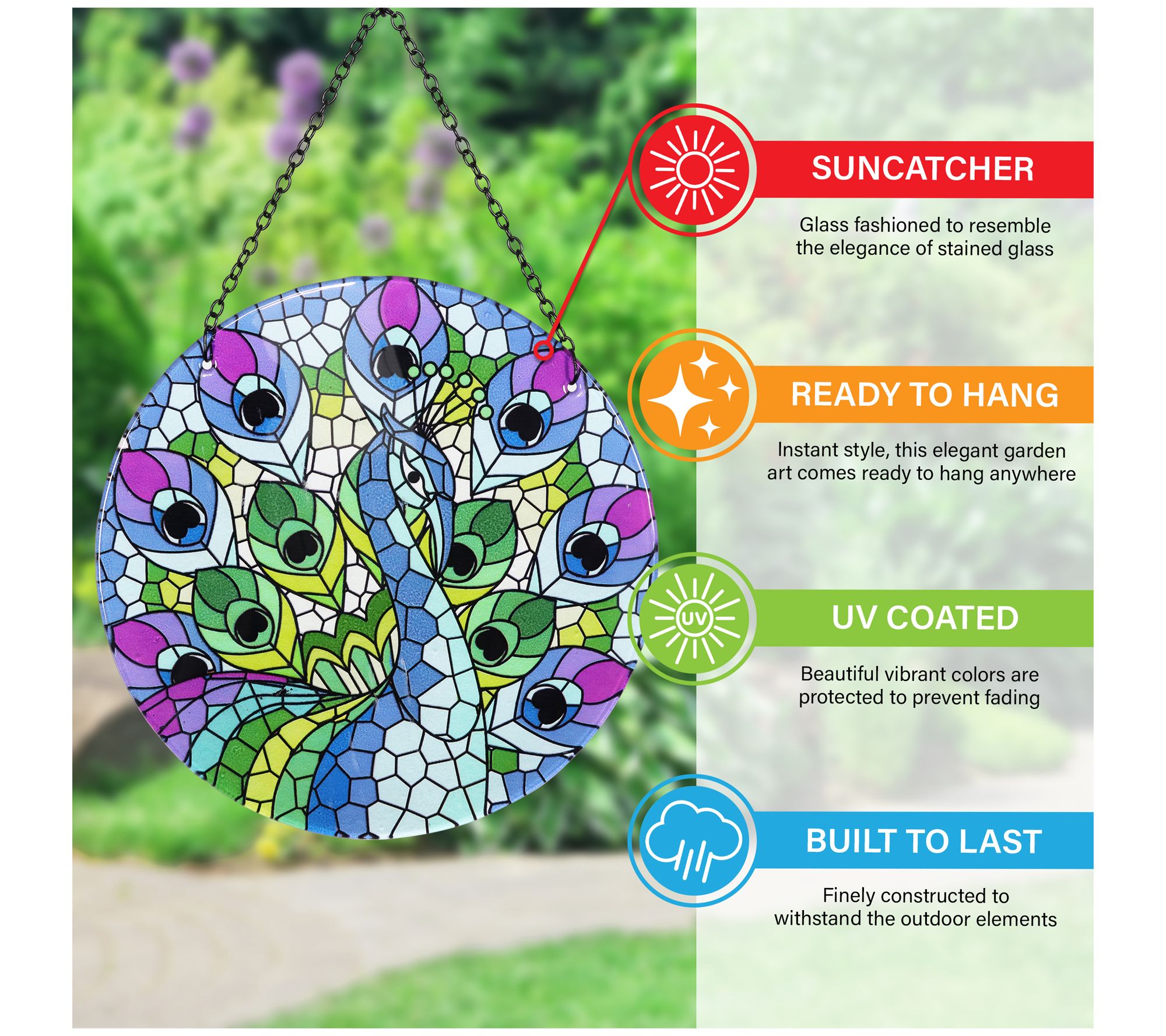 Exhart Hanging Mosaic Peacock Suncatcher