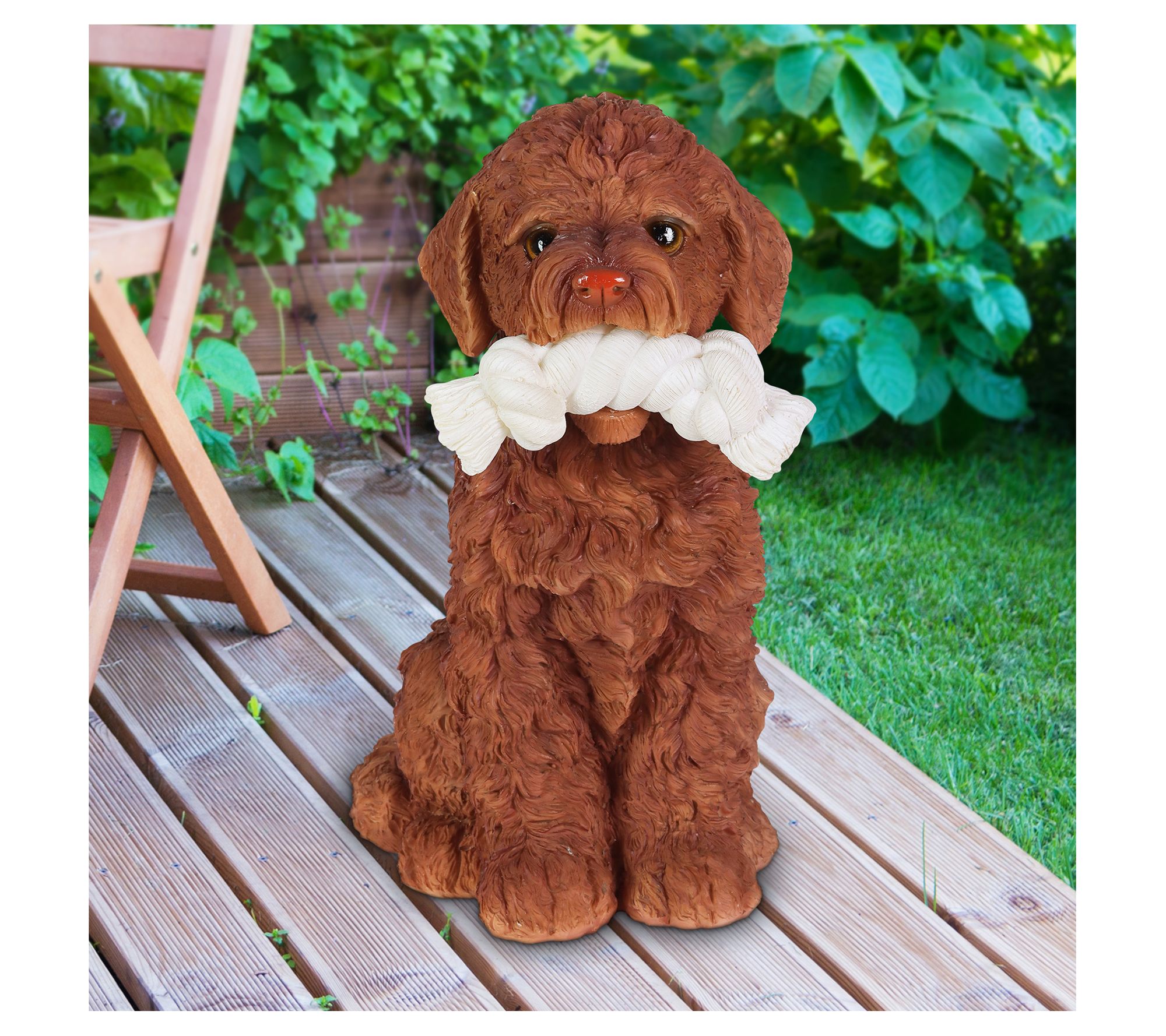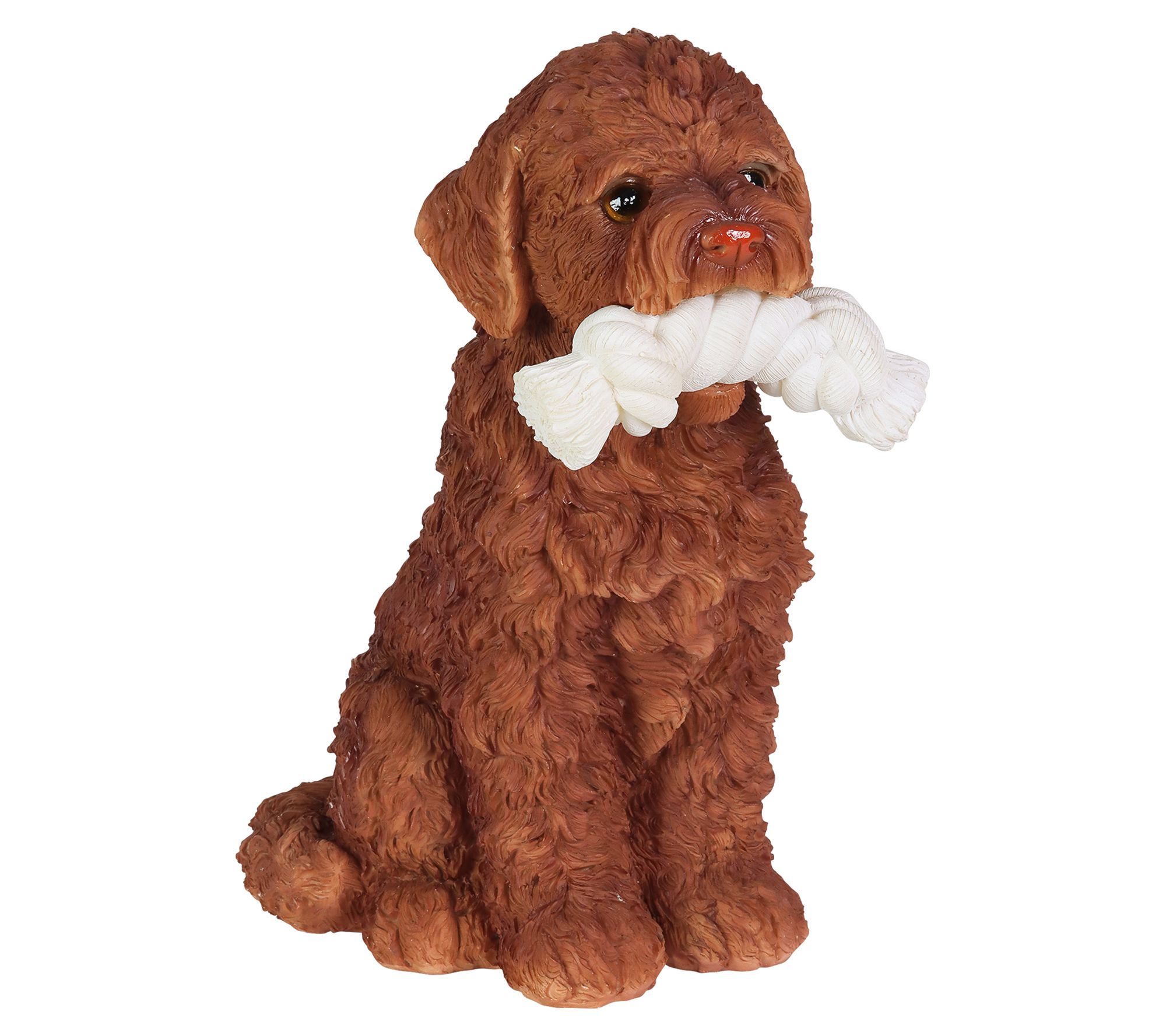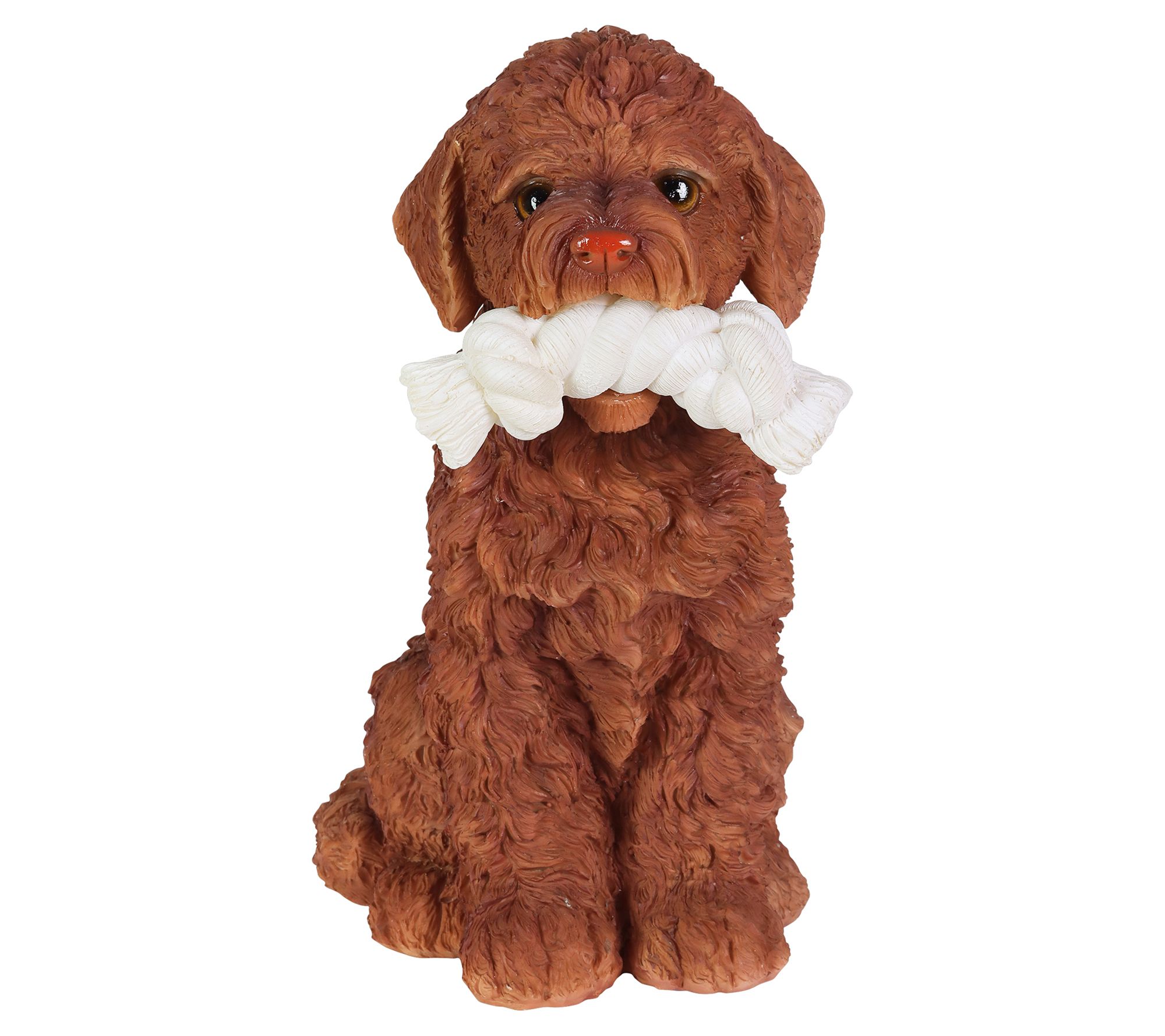 Ready to play? This adorable Labrador retriever is always ready to have some fun with his favorite rope toy! Set this very good boy by your entryway or in your garden to add some doggone sweet charm to your yard and some soft illumination too, courtesy of the LED lights that turn on automatically at dusk and off at dawn. From Exhart.