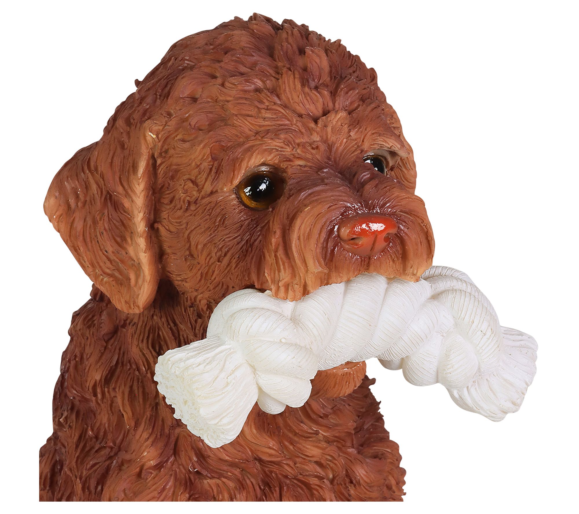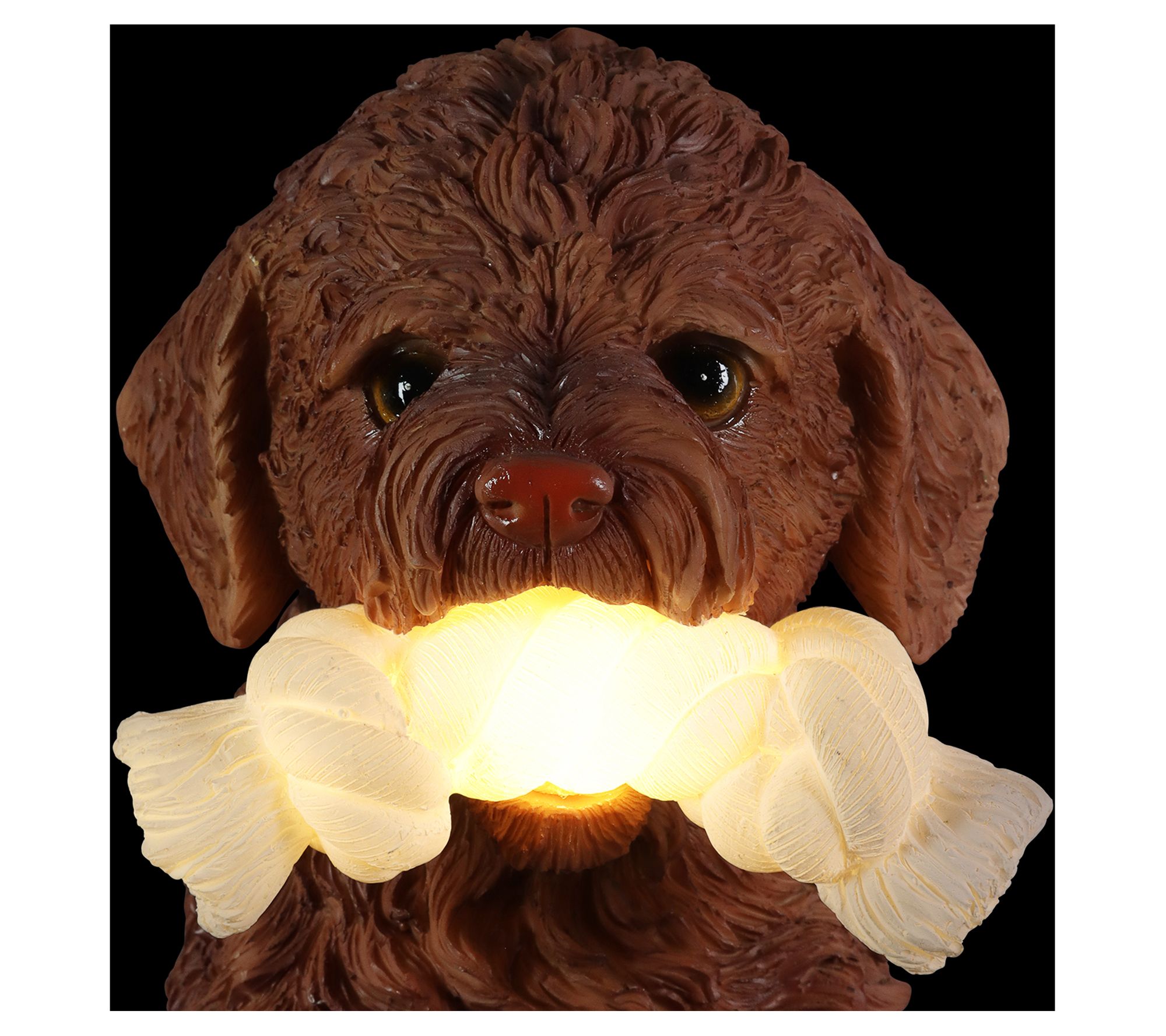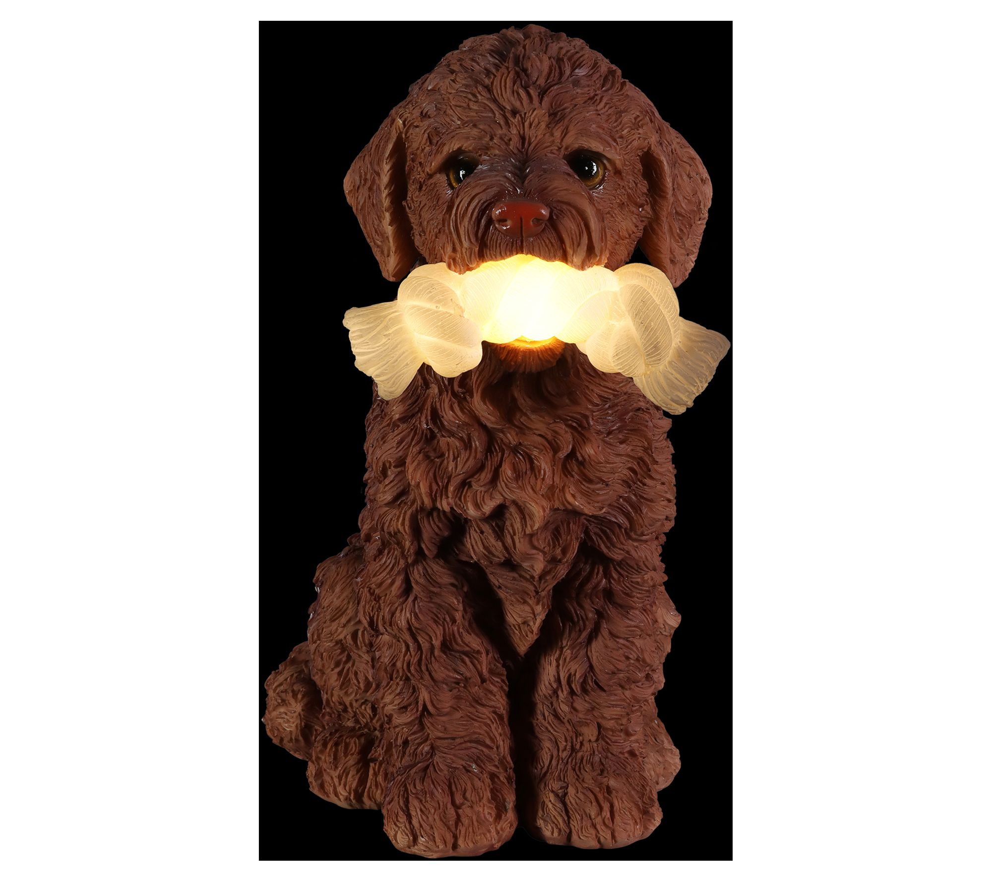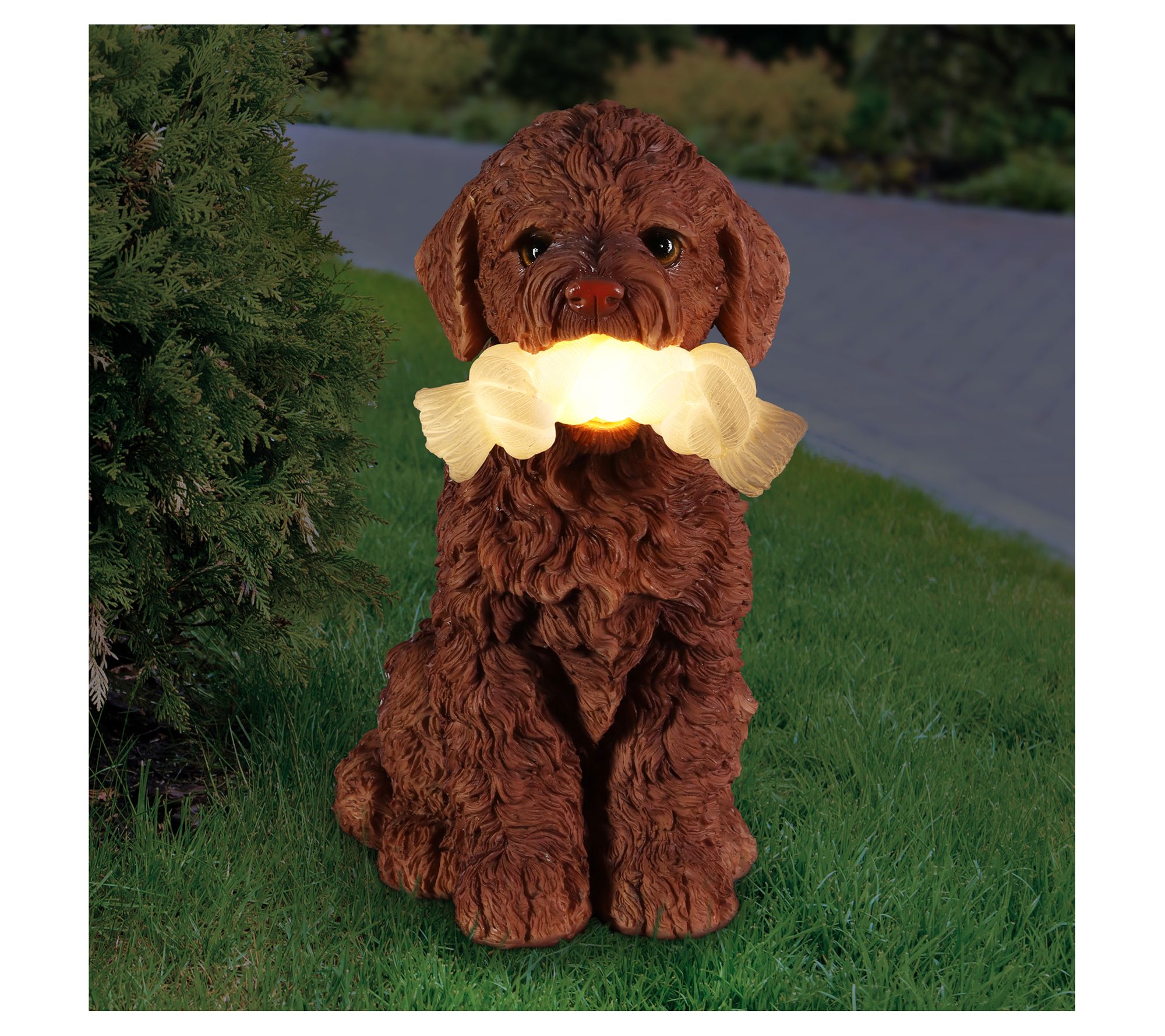 Ready to play? This adorable Labrador retriever is always ready to have some fun with his favorite rope toy! Set this very good boy by your entryway or in your garden to add some doggone sweet charm to your yard and some soft illumination too, courtesy of the LED lights that turn on automatically at dusk and off at dawn. From Exhart.