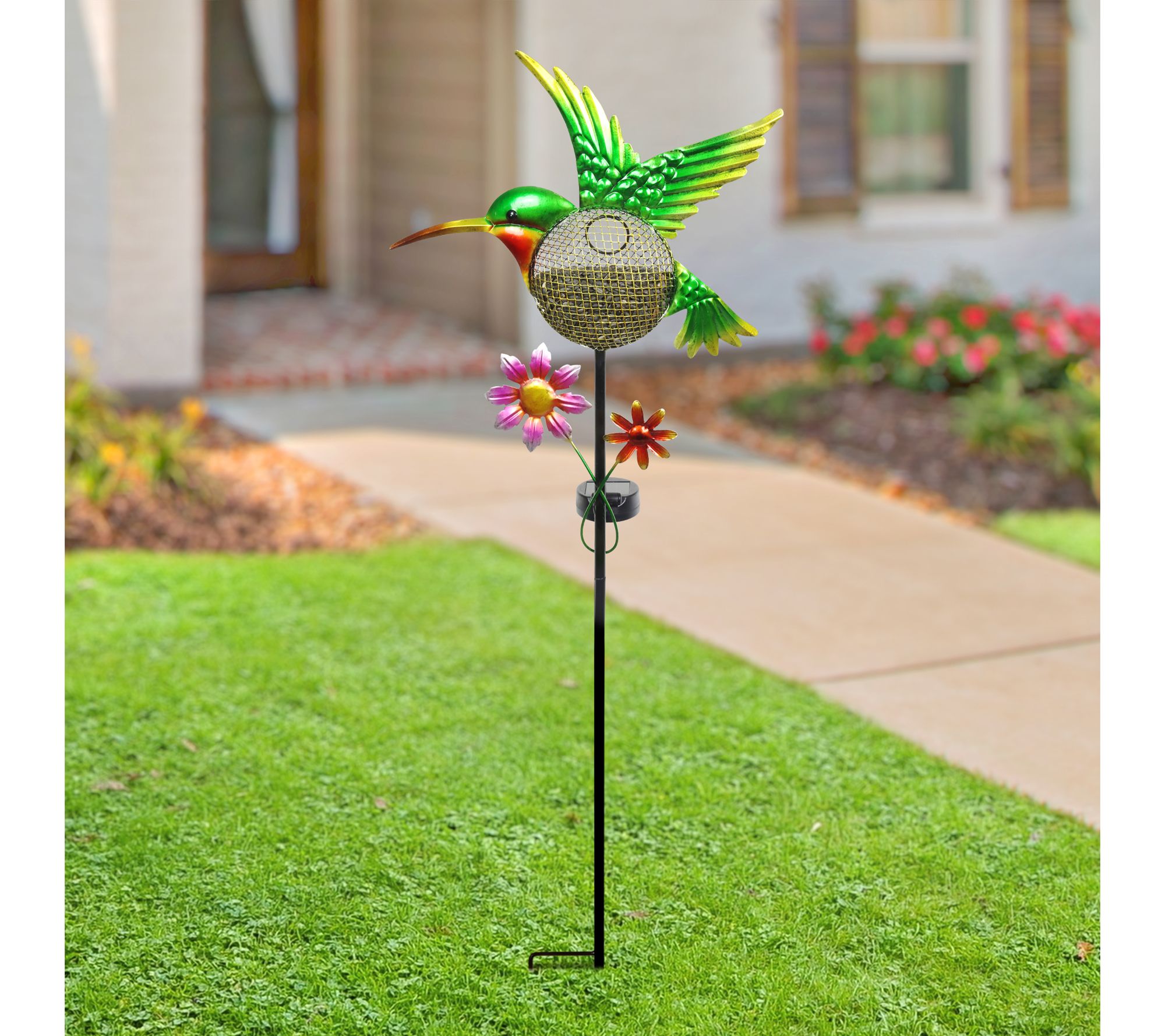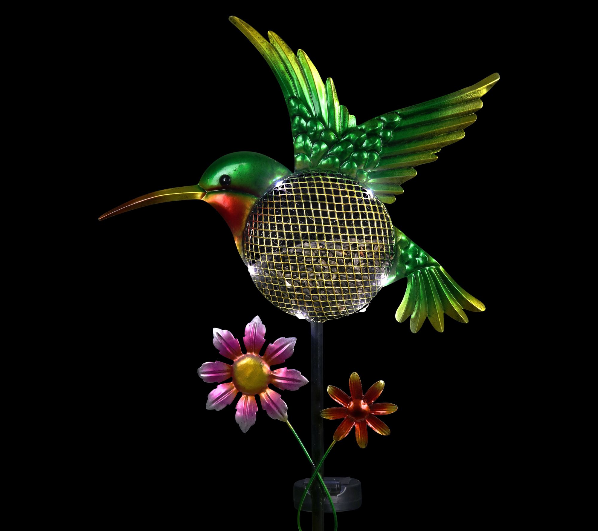 • Hummingbird stake with solar-powered LED lights