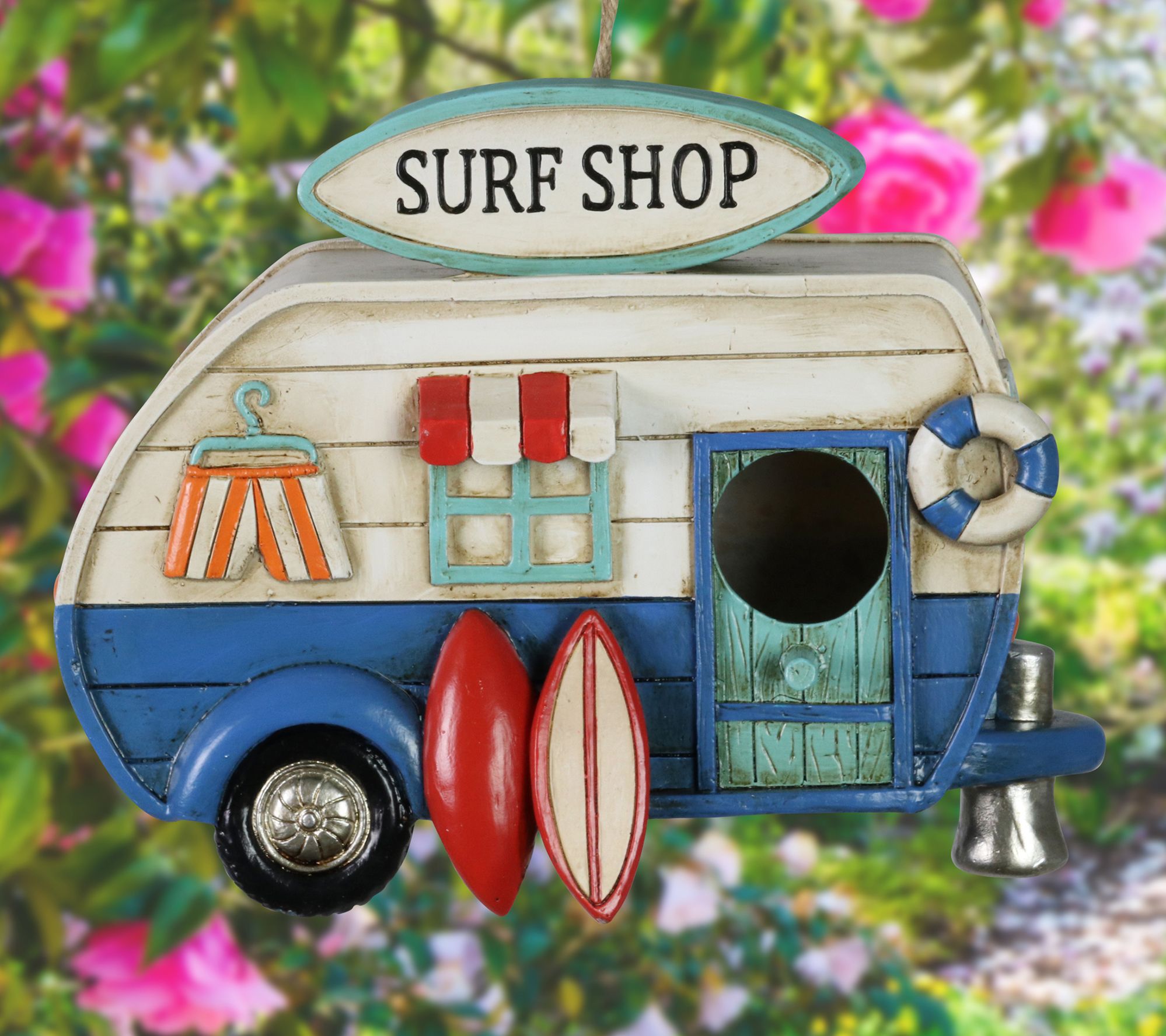 A wonderful gift for a bird watcher, nature enthusiast, or surfer, this RV bird house illuminates at dusk and easily hangs anywhere, welcoming winged creatures to your garden. From Exhart.