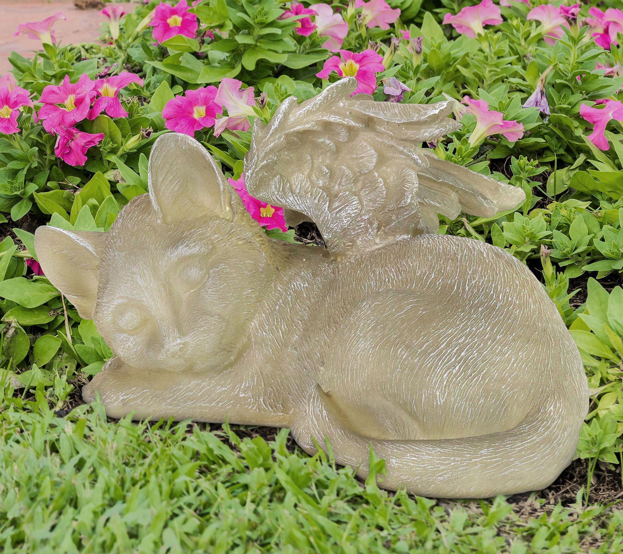 A sweet remembrance of a furry loved one, this sleeping cat garden statue illuminates at dusk to warm your heart. From Exhart.
