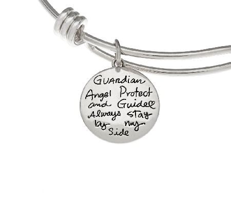 Angel/Angel: "Guardian angel protect and guide always by my side" message; amethyst bead, quartzite bead, small angel wing with "Little Angel" message, two heart charms, and smaller angel.