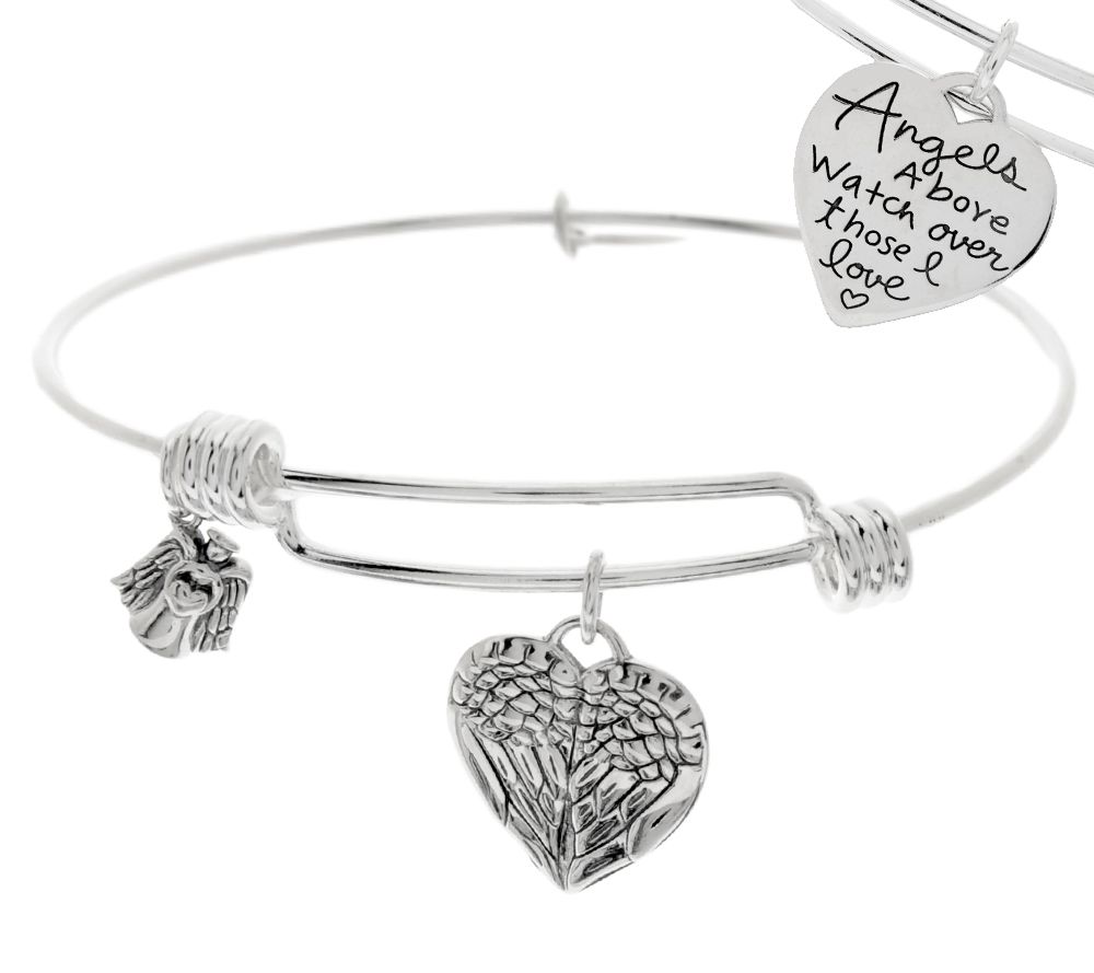 • Large inspirational heart charm; smaller charms in varying sizes; expandable