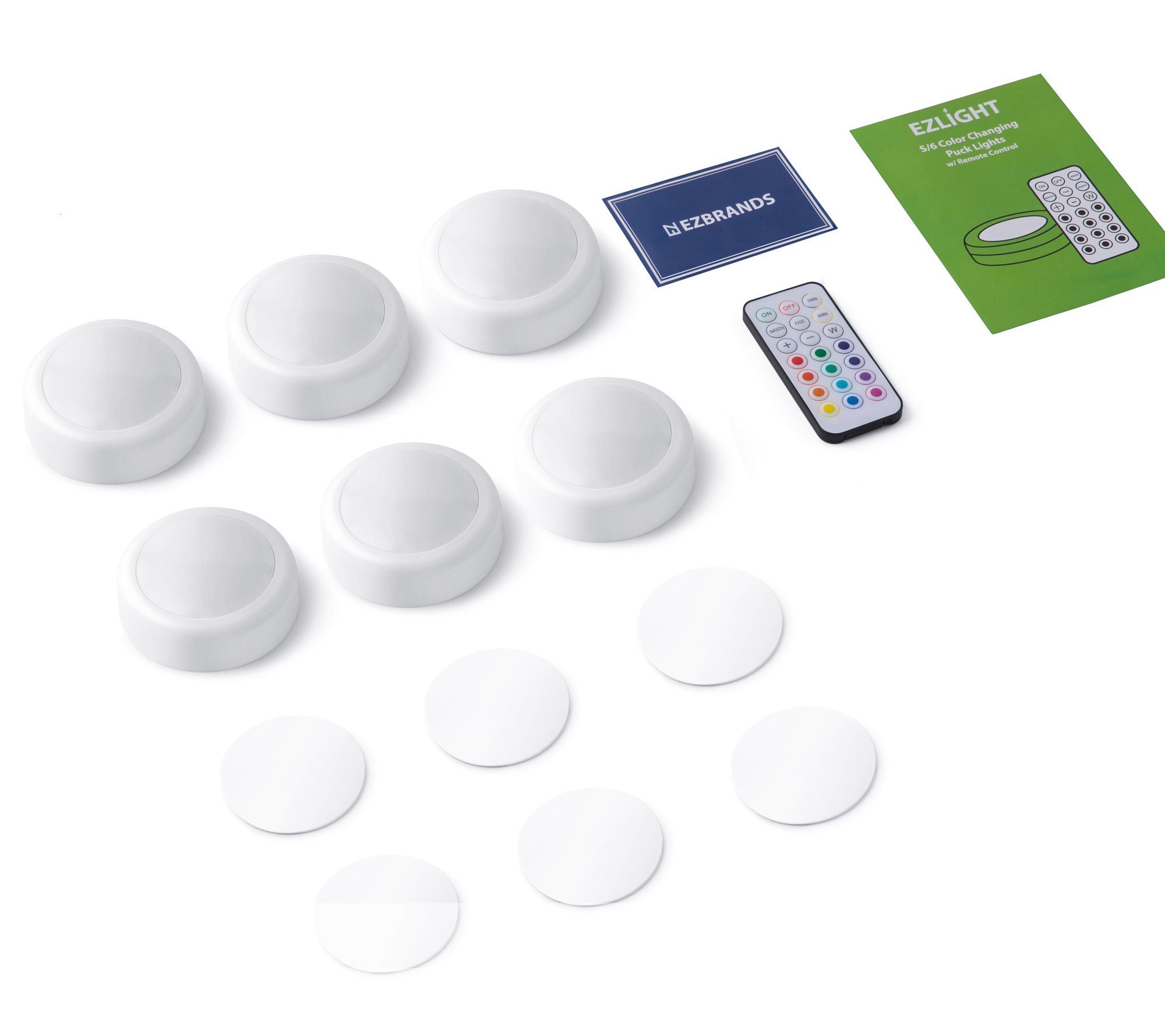 EZLight Set of 6 Color Changing Puck Lights w/Remote