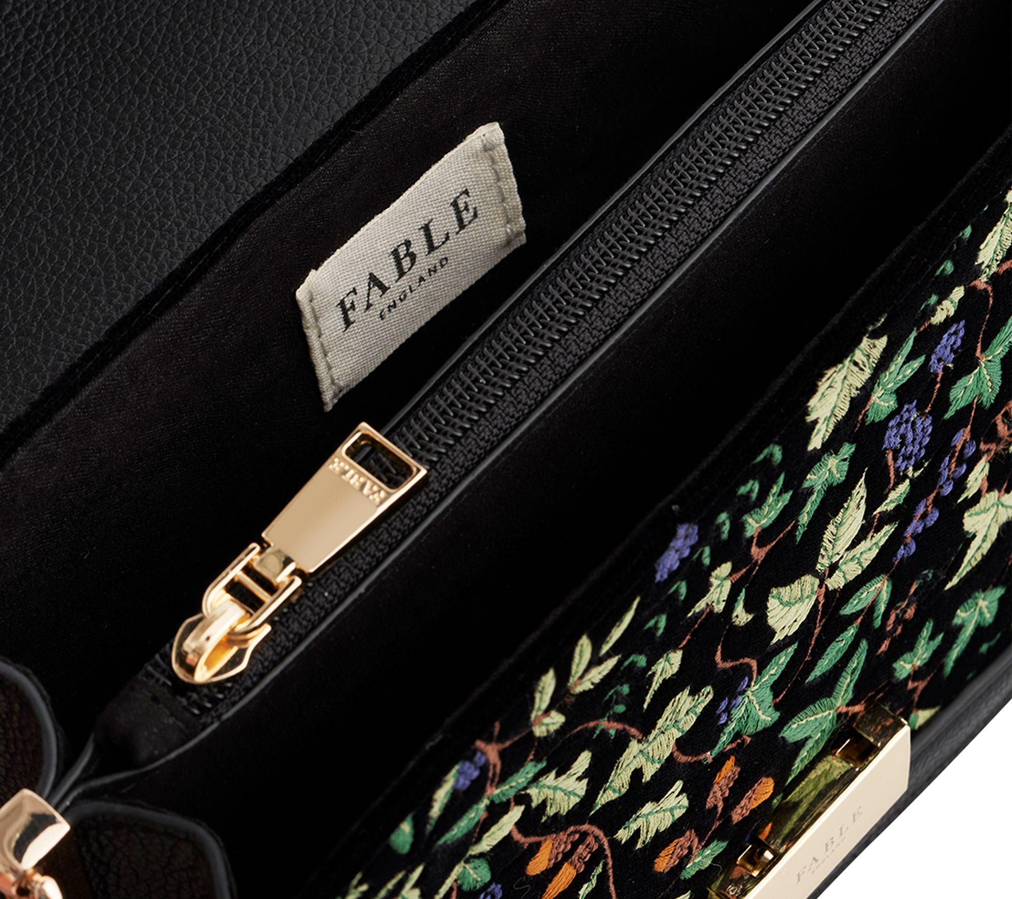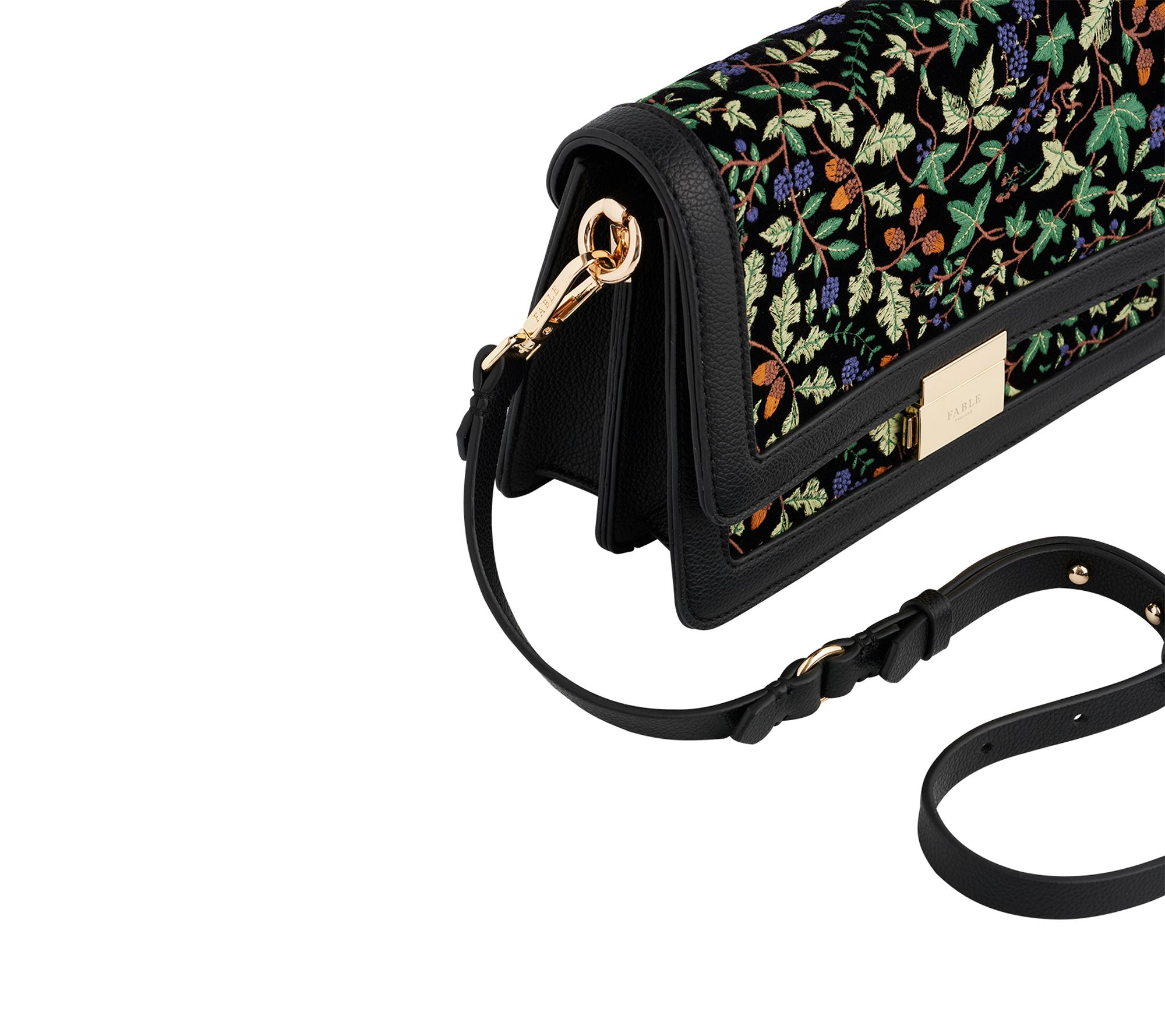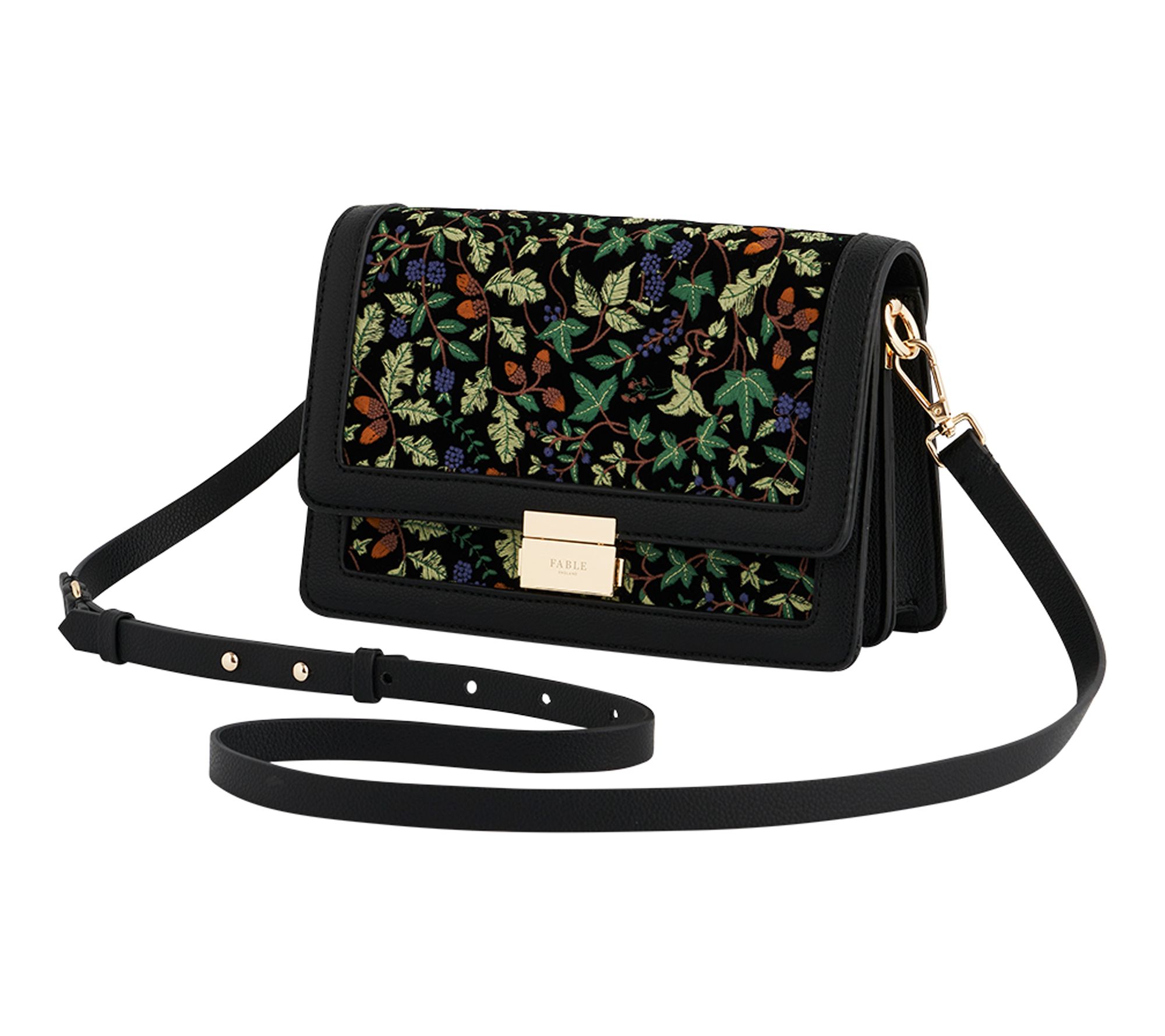 Take in the enchanting embroidered details of this crossbody as you wander city streets, attend festive gatherings, or add a hint of whimsy to daily errands. The fold-over flap and goldtone clasp channel an ethereal elegance, while the adjustable and detachable strap lets you switch up your style in seconds. From Fable England.