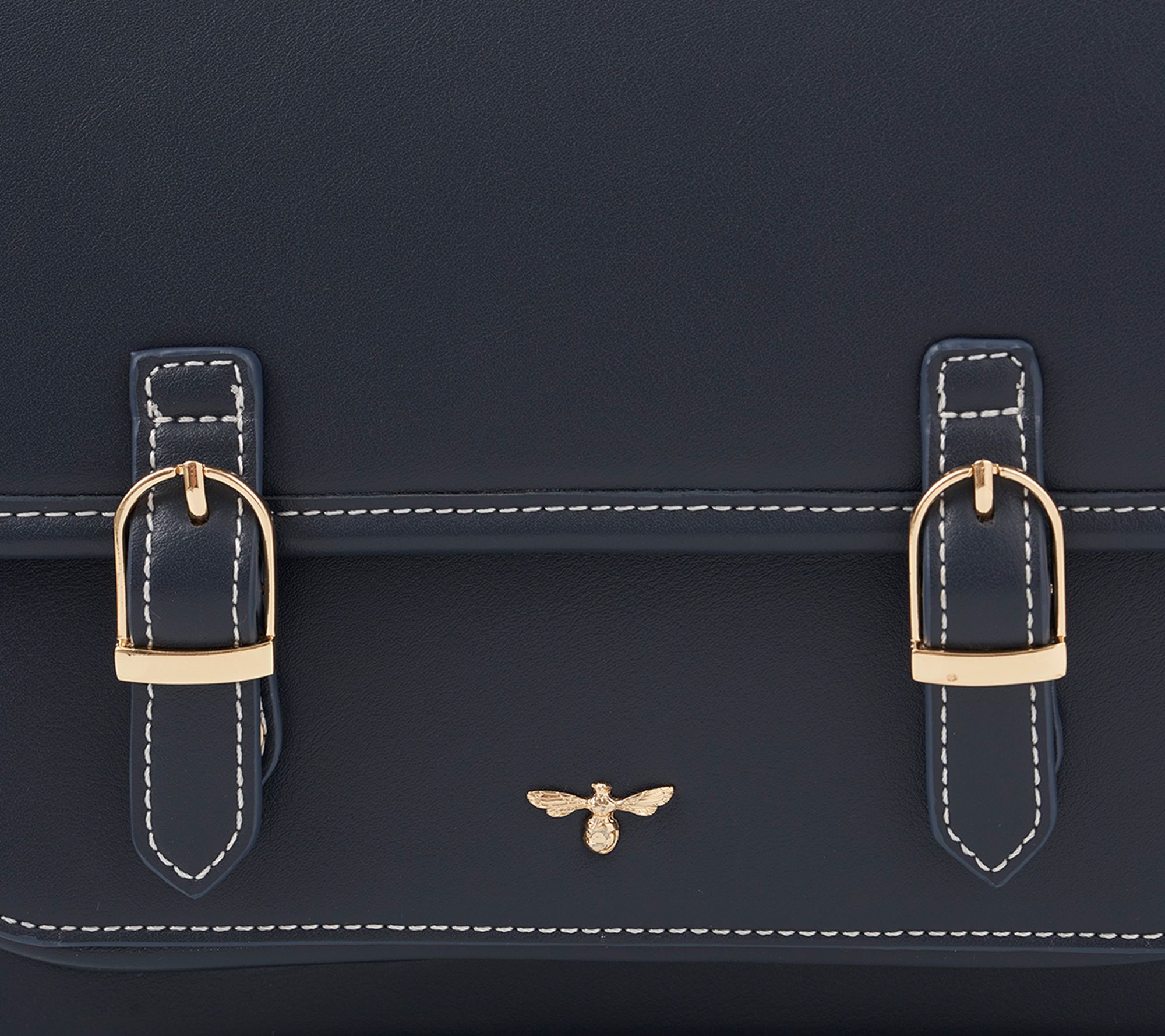 Whether you're strolling through weekend markets or heading to brunch with friends, this satchel adds a dash of playful charm. Its neat compartments keep daily essentials organized while goldtone buckles and a signature bee plaque lend a classic whimsy. From Fable England.