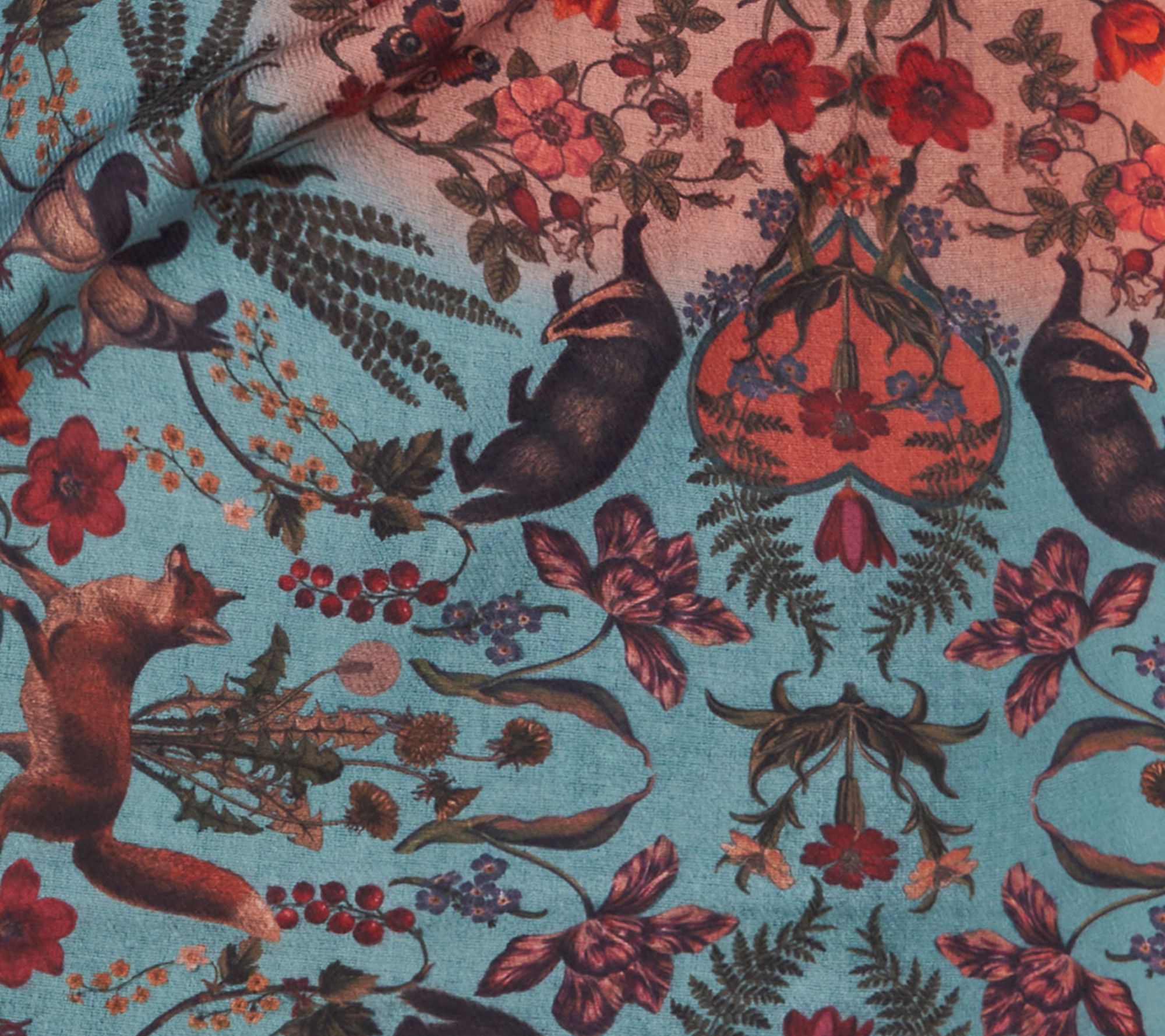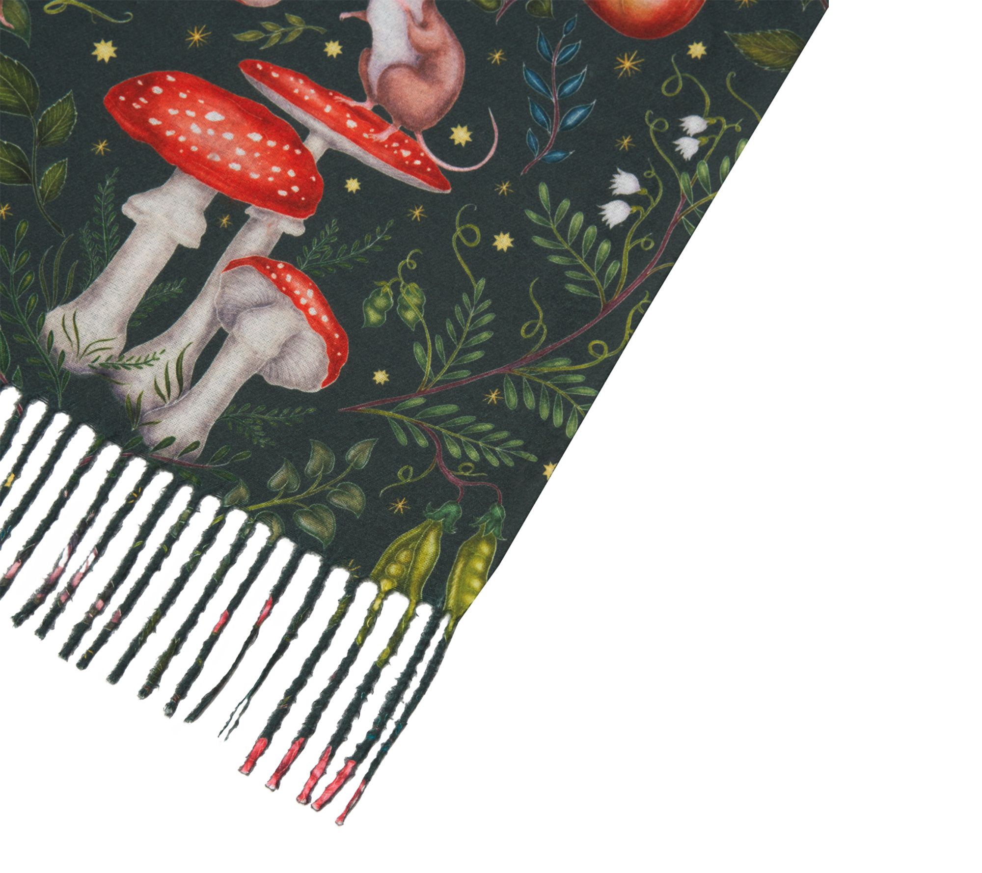 Fable England's folksy fox teal scarf adds a touch of whimsical charm to your cold-weather wardrobe. Its soft woven fabric and delicate tassel fringe make it a cozy companion for evening gatherings or tranquil strolls through crisp autumn landscapes. From Fable England.