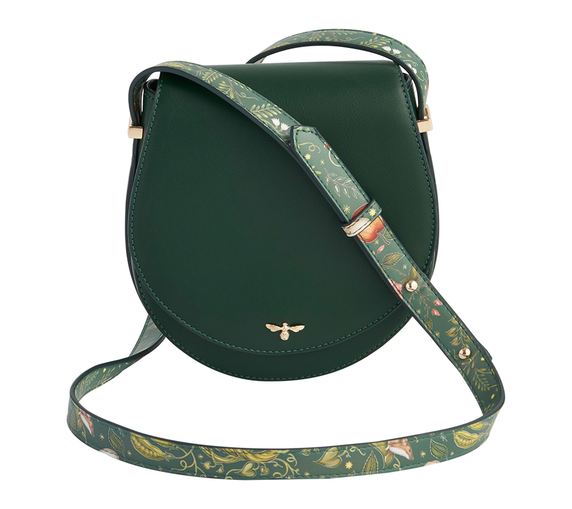 Step out for brunch or a casual weekend stroll with this charming crossbody saddle bag, inspired by classic equestrian style and adorned with the enchanting Into the Woods print on its strap. The compact satchel silhouette keeps your essentials organized in a zip pocket, while the adjustable single strap lends hands-free comfort wherever your adventures take you. From Fable England.