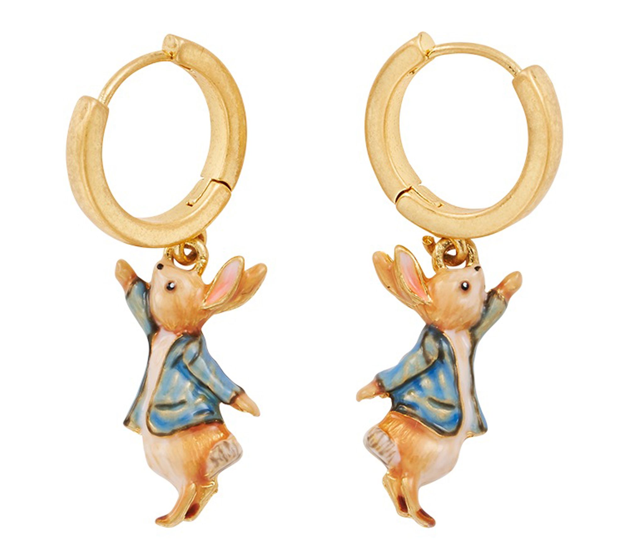 Bring a whimsical charm to your look with these Peter Rabbit huggie hoop earrings. Featuring playful enamel Peter Rabbit charms suspended from goldtone hoops, they add a delightful accent to casual days or special occasions alike. From Fable England.