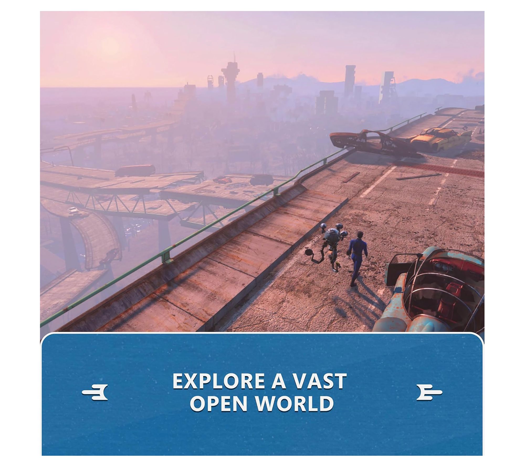 In Fallout 4 Anniversary Edition, venture into a post-nuclear world where every decision shapes your fate with this video game. Revisit familiar wastelands, unravel new adventures, and customize your journey with a host of expansions, unique gear, and creative possibilities for endless exploration. From Bethesda.