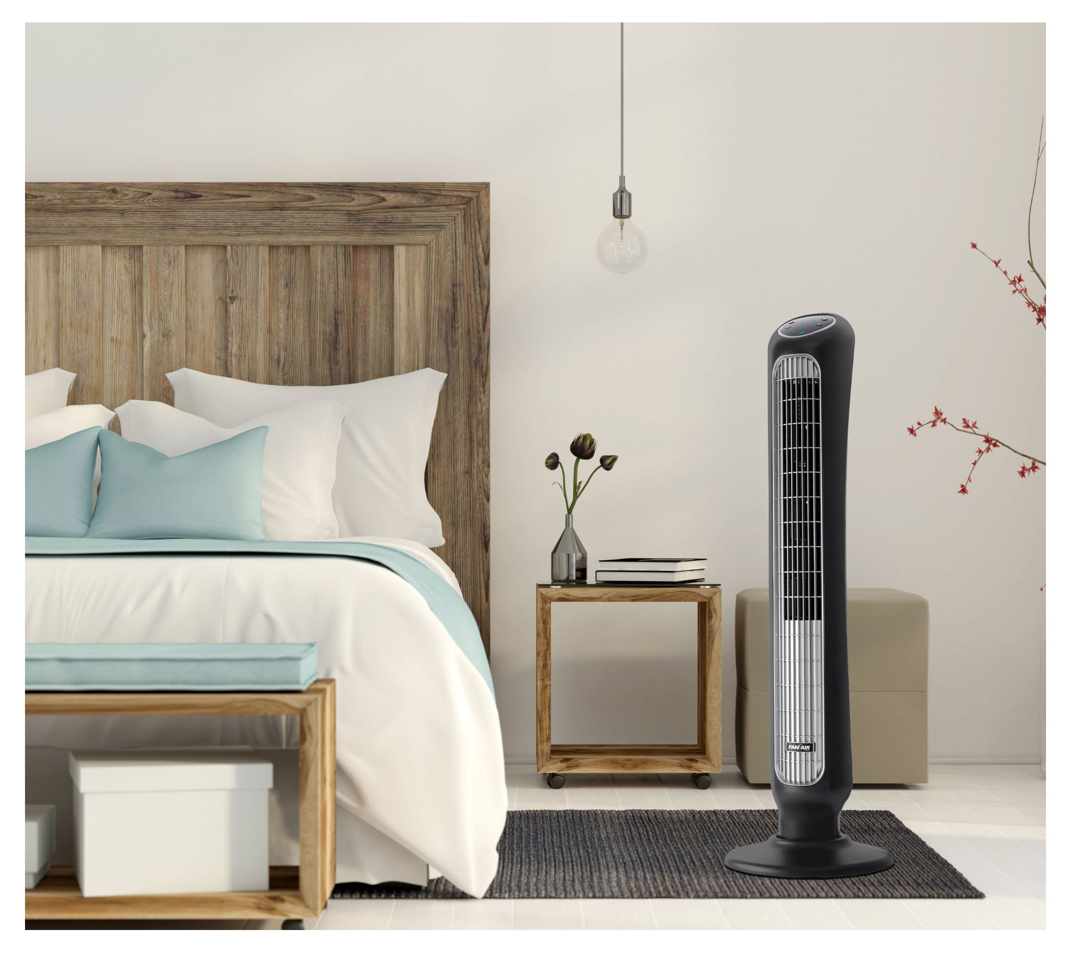 Stay cool and comfortable with the FanFair 43" tower fan. This sleek and high-end design features digital controls and a display, making it easy to adjust the settings. With five quiet cooling speeds, an eight-hour timer, and a remote control, you can enjoy a customized breeze anywhere in your home. From FanFair.