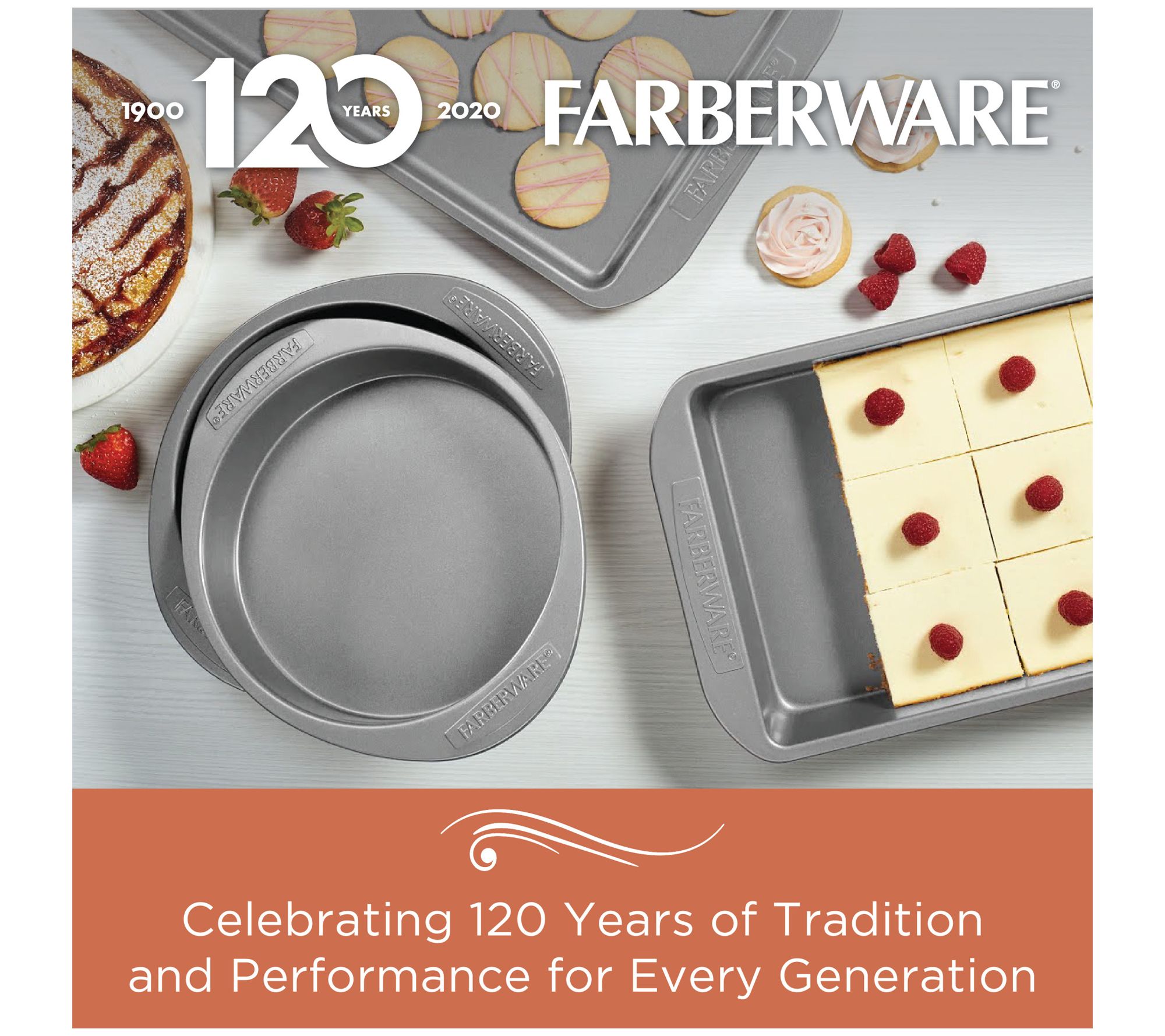 Bake angel-food cake and roast up veggies with fuss-free flair courtesy of this bakeware set featuring nonstick interiors. The heavy-duty steel construction is designed to resist warping for lasting quality and even heating. From Farberware.