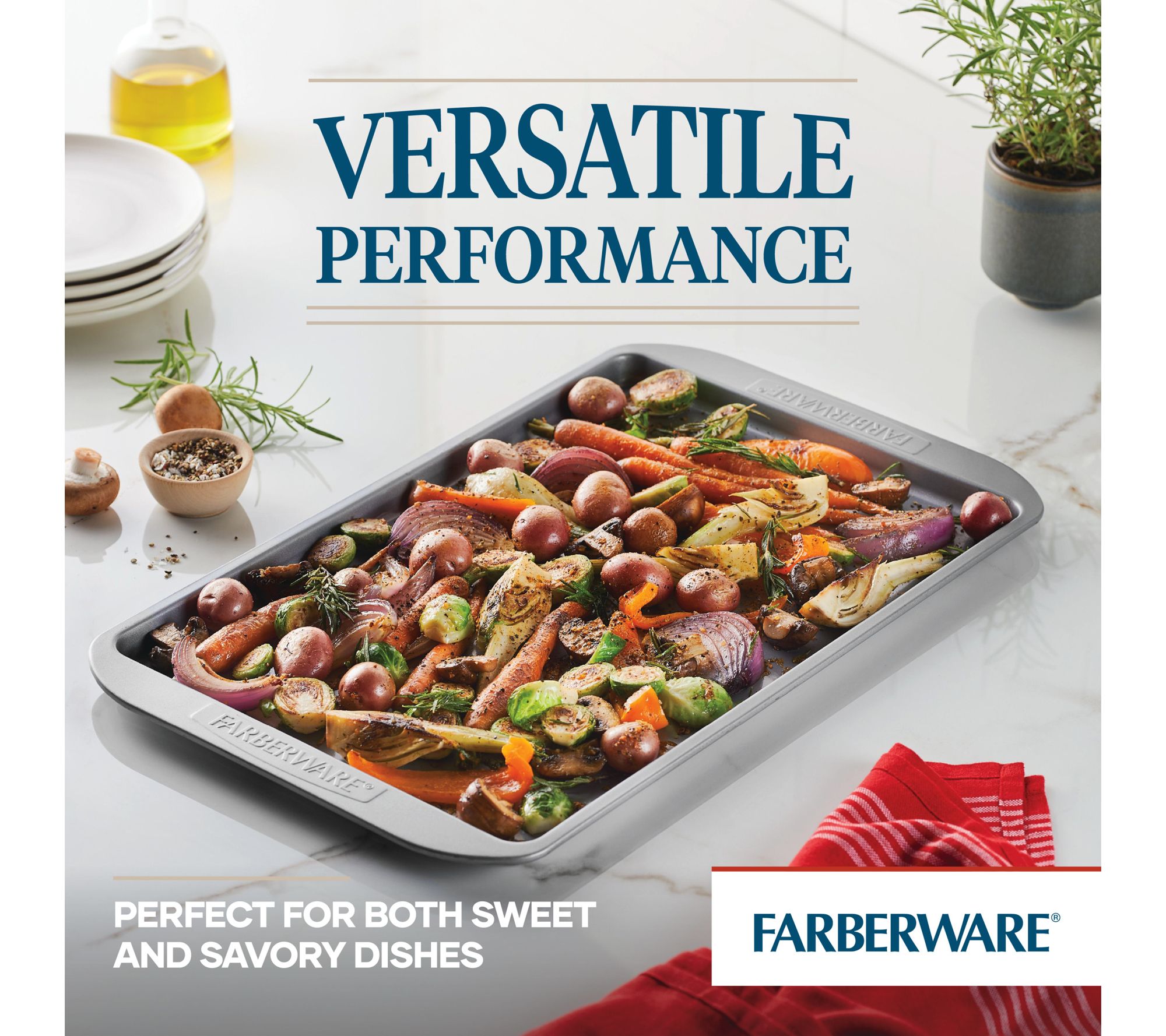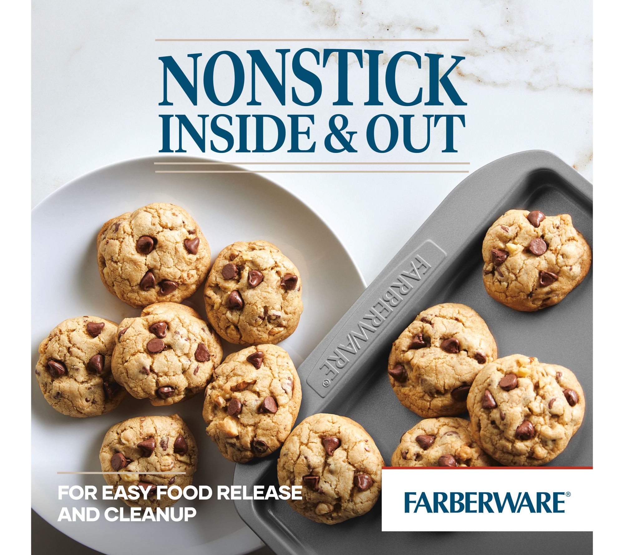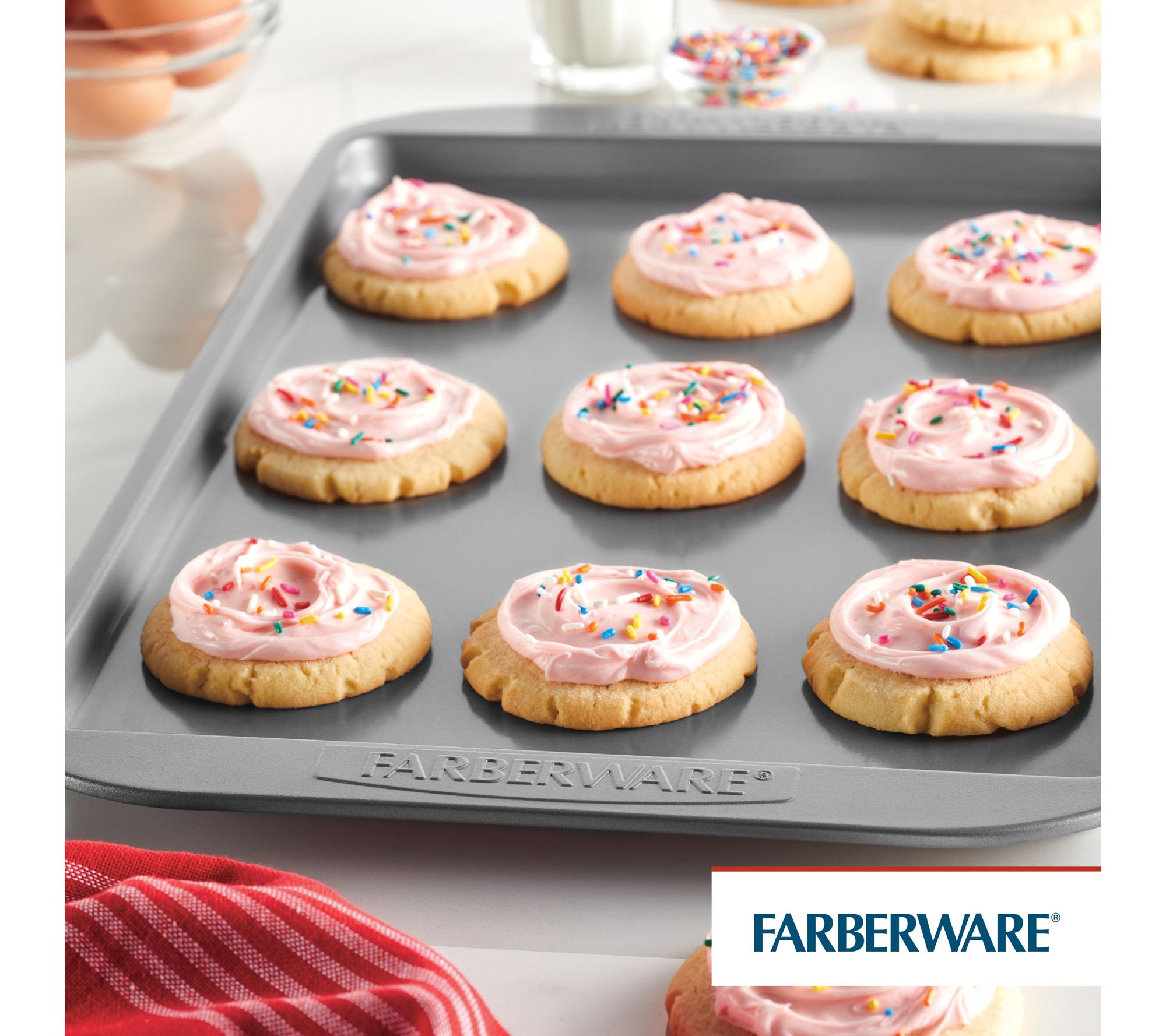 Sharing your favorite cookies with friends and family is a treat with the Farberware Bakeware Nonstick Cookie Pan. Its roomy surface accommodates multiple batches, making your baking tasks more efficient. Crafted for durability with heavy-duty construction, it resists warping and ensures even heating for perfectly browned results. From Farberware.