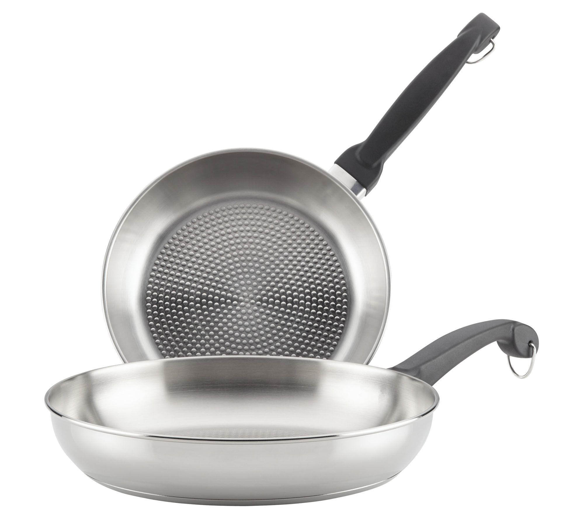 Cook with a pair of classics--these two versatile stainless steel skillets. Sear, brown, and saute with ease, then take the night off from cleaning and just place them in the dishwasher. From Farberware.