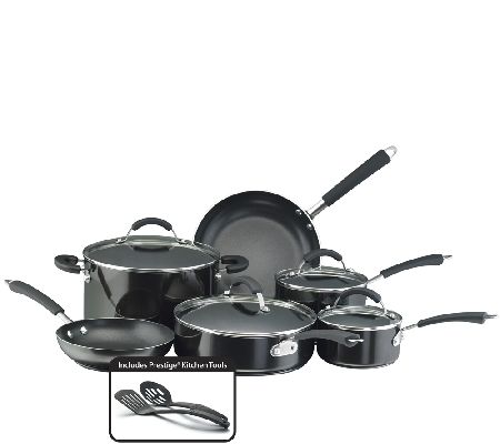 • Includes 1-qt covered saucepan, 1.5 qt covered saucepan, 2-qt covered saucepan, 8-qt covered stockpot, 8" open skillet, 10" open skillet, Prestige slotted spoon, and Prestige slotted turner