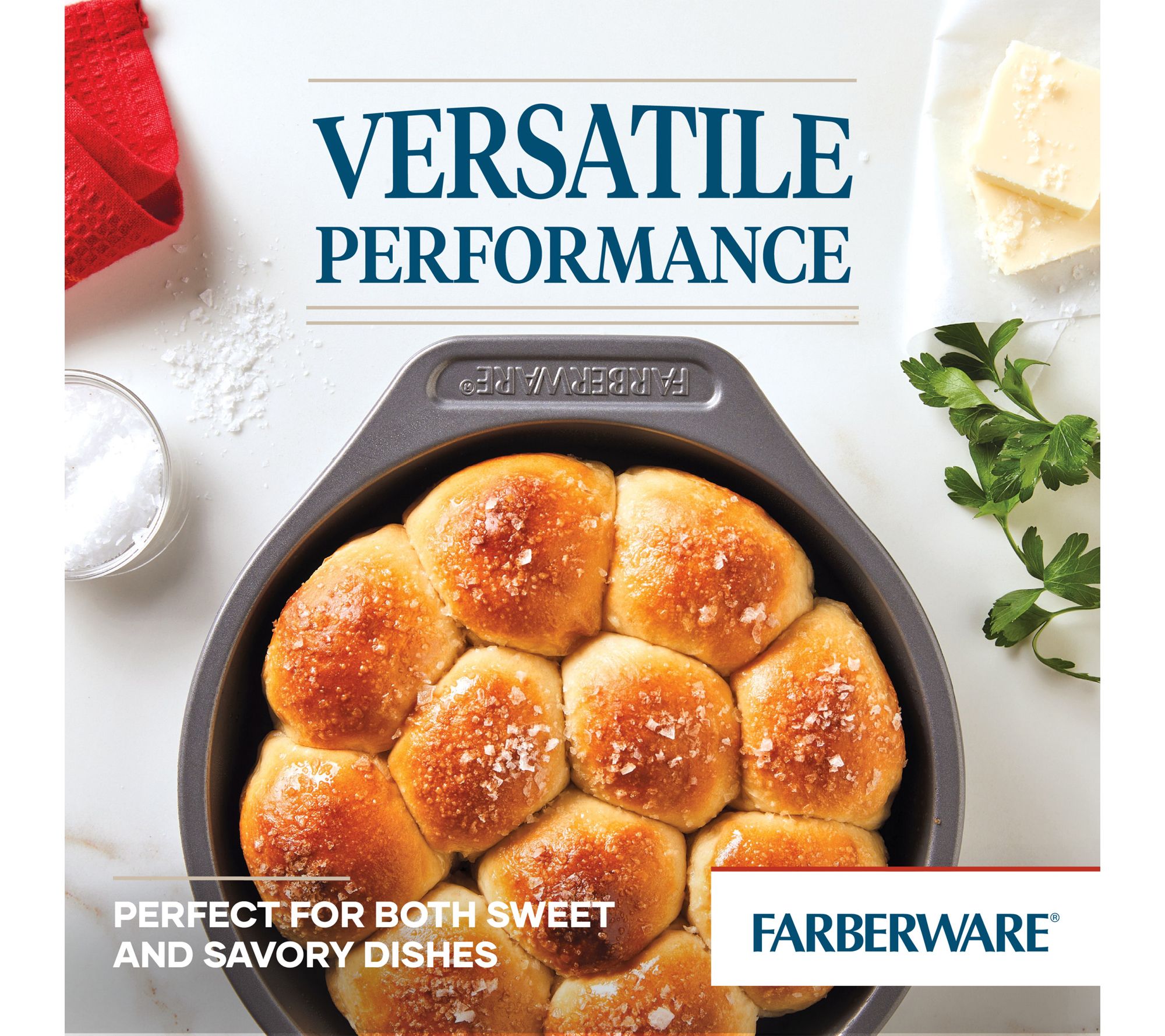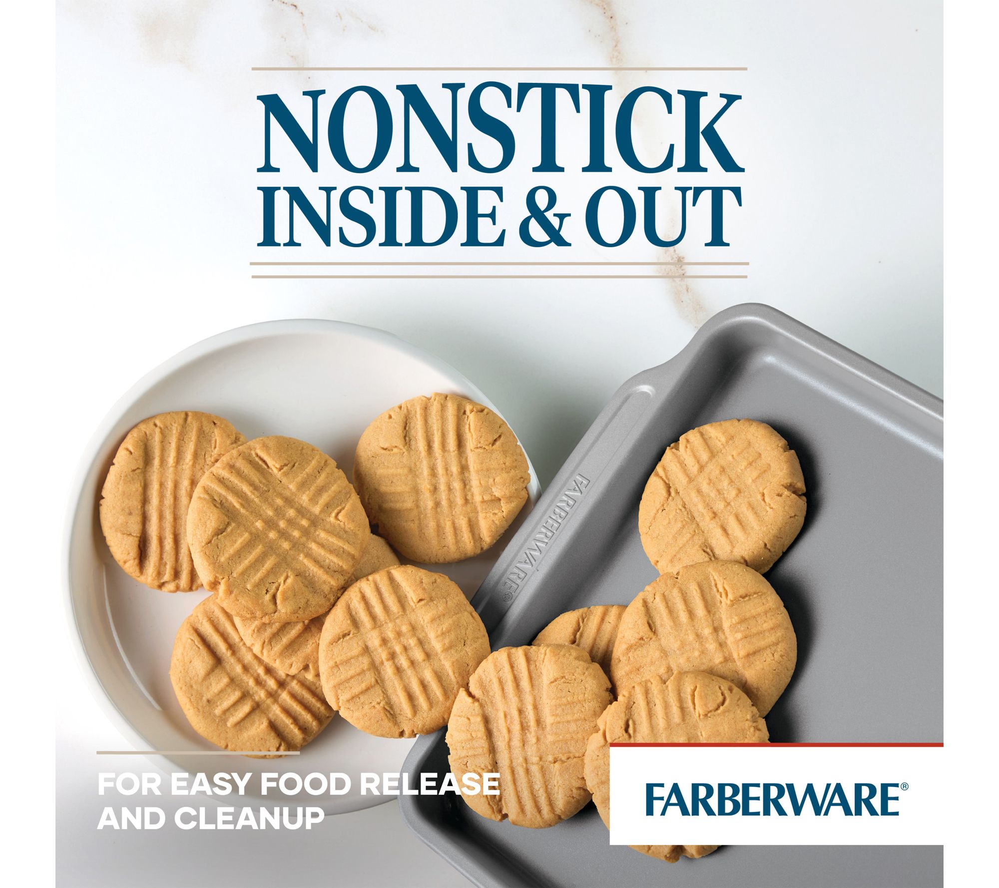 Whether you're whipping up morning muffins, baking a birthday cake, or roasting veggies for dinner, this nonstick bakeware set brings versatility and ease to every recipe. With an array of essential pans and effortless food release, it's ready to handle everything from family favorites to creative new treats. From Farberware.