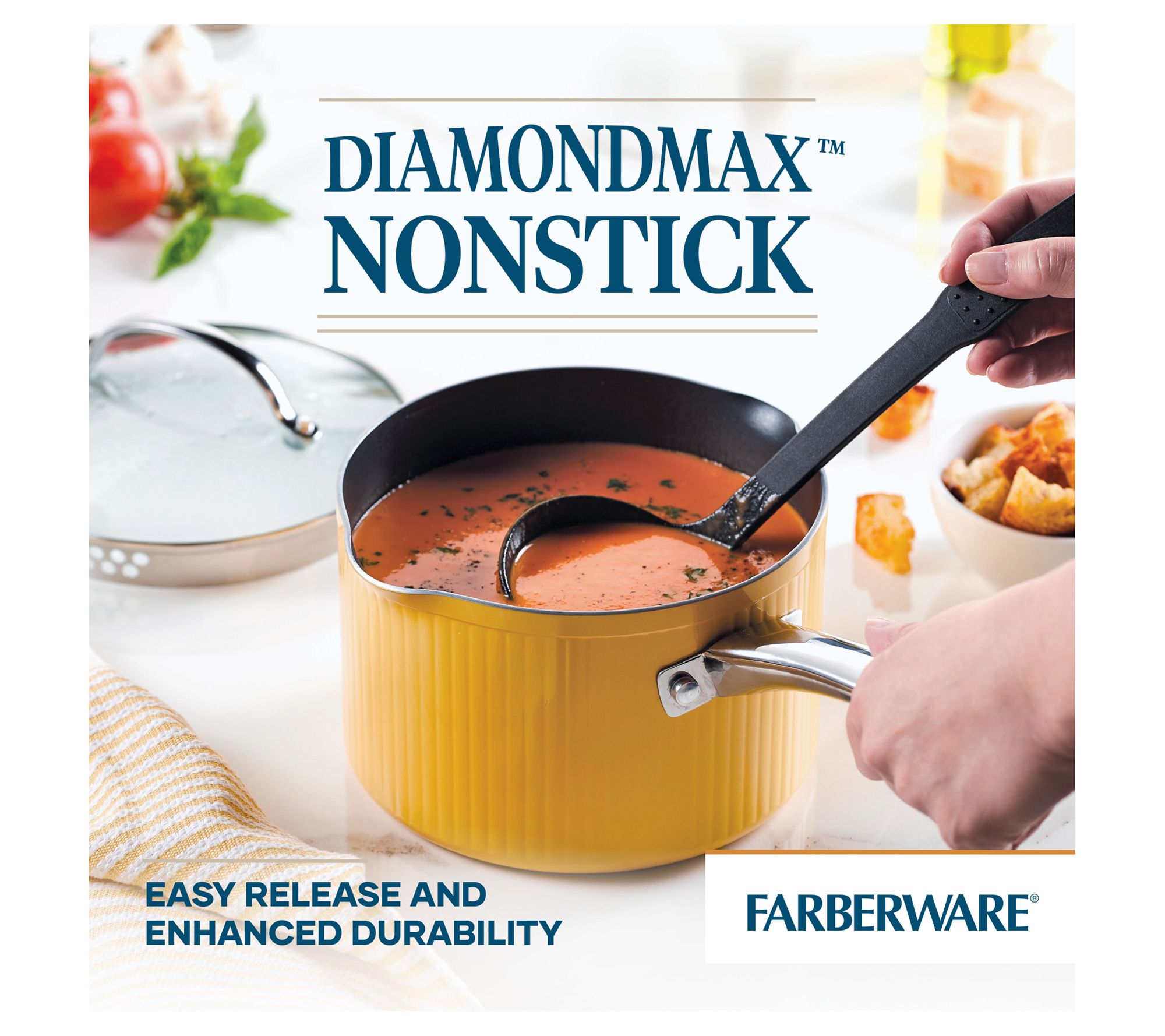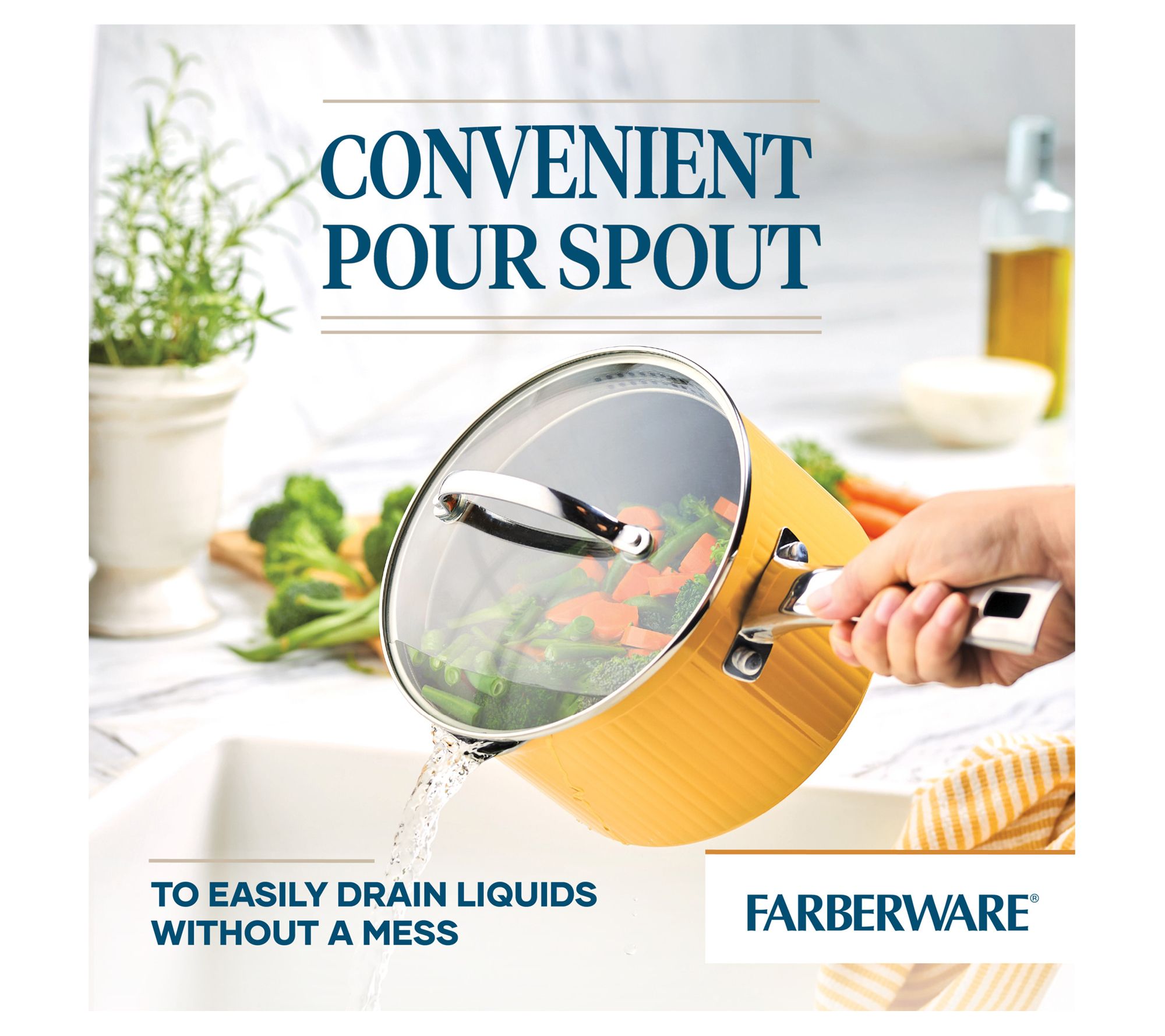 Whip up your favorite dishes effortlessly with the flexible design of this saucepan boasting a handy colander lid and a ergonomic handle for convenient operation. From Farberware.