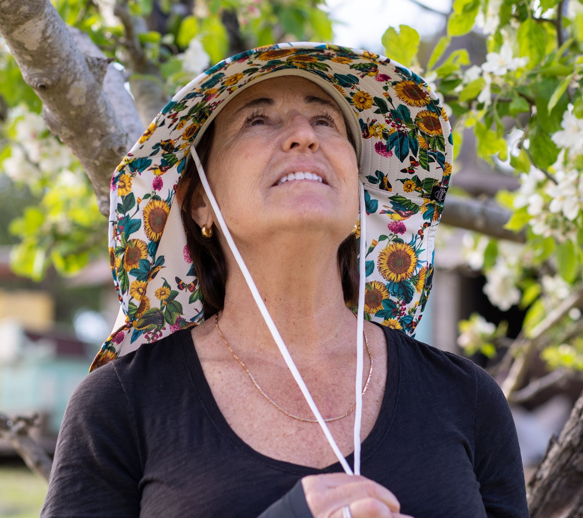 Spend more time enjoying the outdoors with the Farmer's Defense protective gardening hat. Its wide brim and neck flap provide extra coverage from the sun while the internal sweatband keeps you comfortable. From Farmer's Defense.