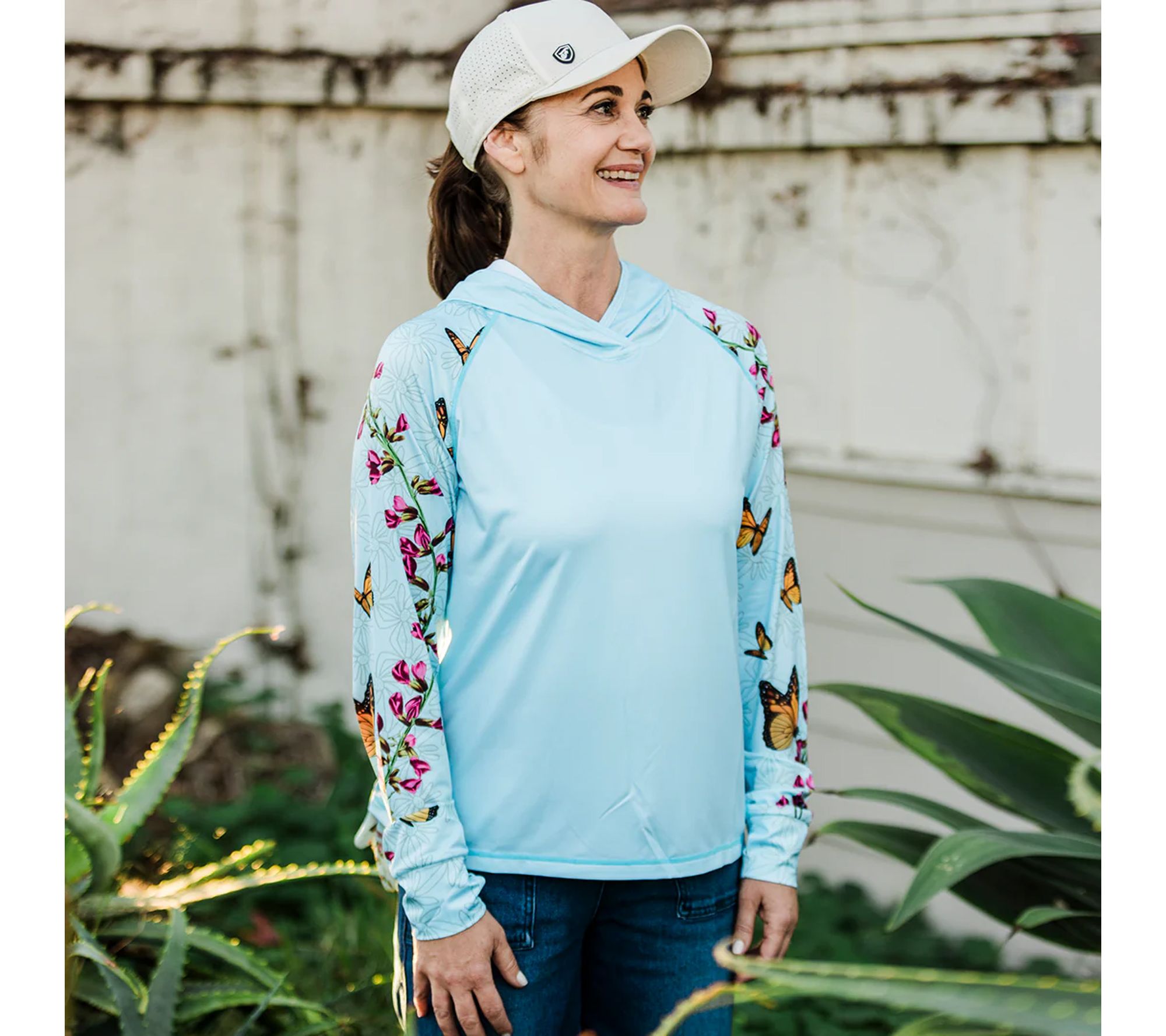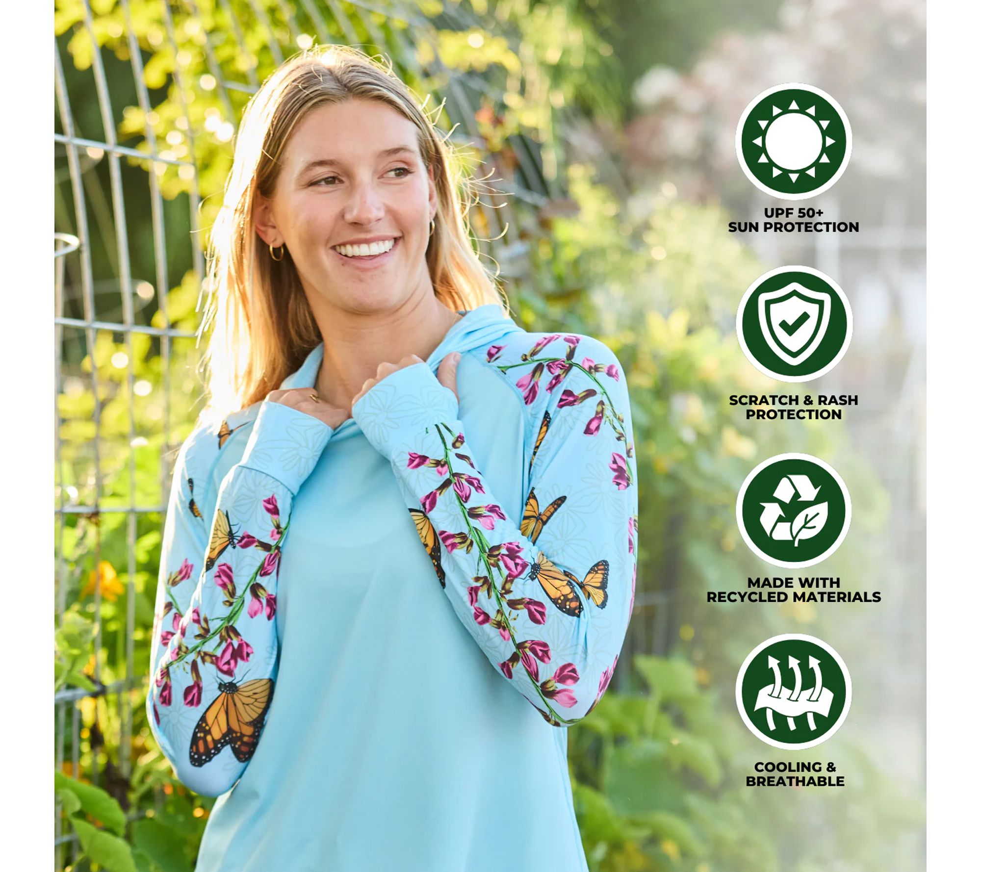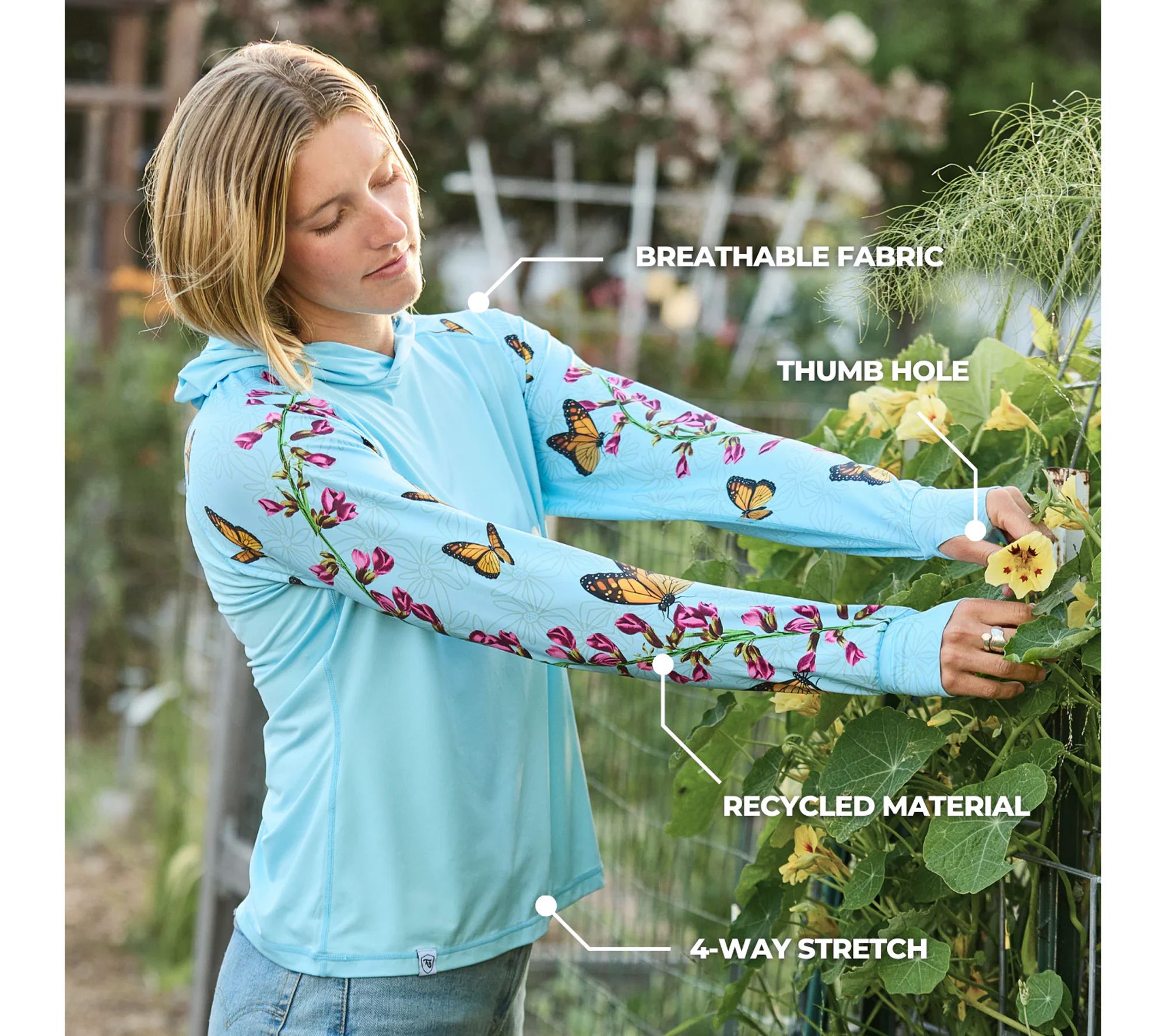 Whether you're tending your garden, casting a line, or playing a round of pickleball, this sun hoodie delivers comfortable coverage when you're enjoying the outdoors. From Farmer's Defense.