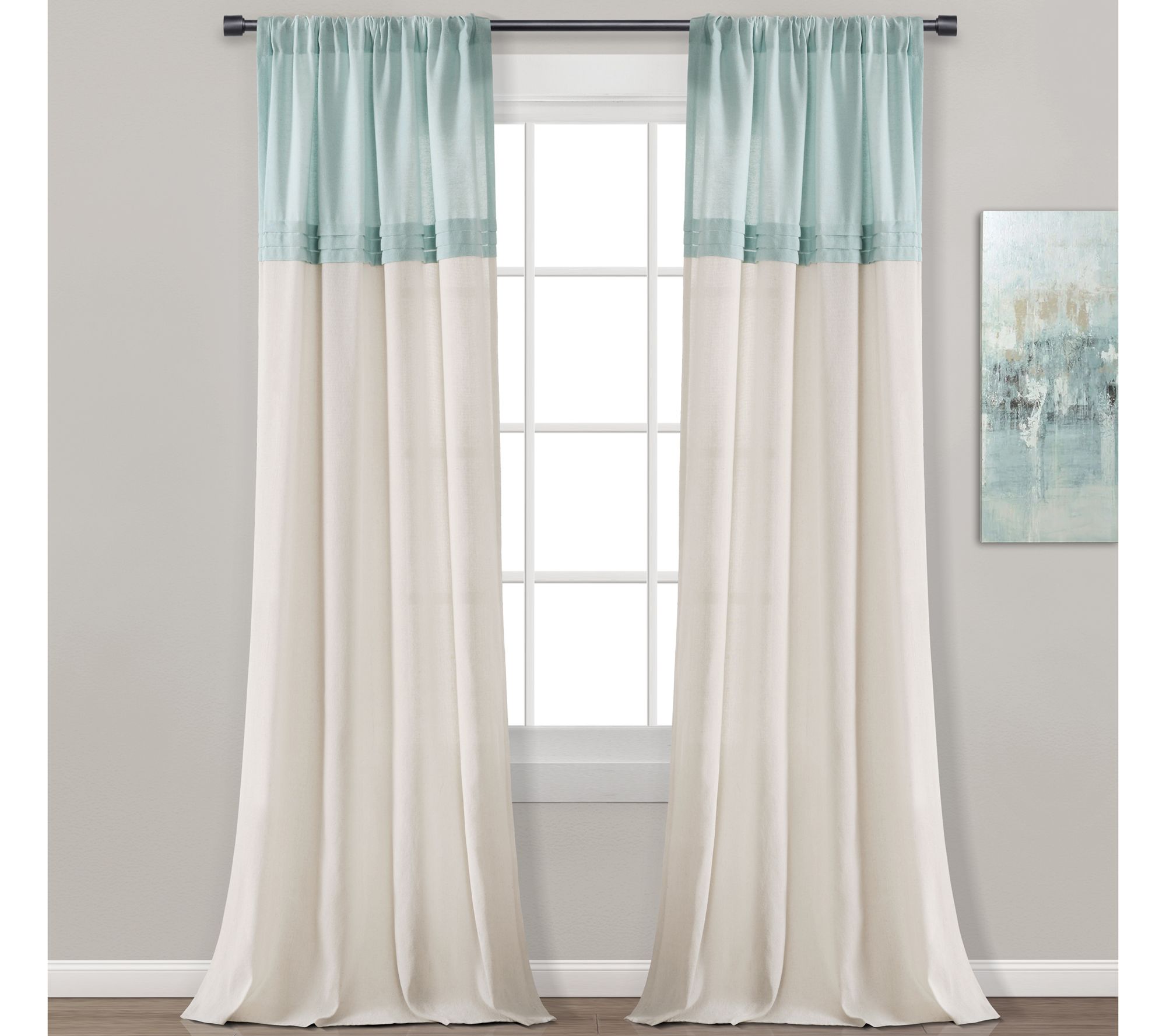 Give your room a graphical update with these two-tone curtain panels boasting precise pleats and a contemporary color blocked design. From Lush Decor.
