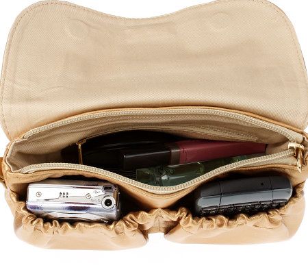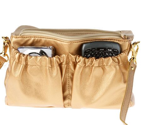 Ideal for vacations and day trips alike, this chic bag holds your cell phone and digital camera in outer pockets for quick, convenient access. It can also be used to hold other items you like to have close at hand. Two carrying options--on your shoulder or around your waist--add versatility to the design. From Lori Greiner.