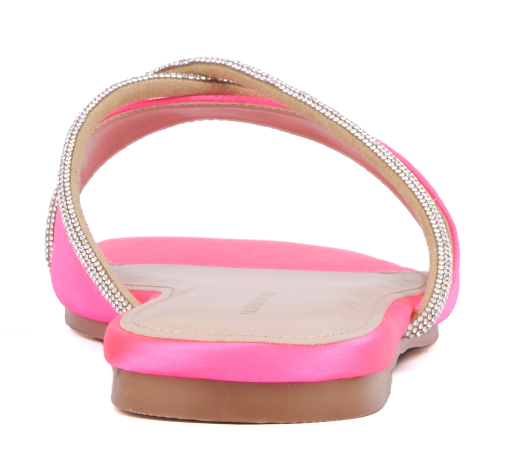 • Slip-on, embellished crisscross straps, slide silhouette, square toe