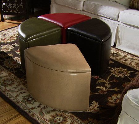 Faux Leather 1/4 Round Fold-Up Storage Ottoman by Valerie
