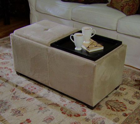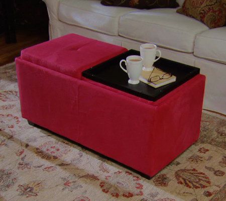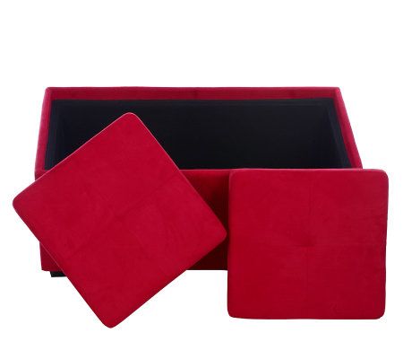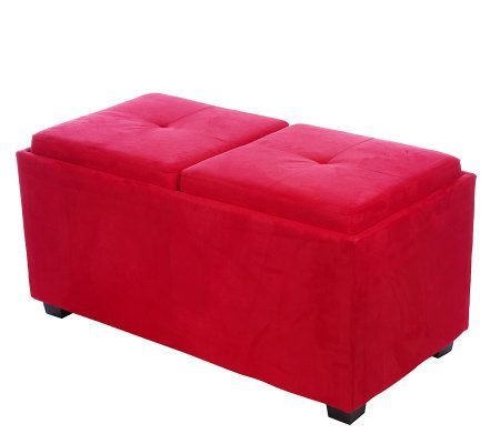 A seating and storage solution, all in one. A practical addition to any room, this classically styled faux suede bench offers separate, removable seats on top; take them off, and each reverses to become a handsome serving tray. Hidden beneath the trays is an ample storage area ideal for toys, blankets, video games, DVDs, and more. From the Valerie Parr Hill Collection.