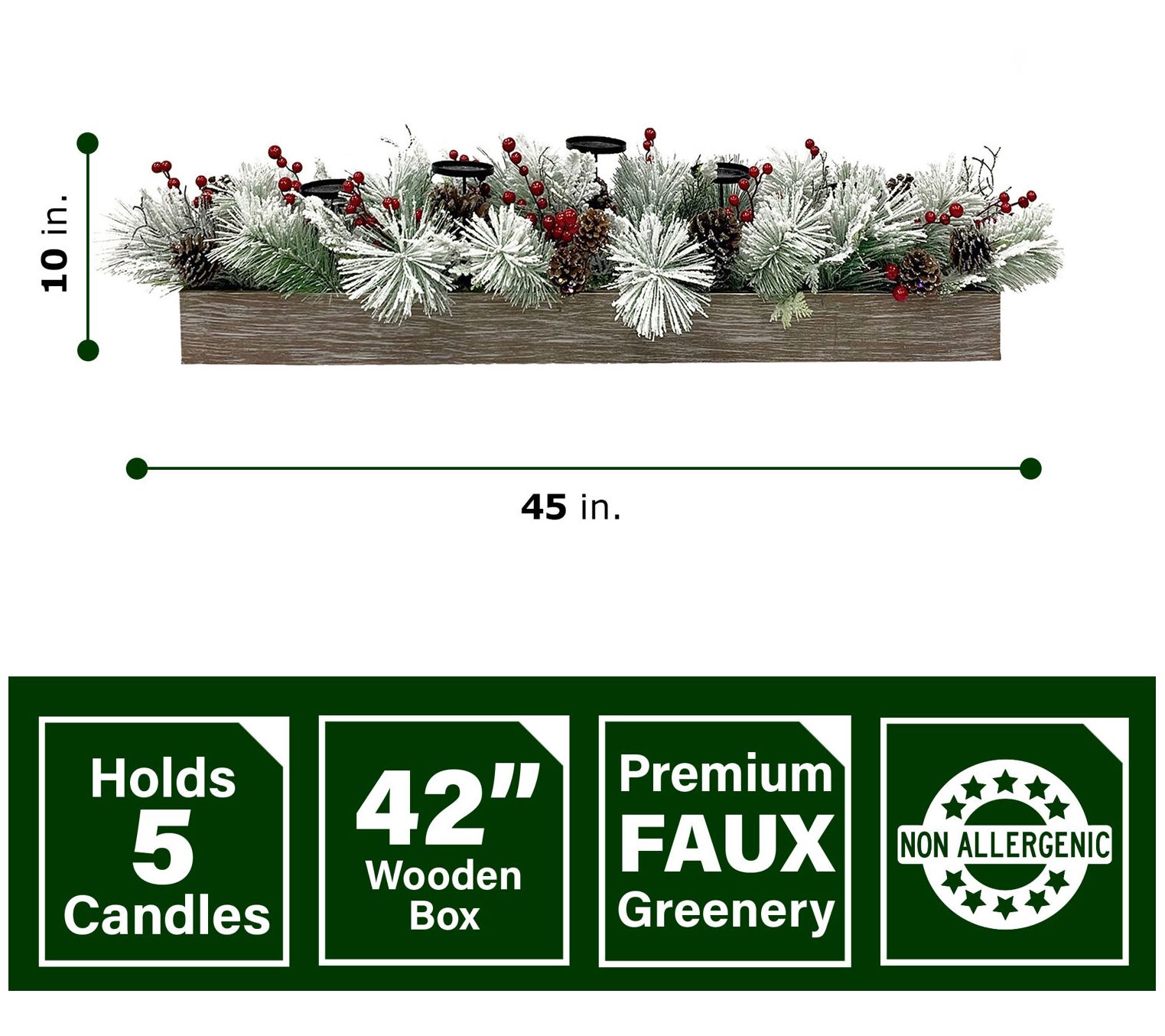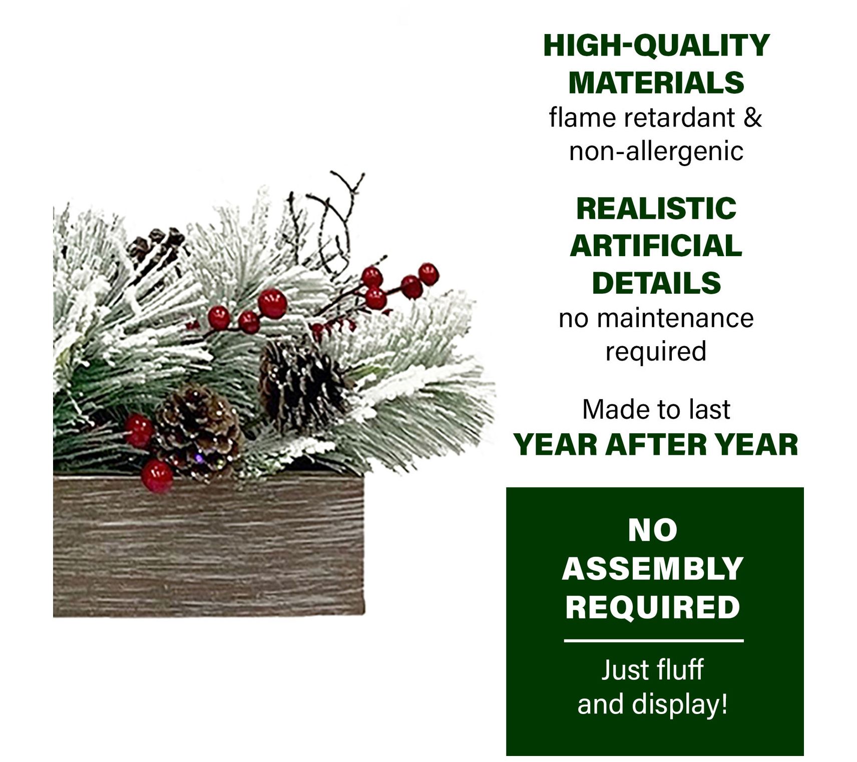• Includes centerpiece with artificial pine