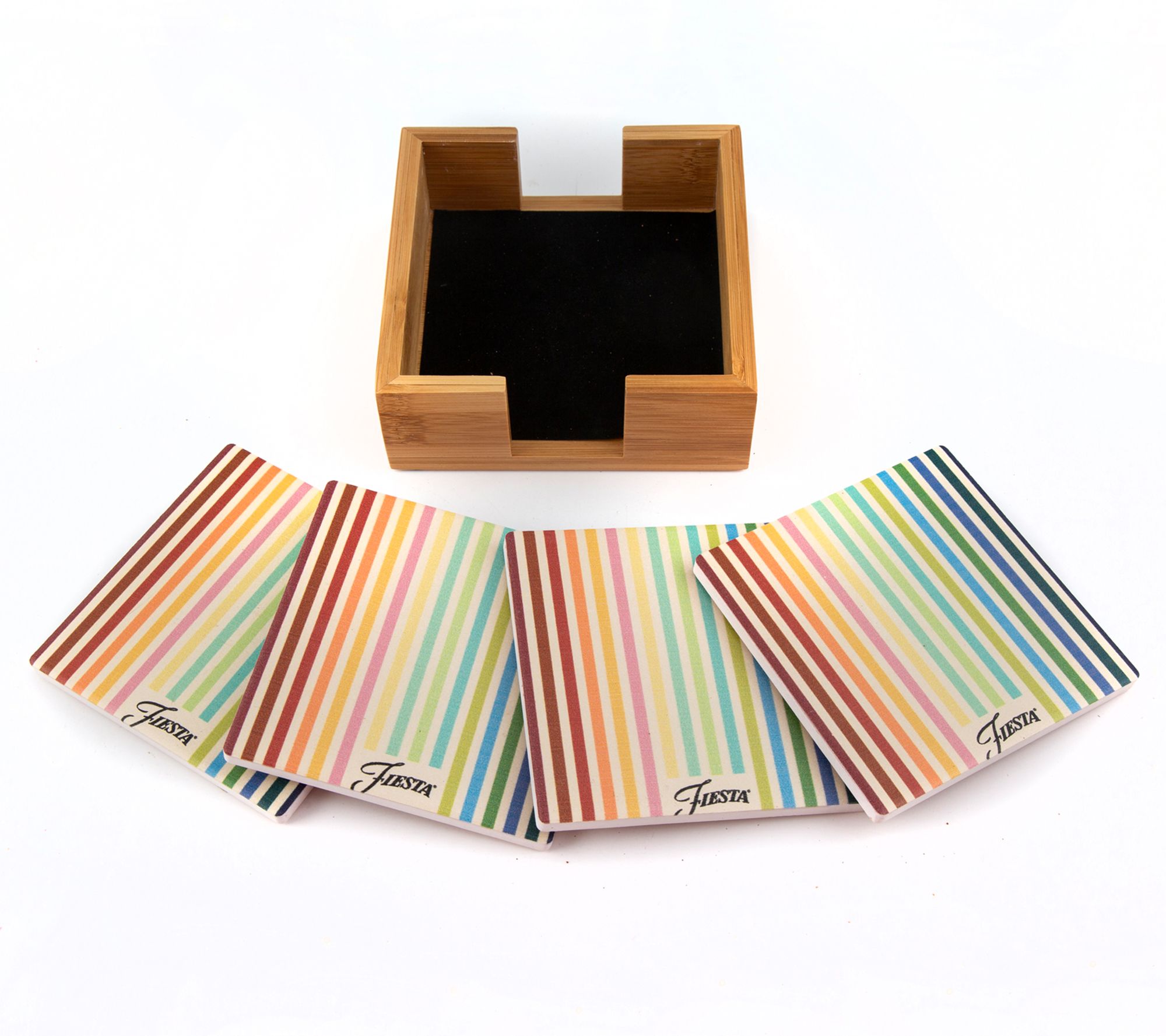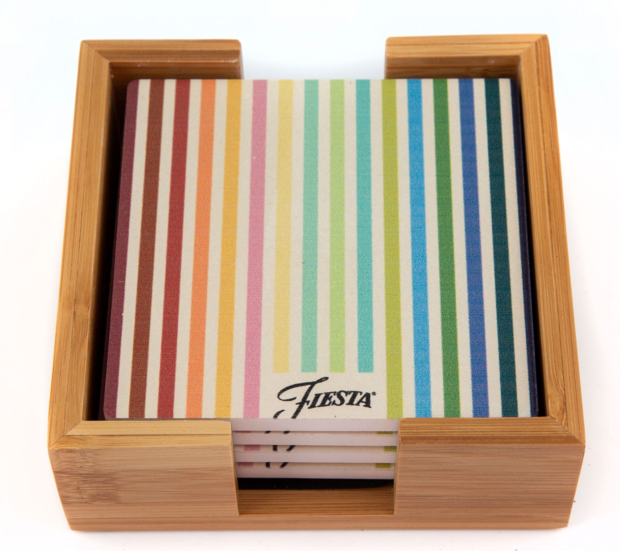 Fiesta Set of 4 Masquerade Stripe Coasters in Bamboo Holder