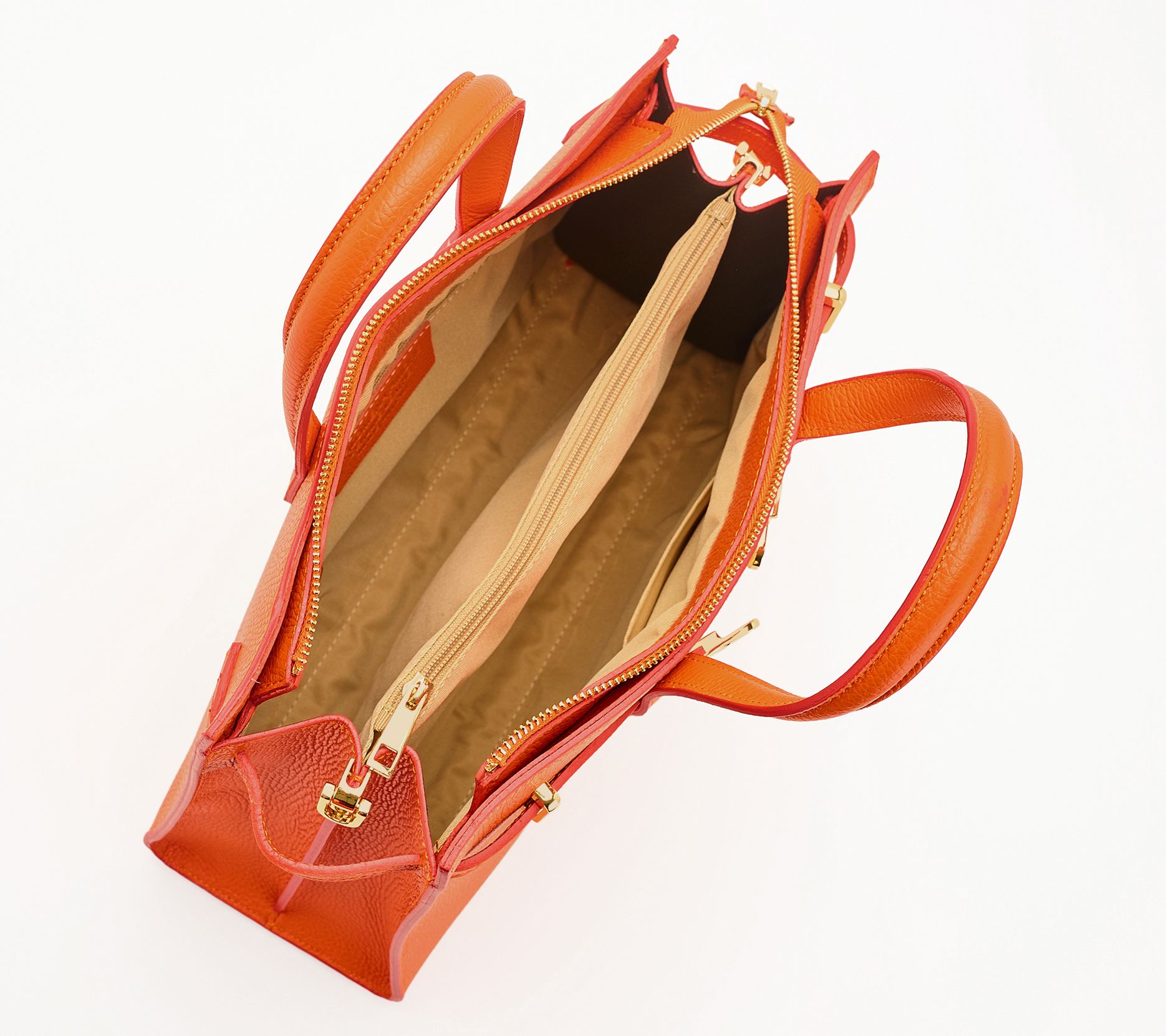 Lined interior, two compartments with large central zipper section, double interior pocket, zip pocket