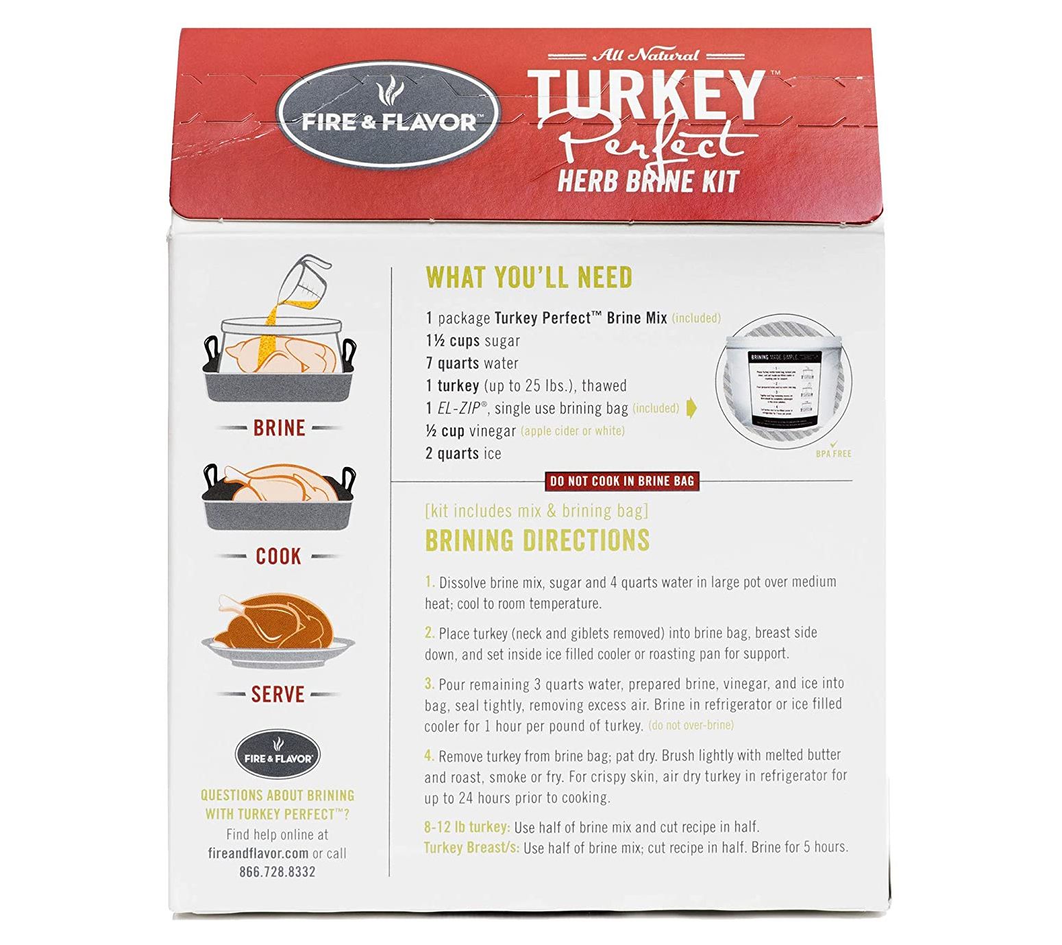 Infuse your turkey with herb flavor thanks to this Turkey Perfect brine kit. The brine solution includes rosemary, thyme, sage, and marjoram, making it easy to prepare a meal everyone will love! From Fire & Flavor.