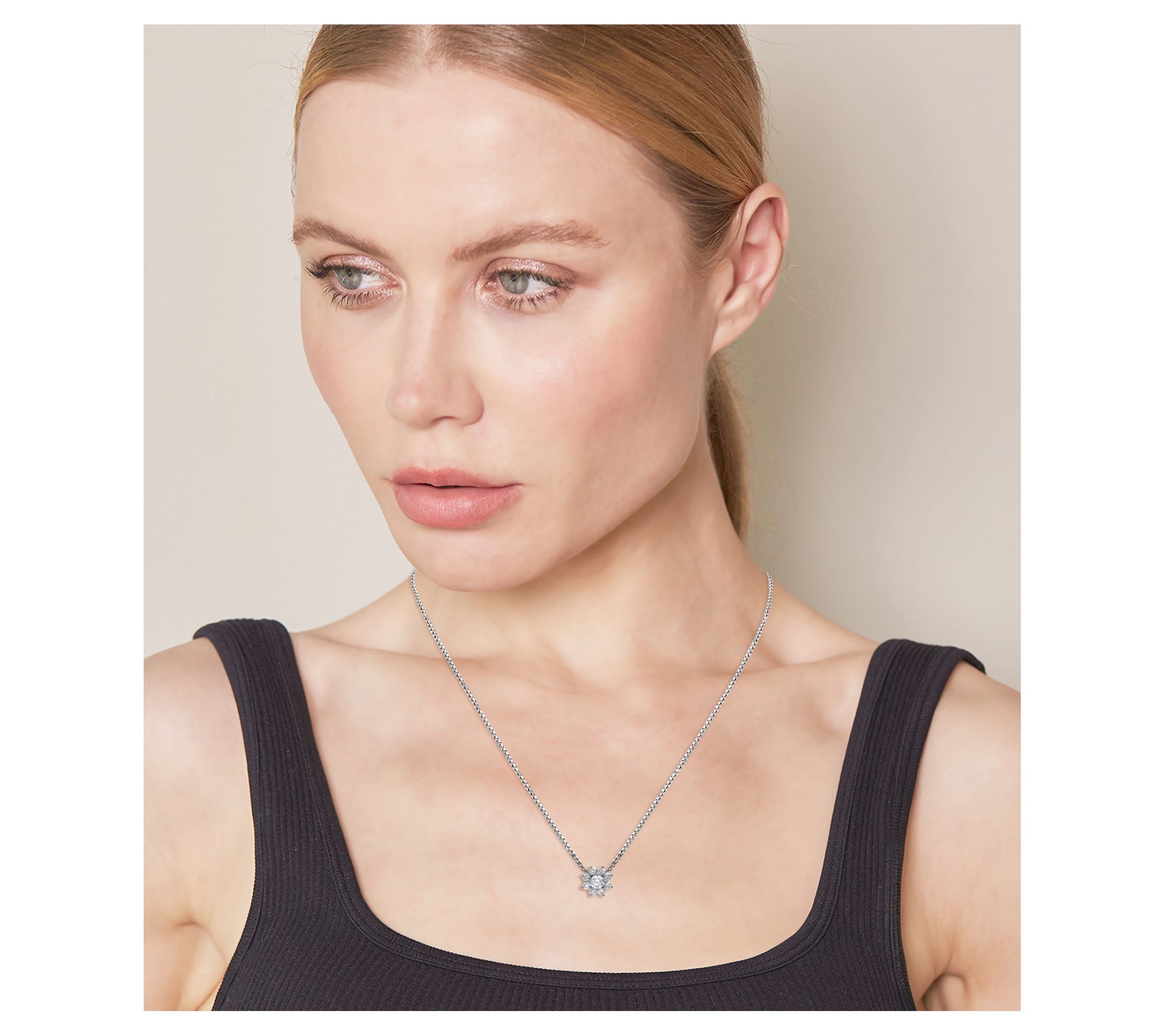 Showcase a subtle hint of glam with the eye-catching lab-grown diamonds that decorate this refined pendant suspended on a box chain. From Fire Light.