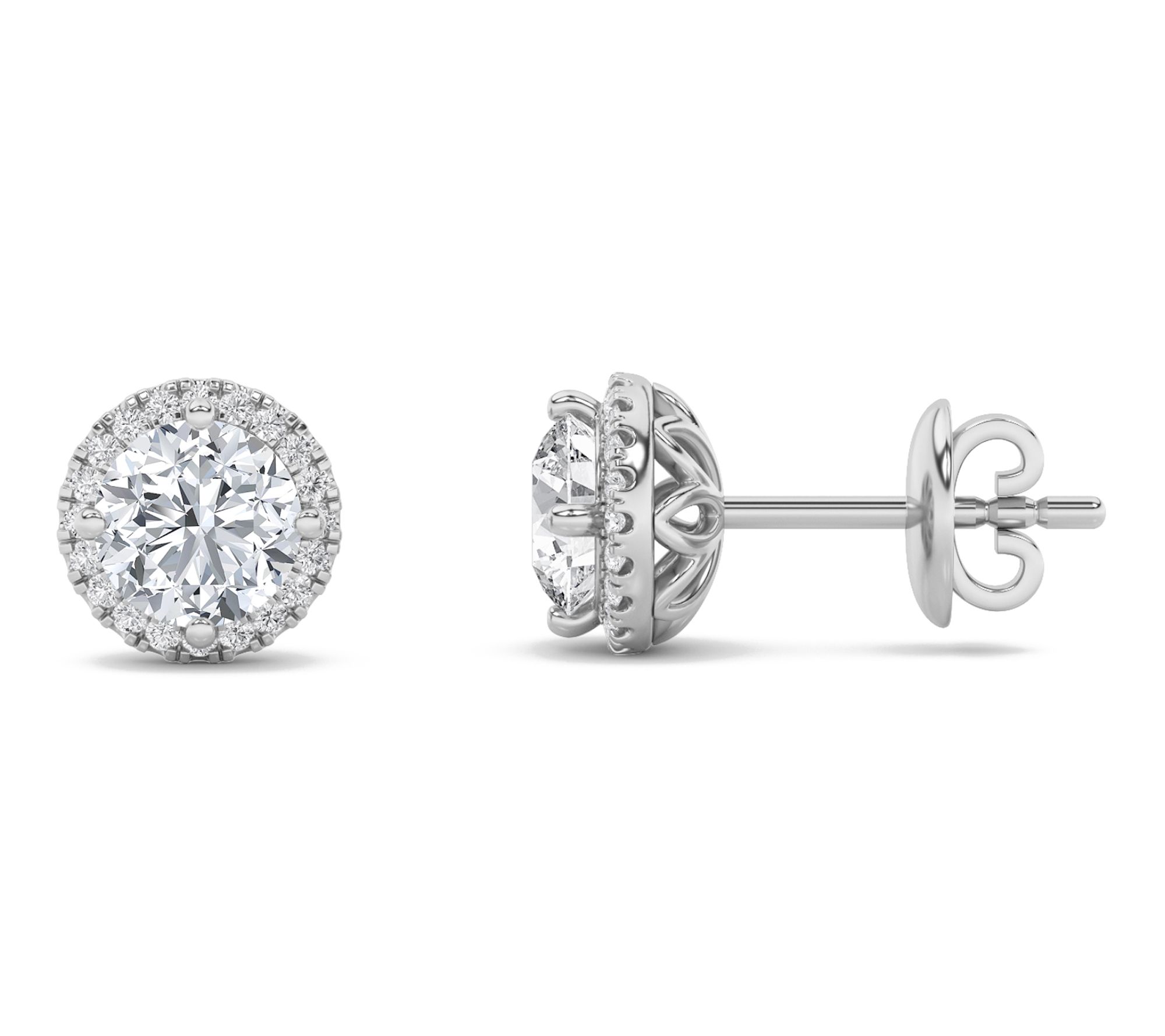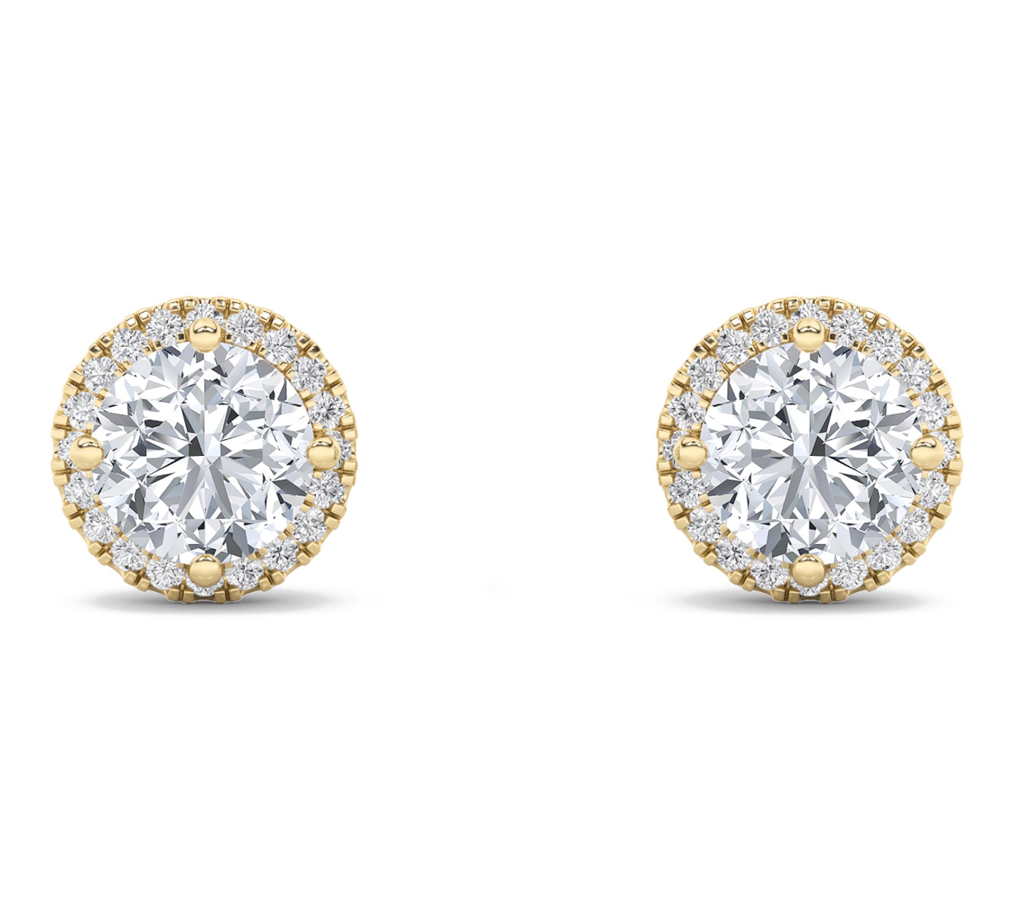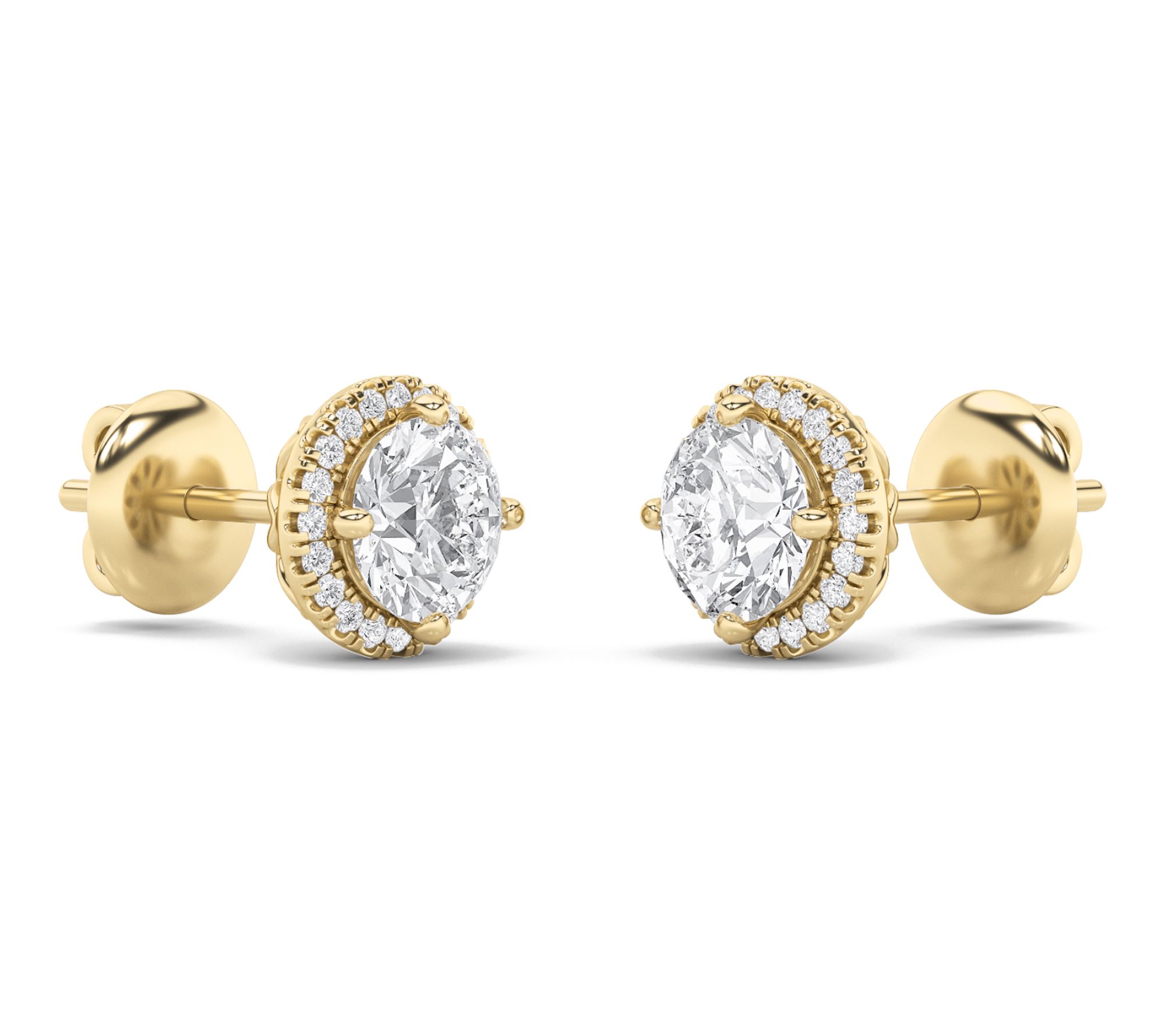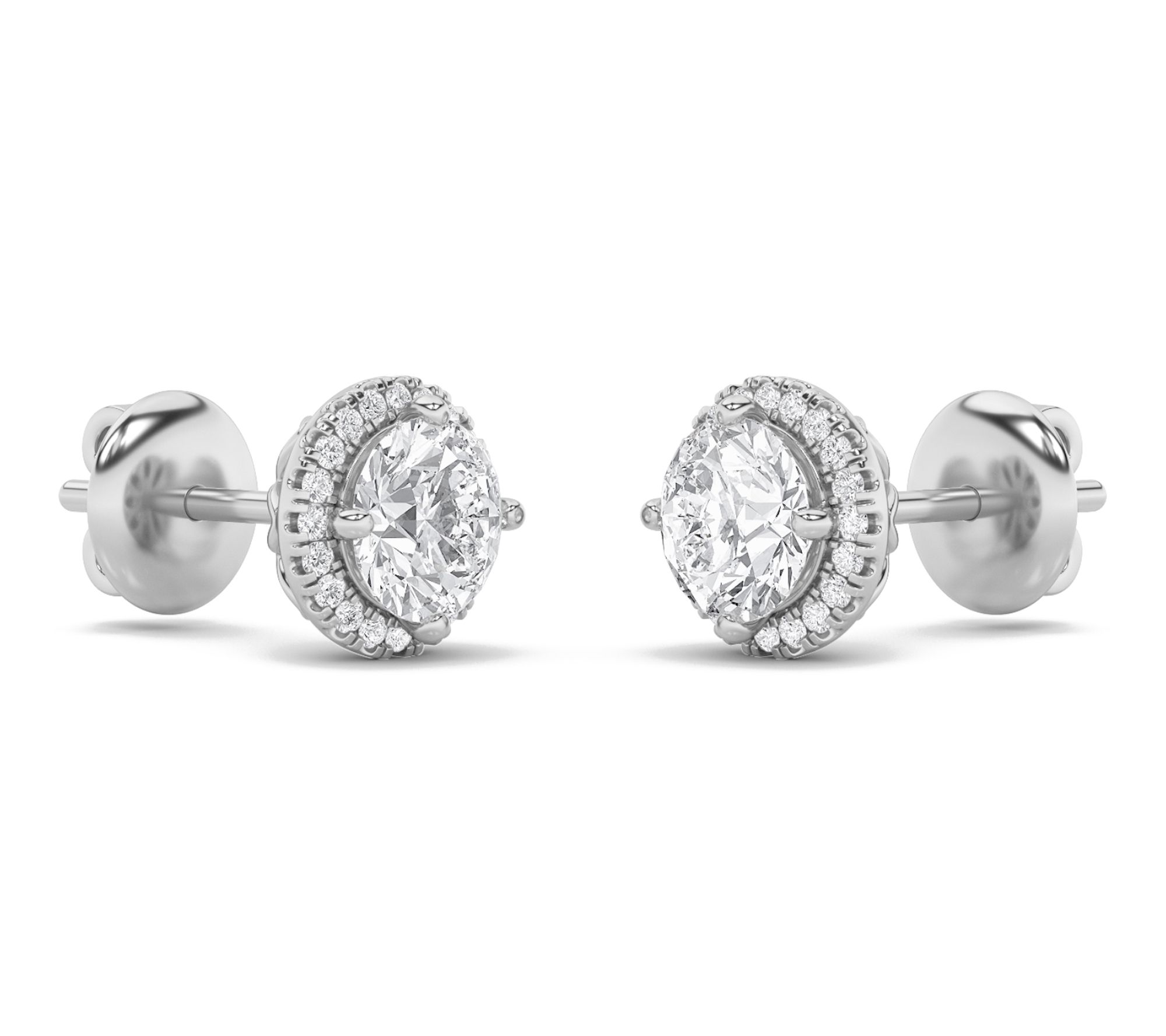 Round lab-grown diamond stud with lab-grown diamond halo; polished finish