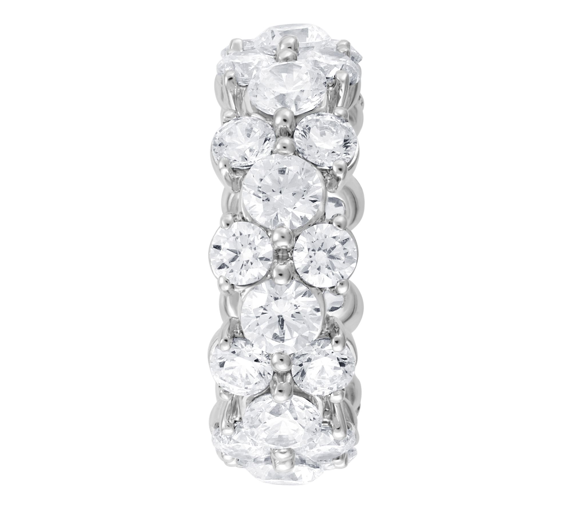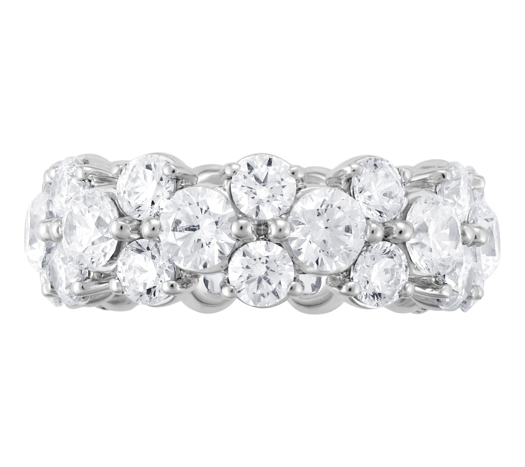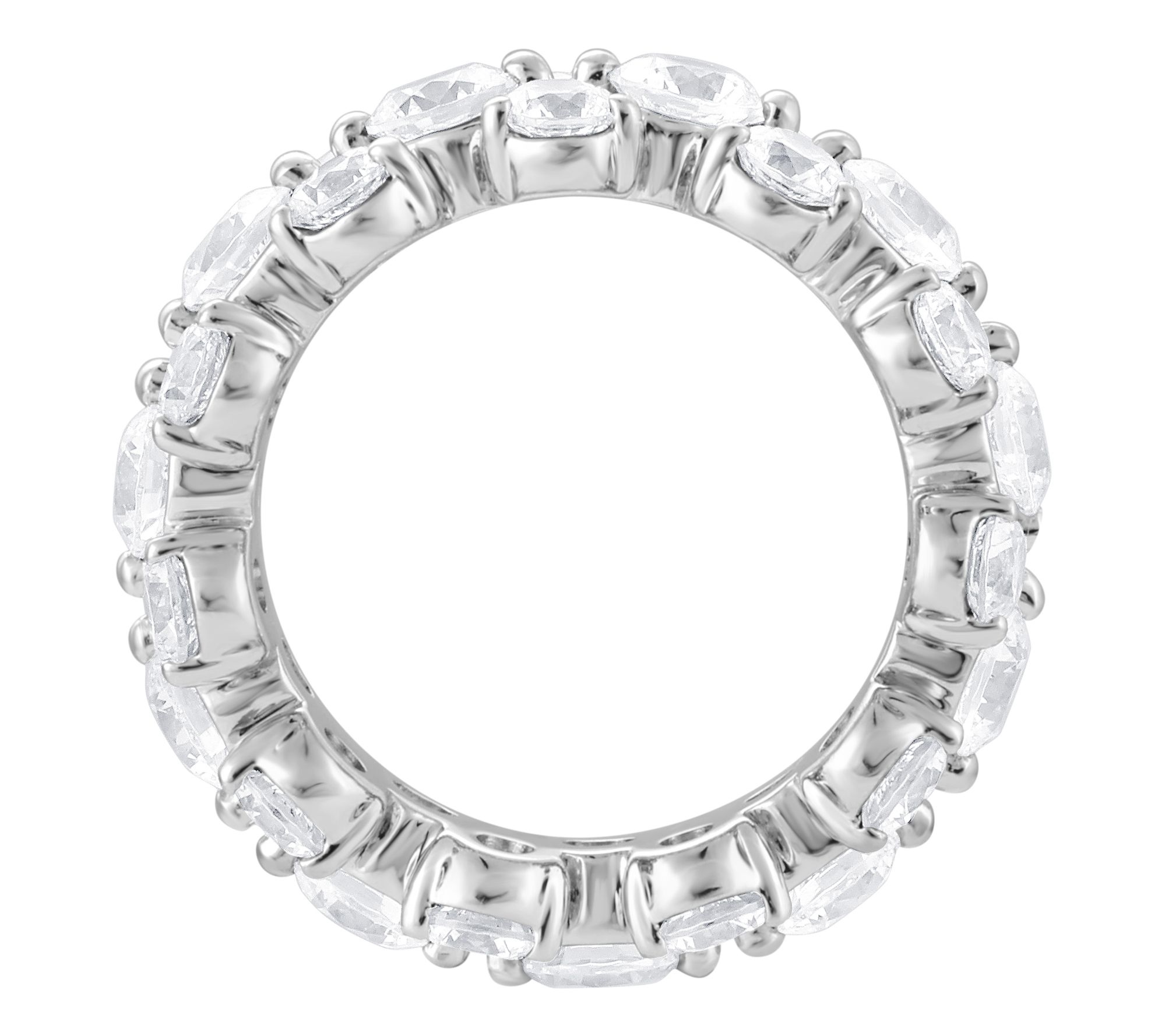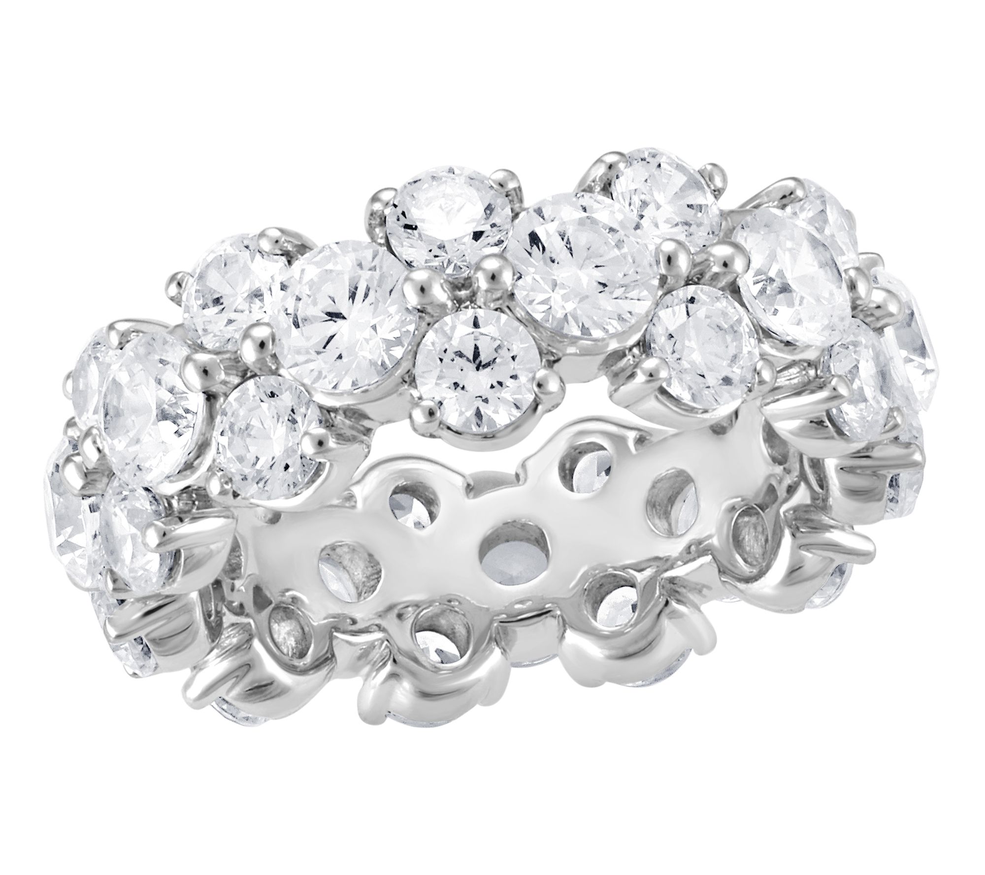 • Eternity design; round-cut, prong-set lab-grown diamonds; polished finish
