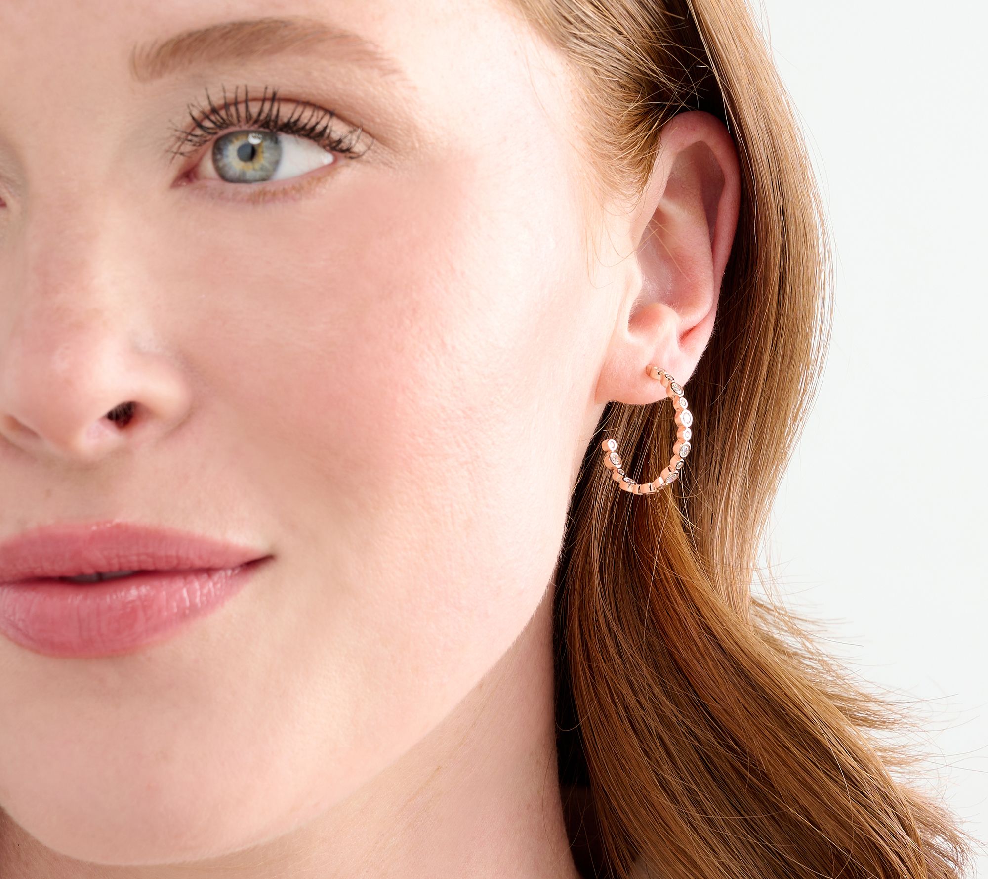 Your hoop dreams have been answered with these elevated earrings. The everyday style staple now does double duty as a special occasion accessory, thanks to a dazzling array of bezel-set lab-grown diamonds. From Fire Light Lab Grown Diamond Jewelry.