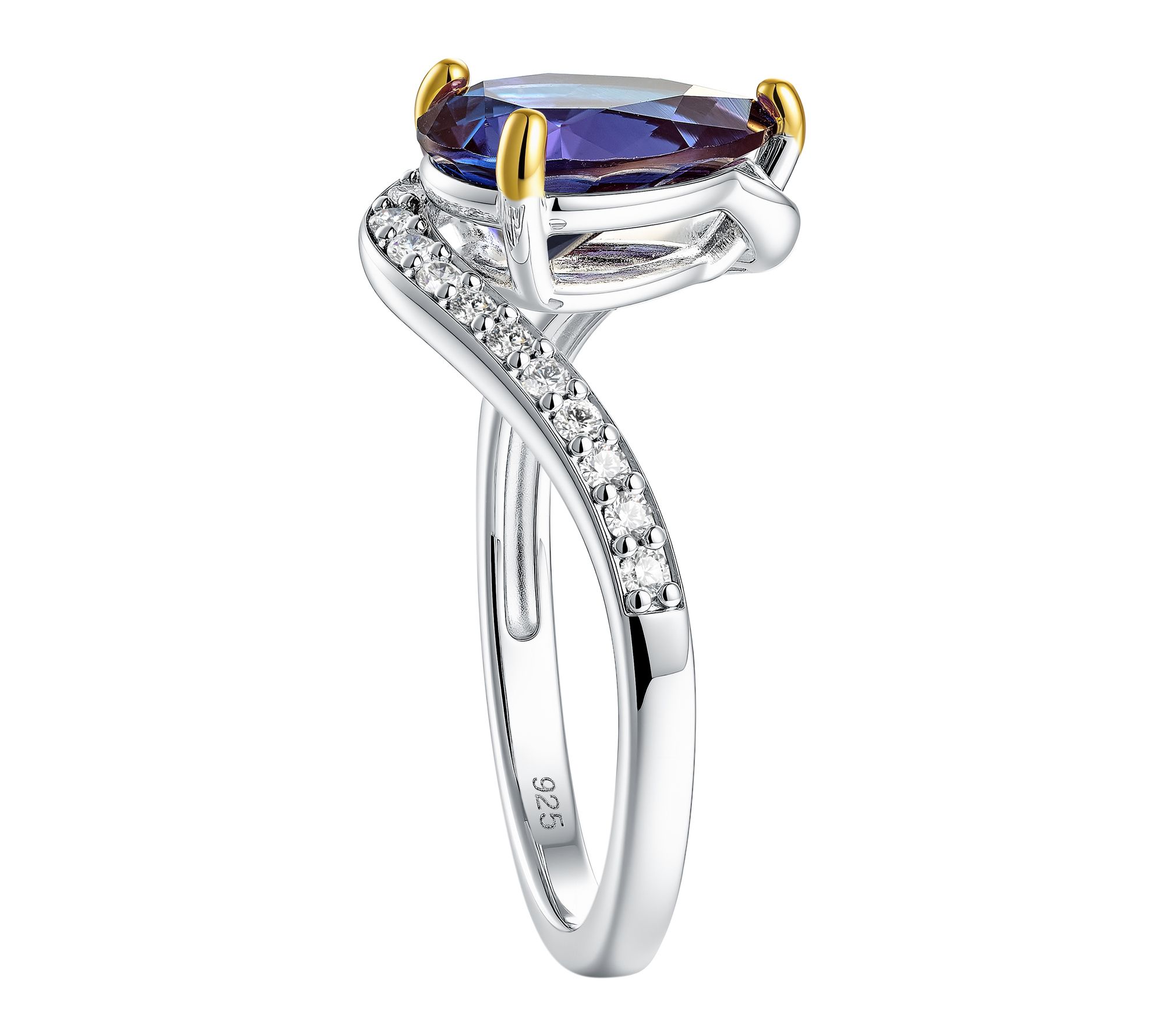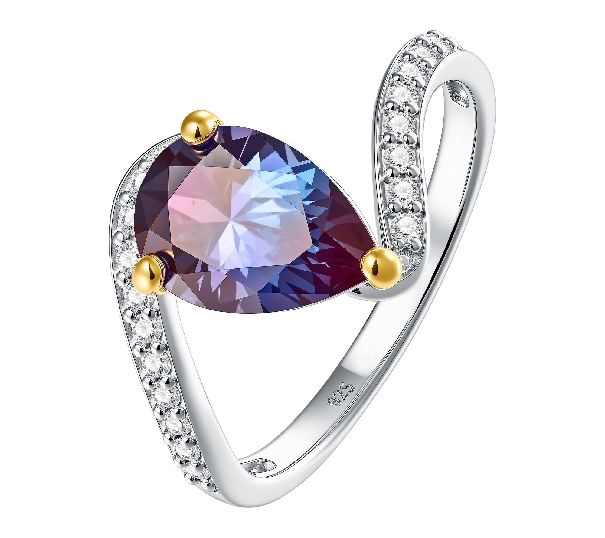 Add a touch of enchantment to your look with this pear-cut lab-grown alexandrite ring, where shifting hues meet the sparkle of lab-grown diamond accents. Whether you're dressing up for a celebration or making every day feel extraordinary, its rhodium-plated sterling silver and 14K goldtone prongs offer a modern twist on timeless elegance. From Fire Light Lab Grown Diamond Jewelry.