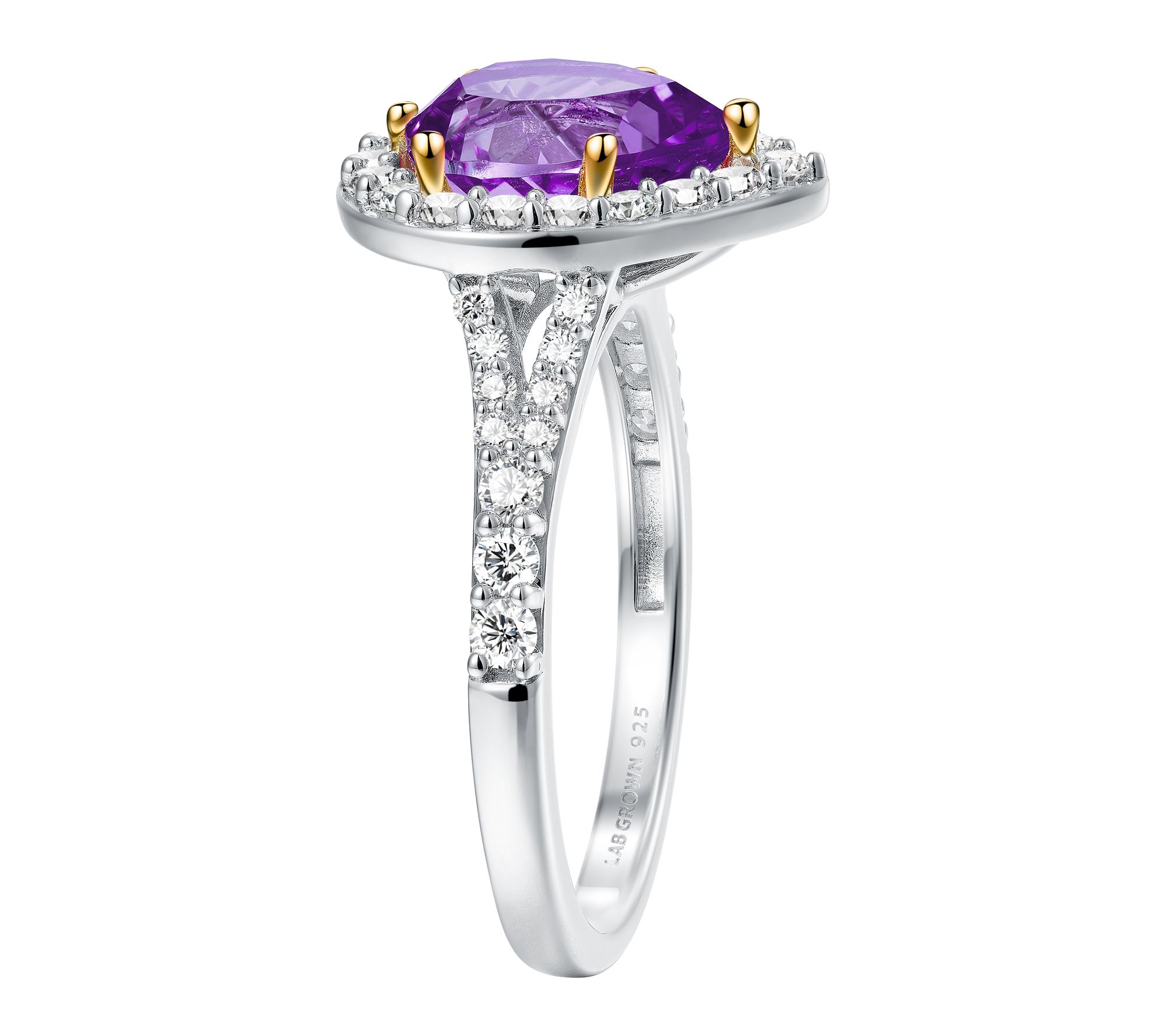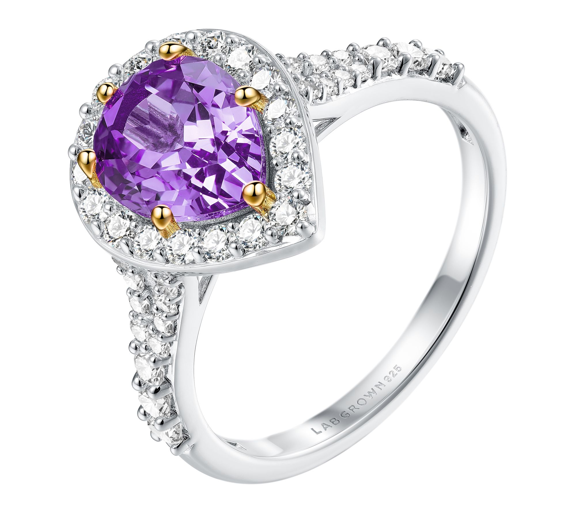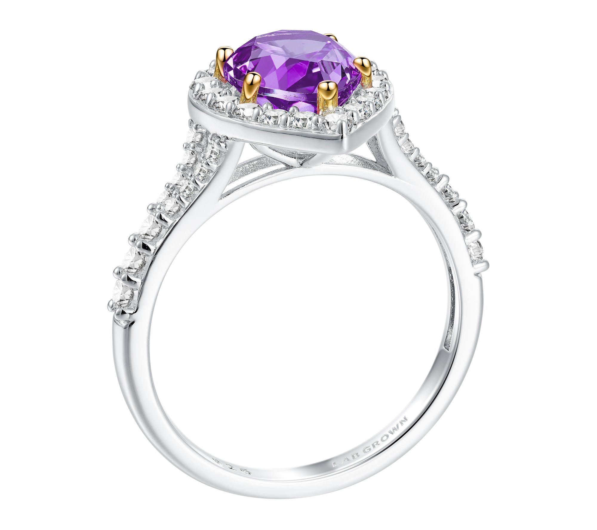 Infused with sparking color and elegance, this sterling silver ring pairs the captivating glow of lab-grown diamonds with the romantic shimmer of violet sapphires. Whether you're dressing up for a special event or adding a pop of brilliance to everyday wear, this extraordinary setting delivers a look that's both memorable and modern. From Fire Light Lab Grown Diamond Jewelry.